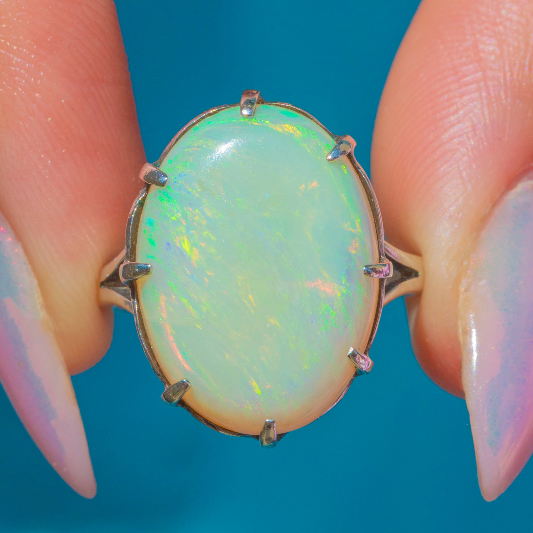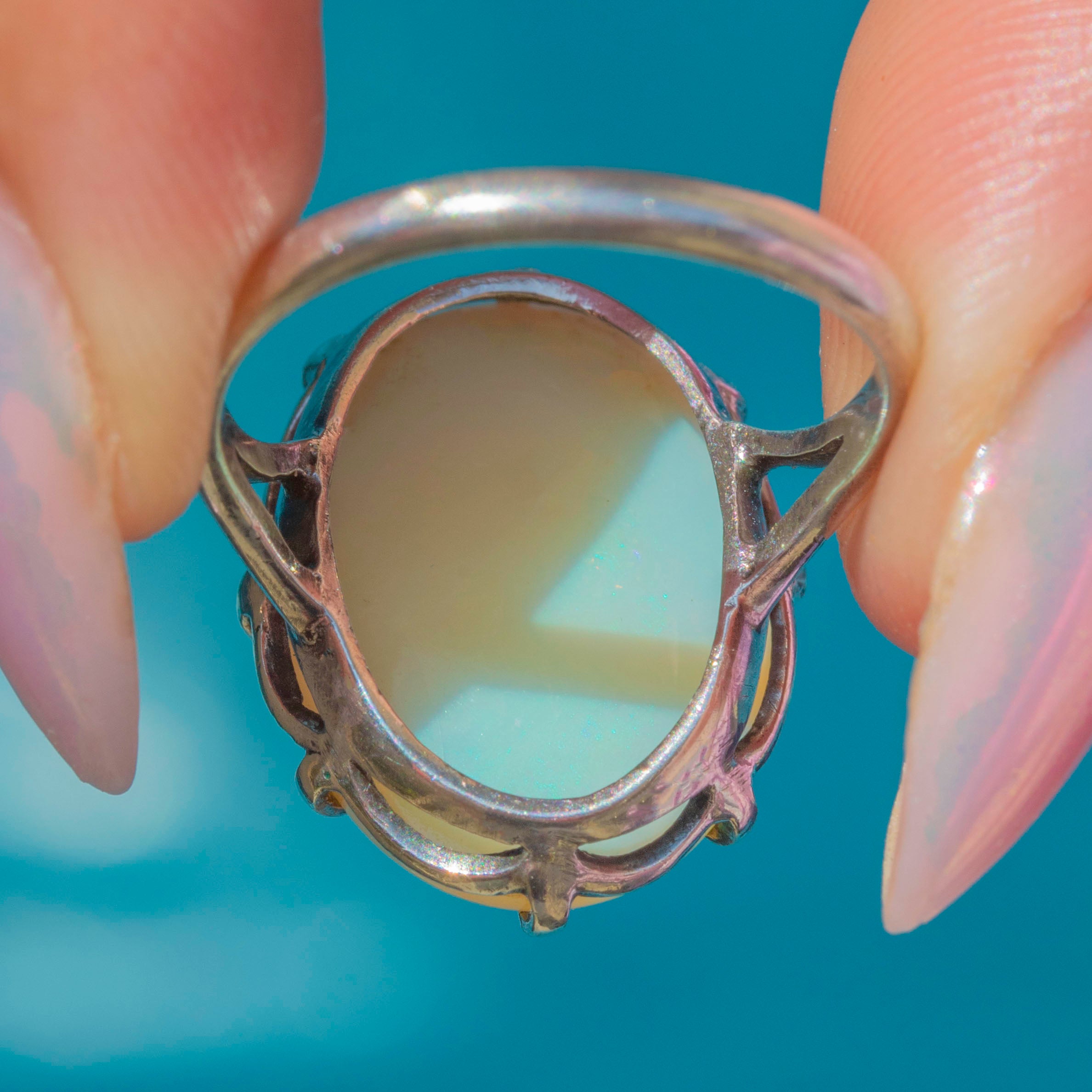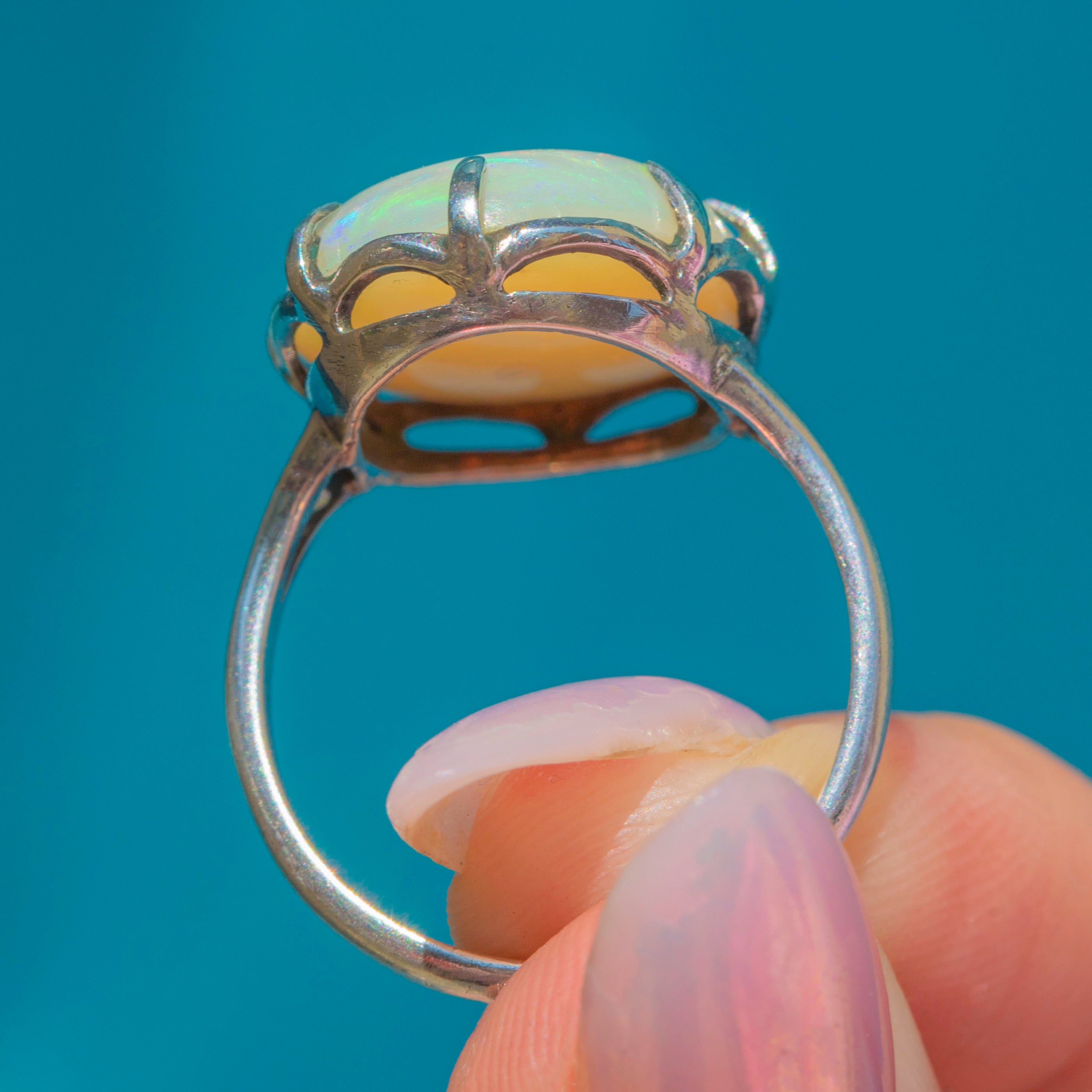 Art Deco Silver Opal Cabochon Dress Ring, 4.60ct Natural Solid Opal
