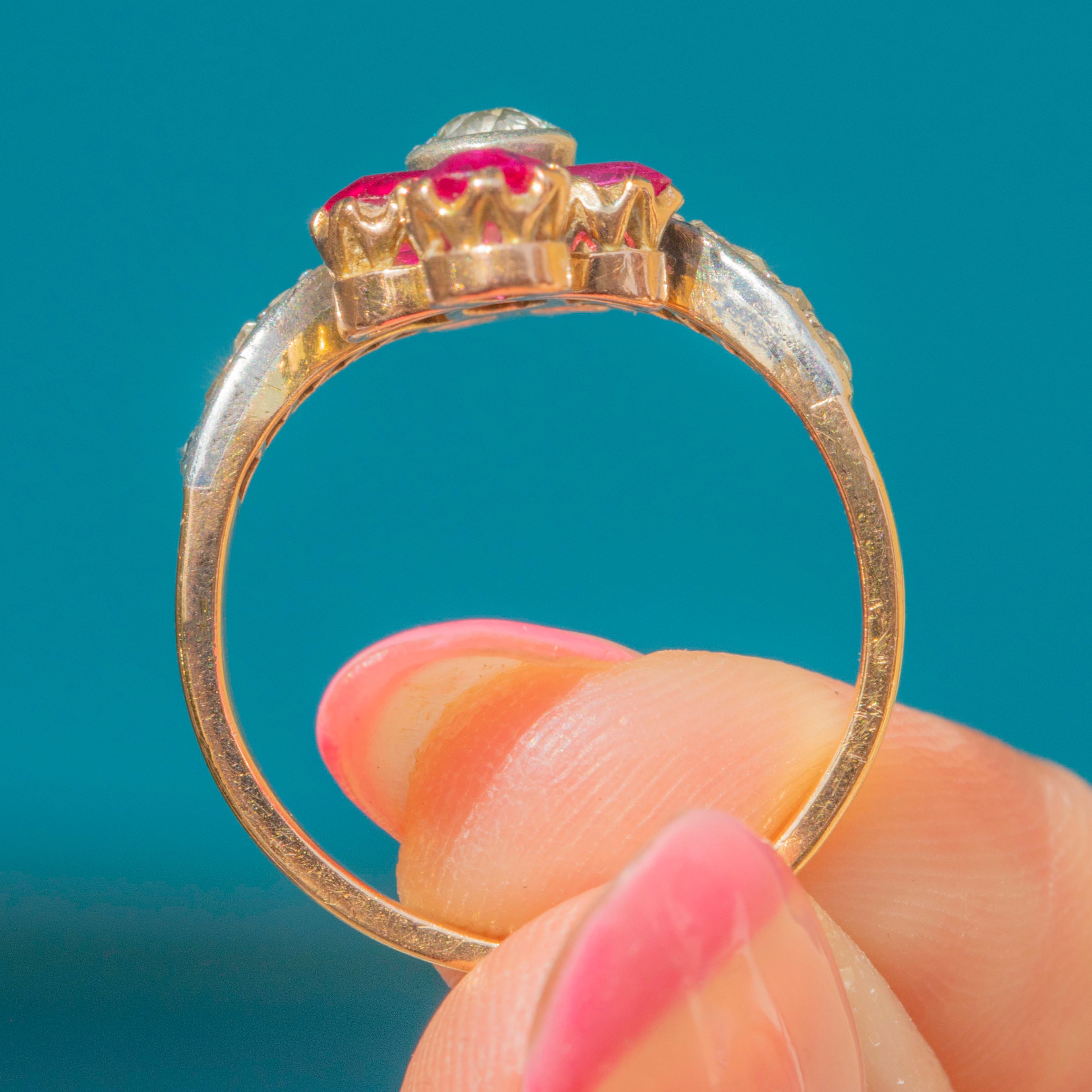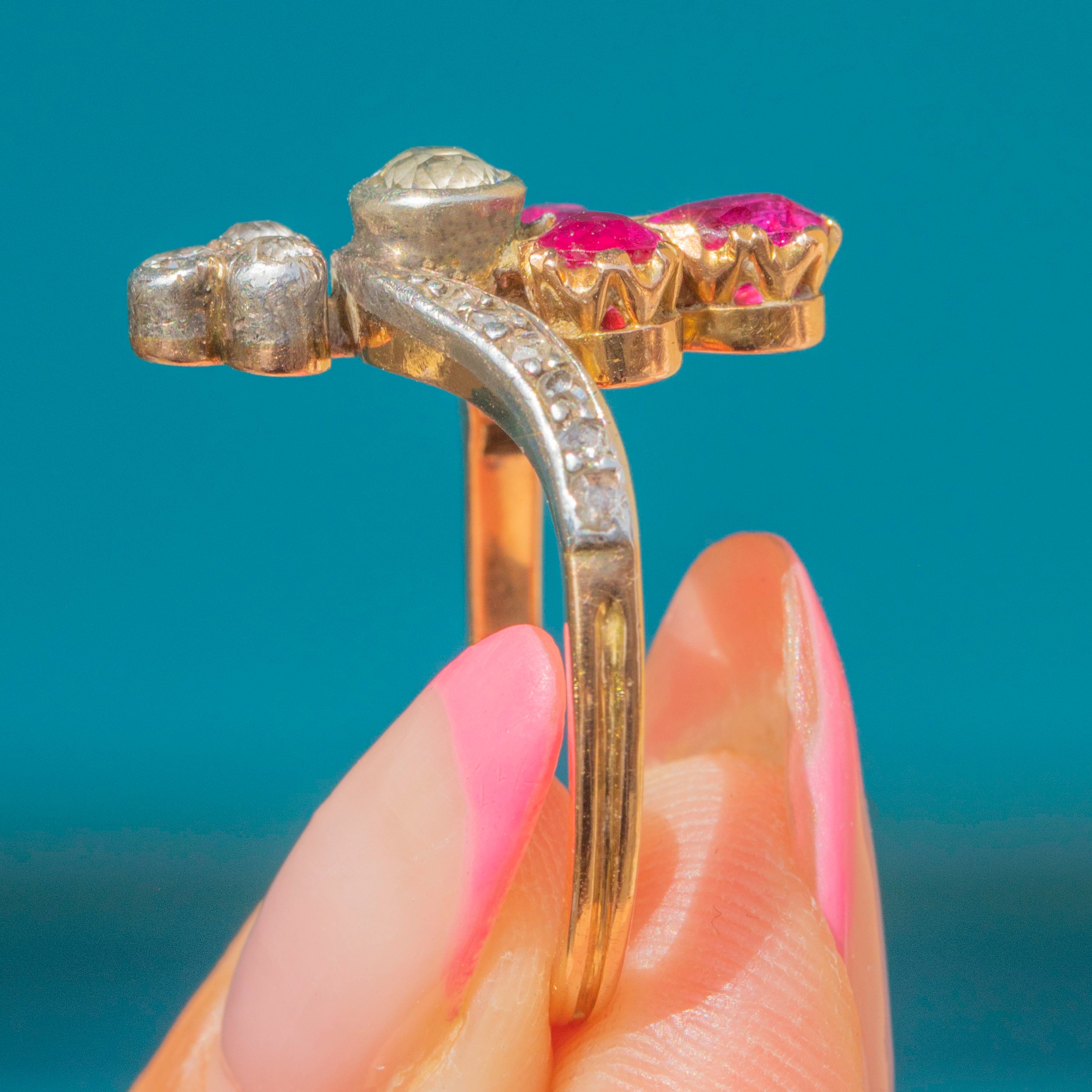 Art Nouveau 18ct Gold Ruby Diamond Tiara Ring, 0.45ct Diamonds