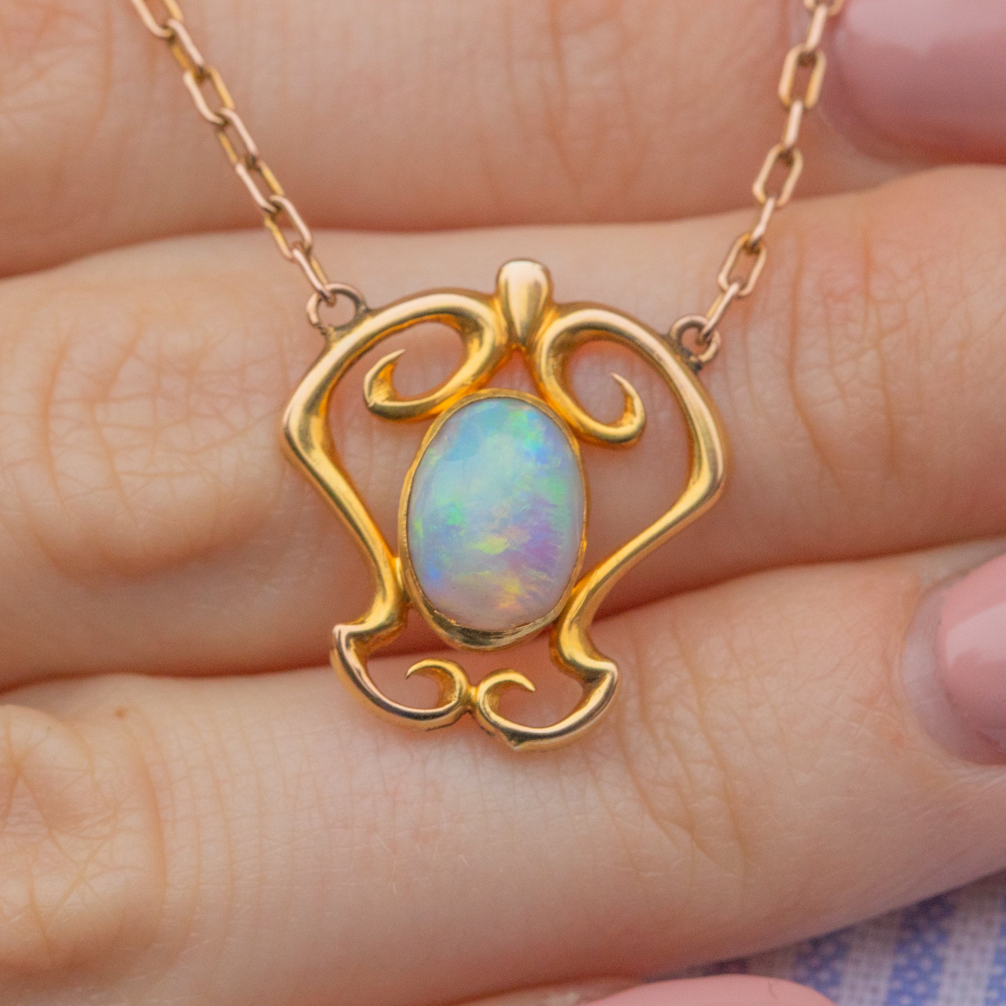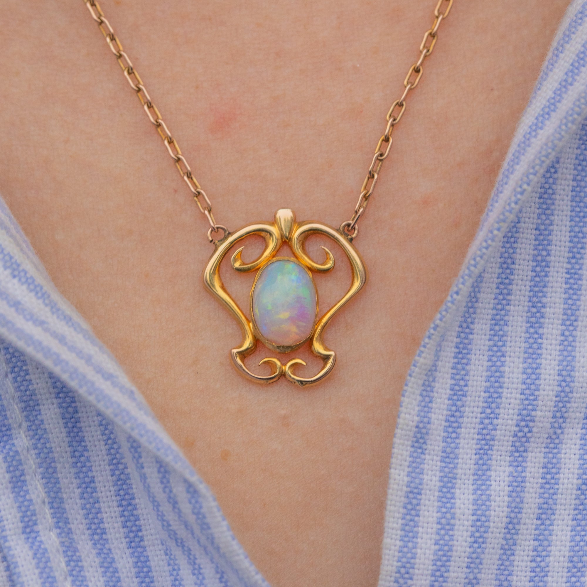 This Art Nouveau 9ct Gold Opal integral necklace is just gorgeous!