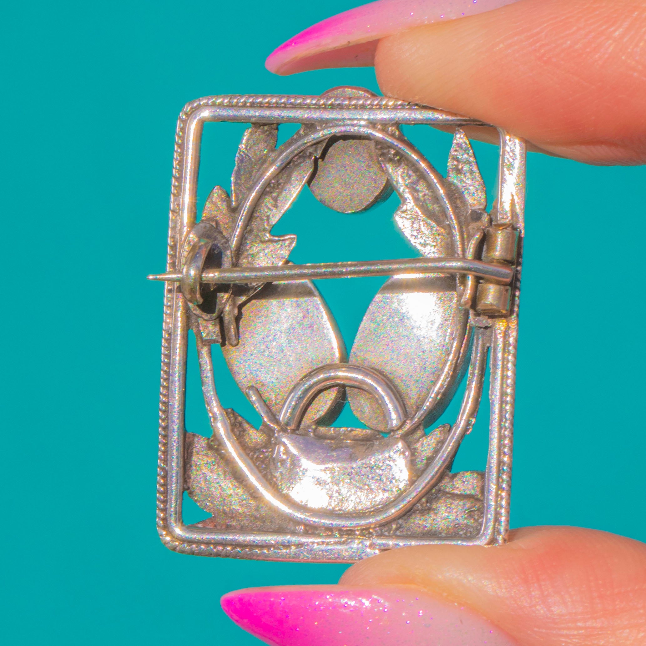 MEASUREMENTS: Brooch is 33mm long x 30mm wide.