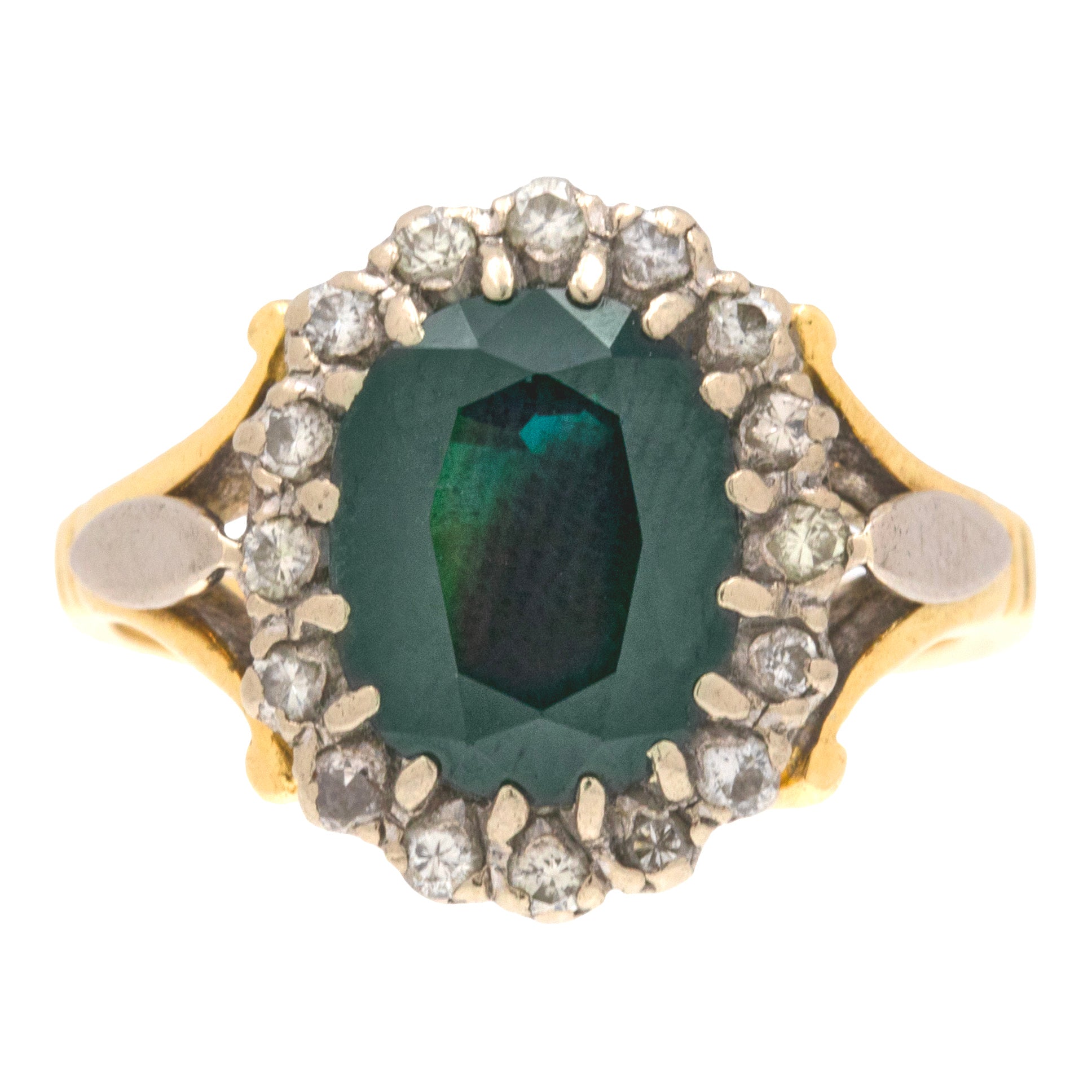 MATERIALS: Tests as 18ct Yellow Gold shank, 18ct White Gold settings, Natural Sapphire (2.70ct), Diamonds (0.24ct)