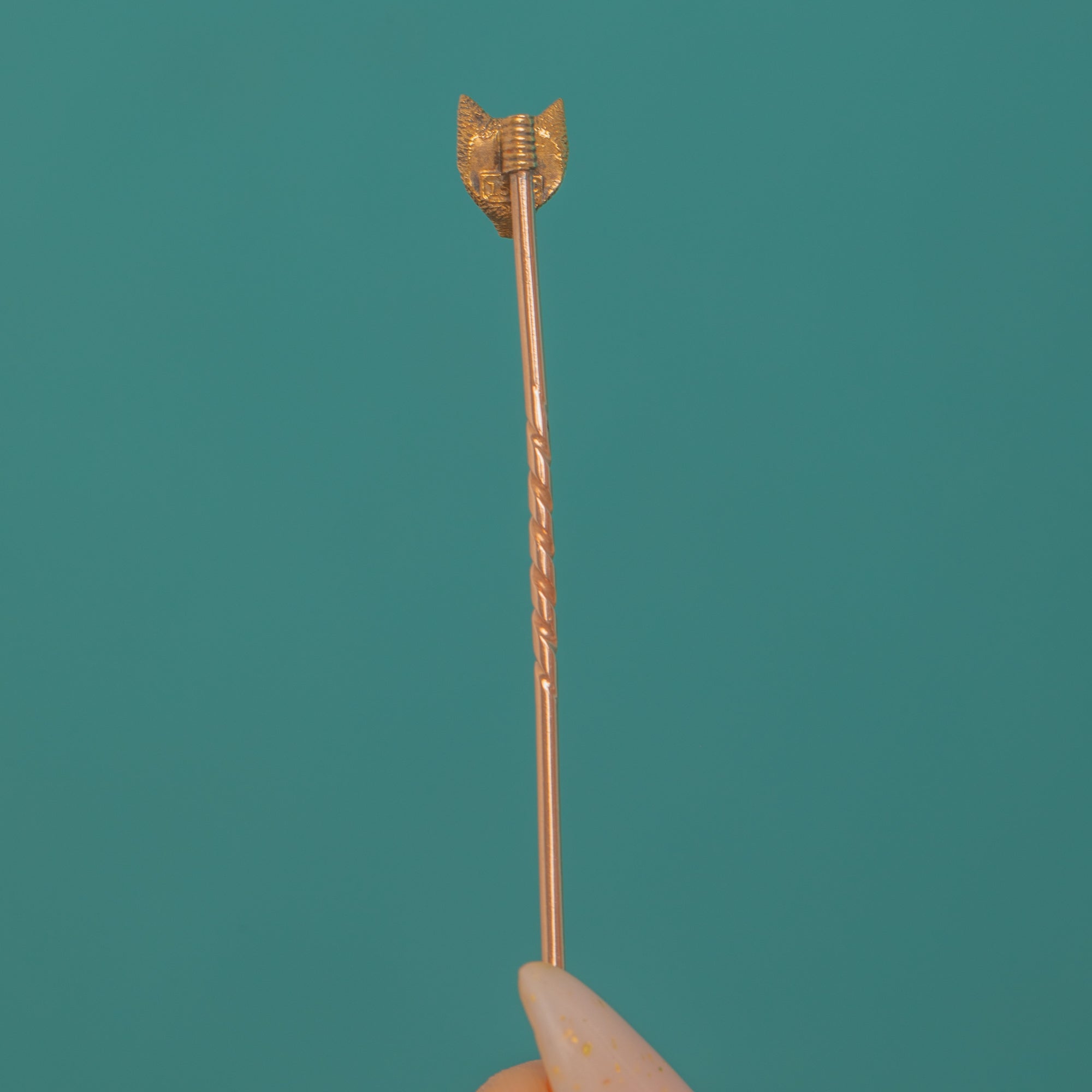 The fox head sits atop a slender 9ct Gold pin, complete with a neat collar and a short twist detail for a refined finish. Elegant, whimsical, and eminently wearable, it’s a beautiful accent for a lapel, tie, or hat—an exquisite keepsake from c.1900.