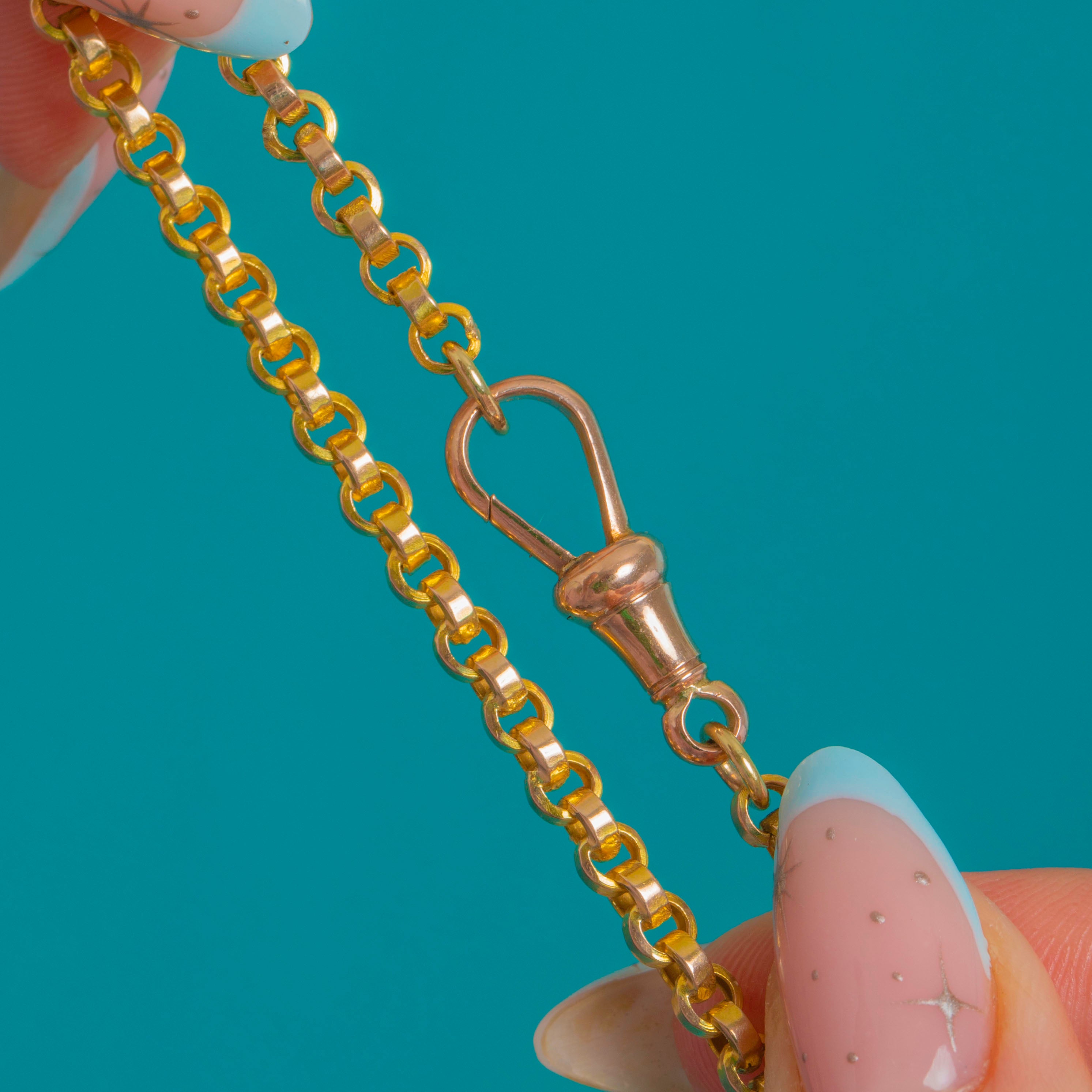 A classic Victorian 9ct Gold belcher chain, this 18" necklace is composed of uniform round links with a bright, glossy finish and that timeless watch‑chain allure. Its neat 3mm profile gives a compact, slightly chunky look that sits beautifully at the base of the neck.