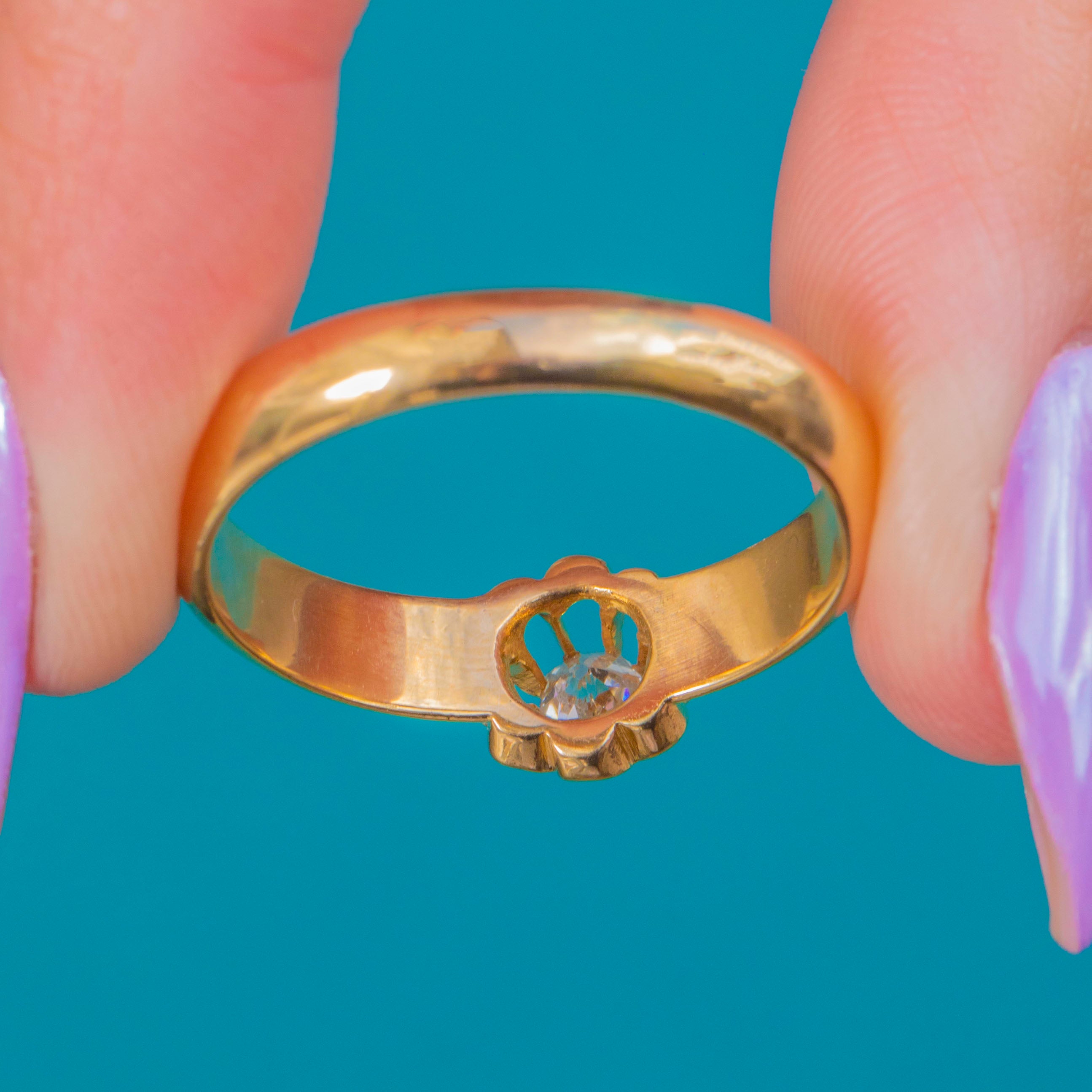 Fully hallmarked in Birmingham for 1912, the ring’s rounded 4mm band brings a satisfying presence on the hand, balanced by the low-profile setting that’s wonderfully wearable day to night. With 6.2g of Gold and a classic, tactile finish, it’s a beautiful heirloom piece that whispers of the Belle Époque while feeling perfectly at home today.