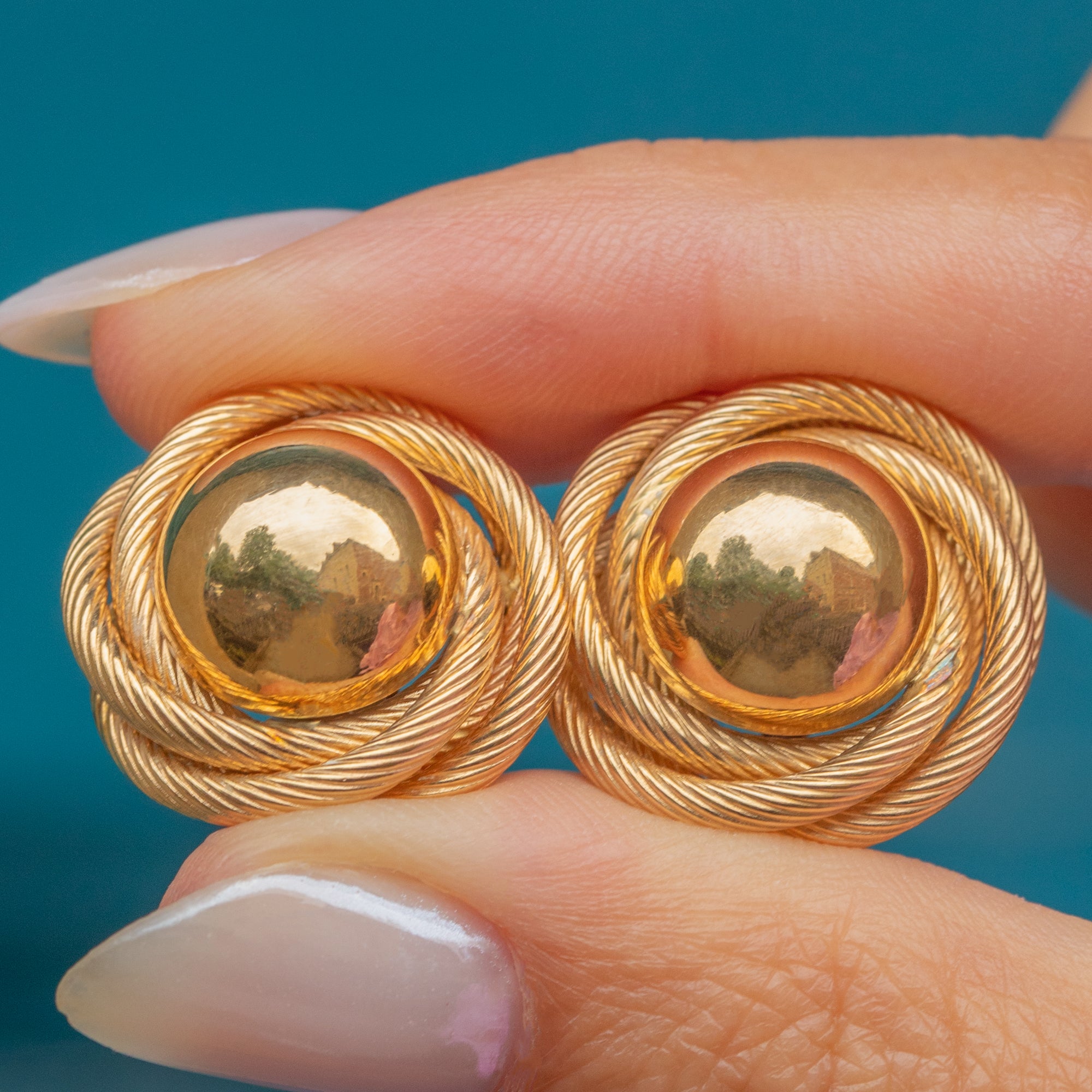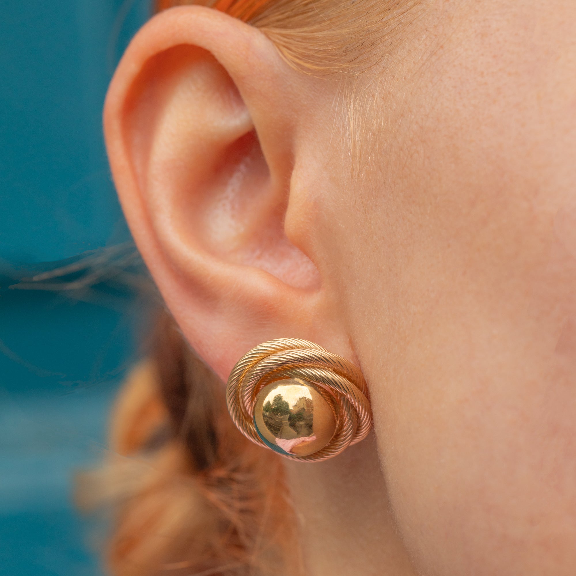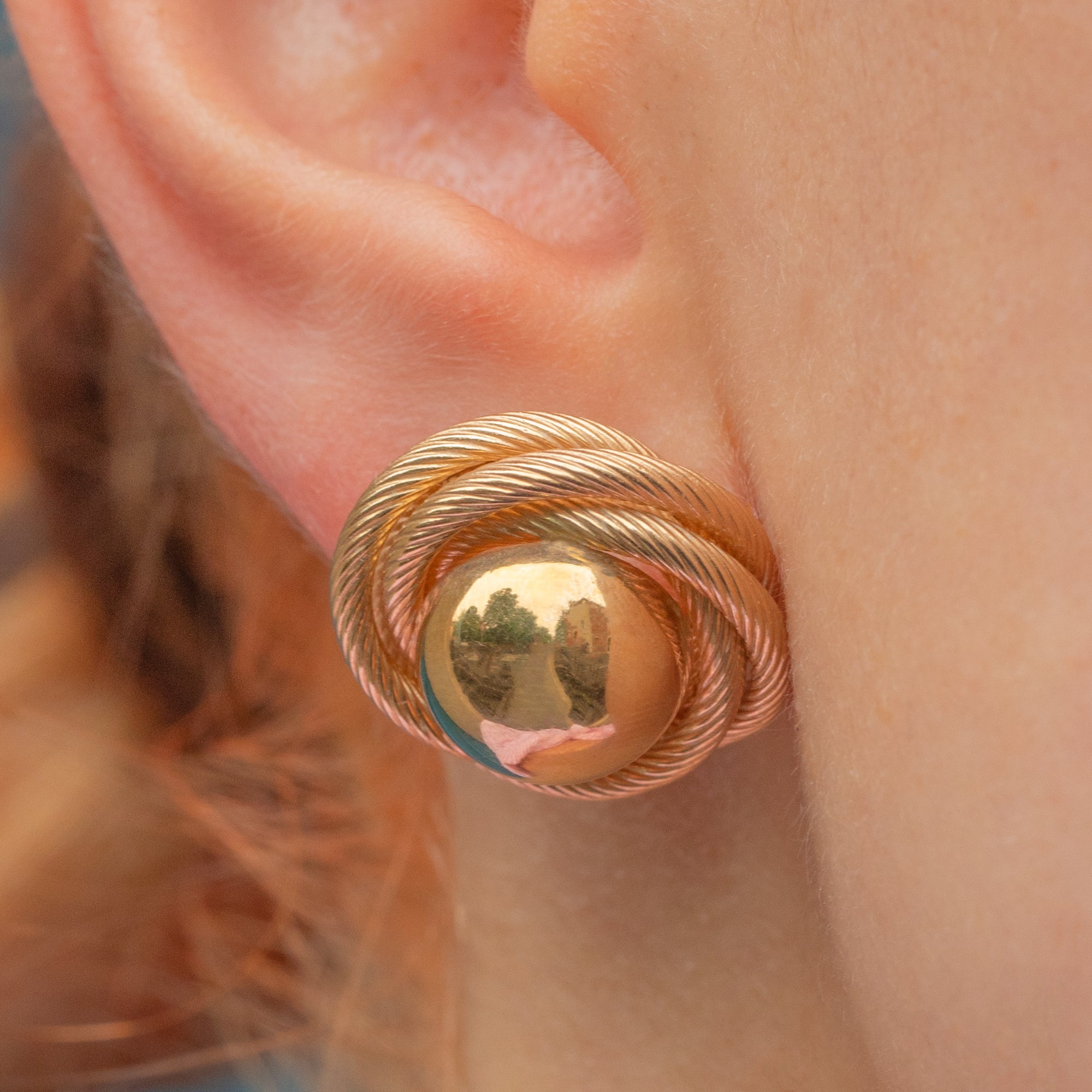 At the heart of each knot sits a gleaming, reflective Gold orb, adding an elegant finishing touch. Their chunky size gives them a striking, sculptural presence on the ear, so much so you won't want to take them off!