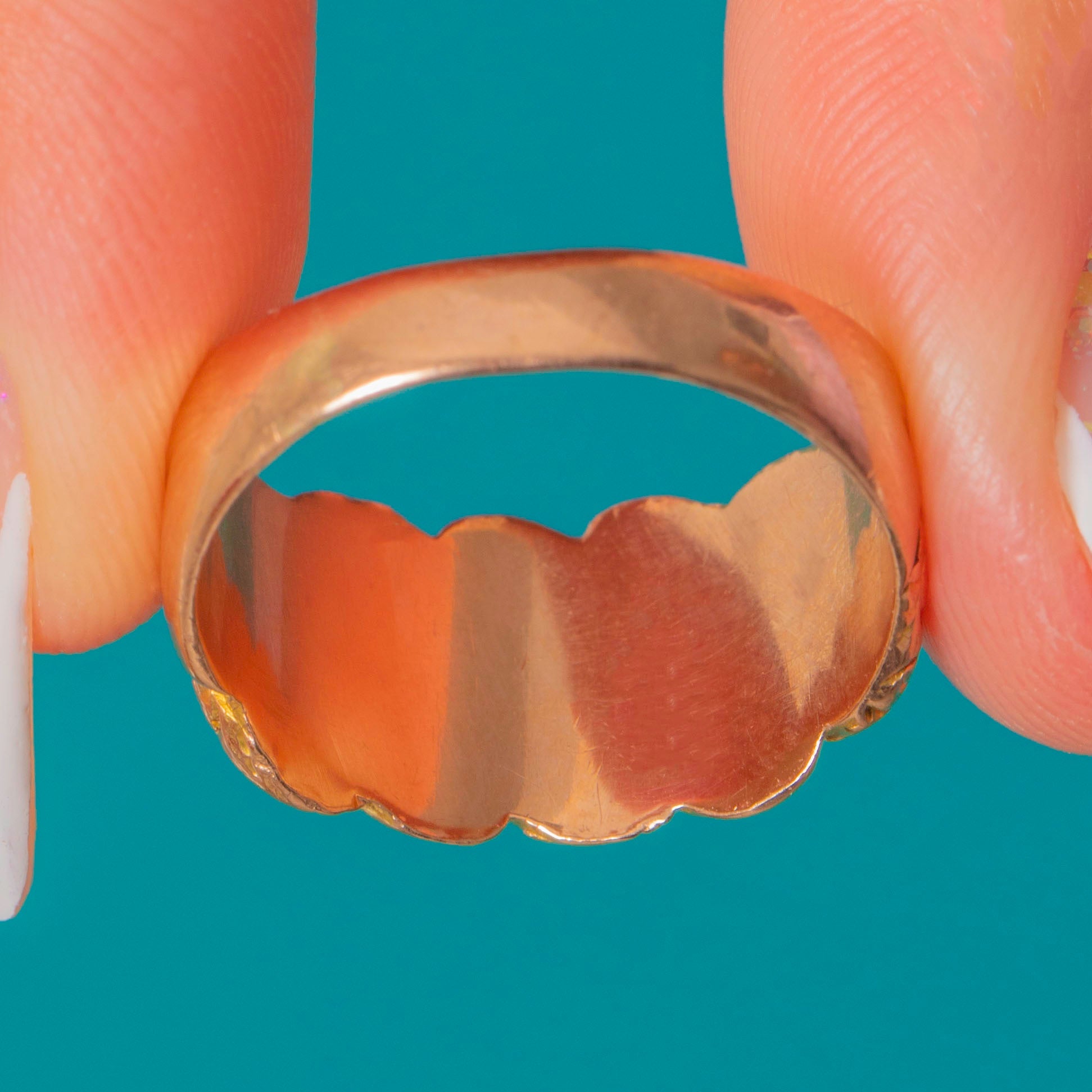 Providing exceptional finger coverage, it will comfortably hug your finger and is a brilliant option for stacking alongside your other golden goodies. Complete with a full set of English hallmarks dating to 1908, this Edwardian ring will make a coveted addition to your collection!