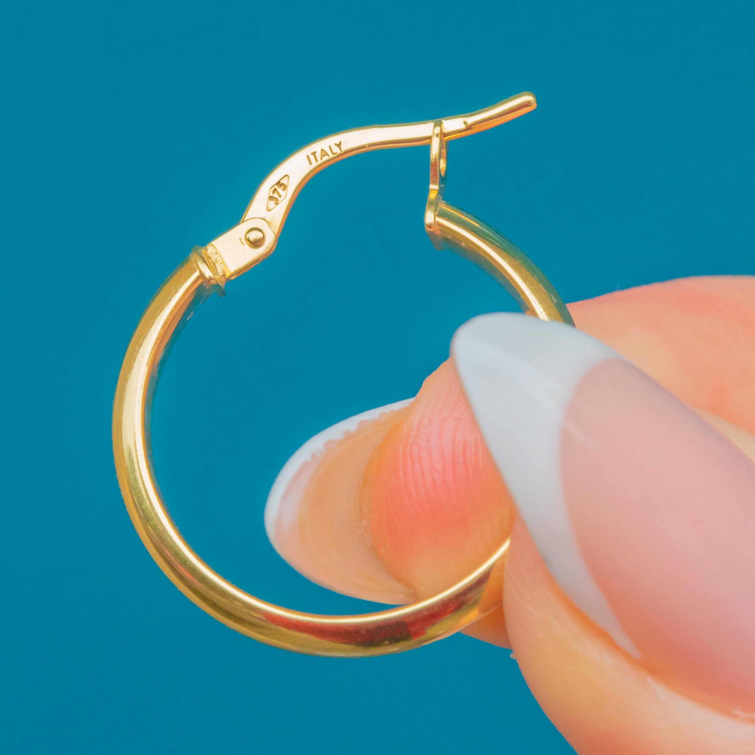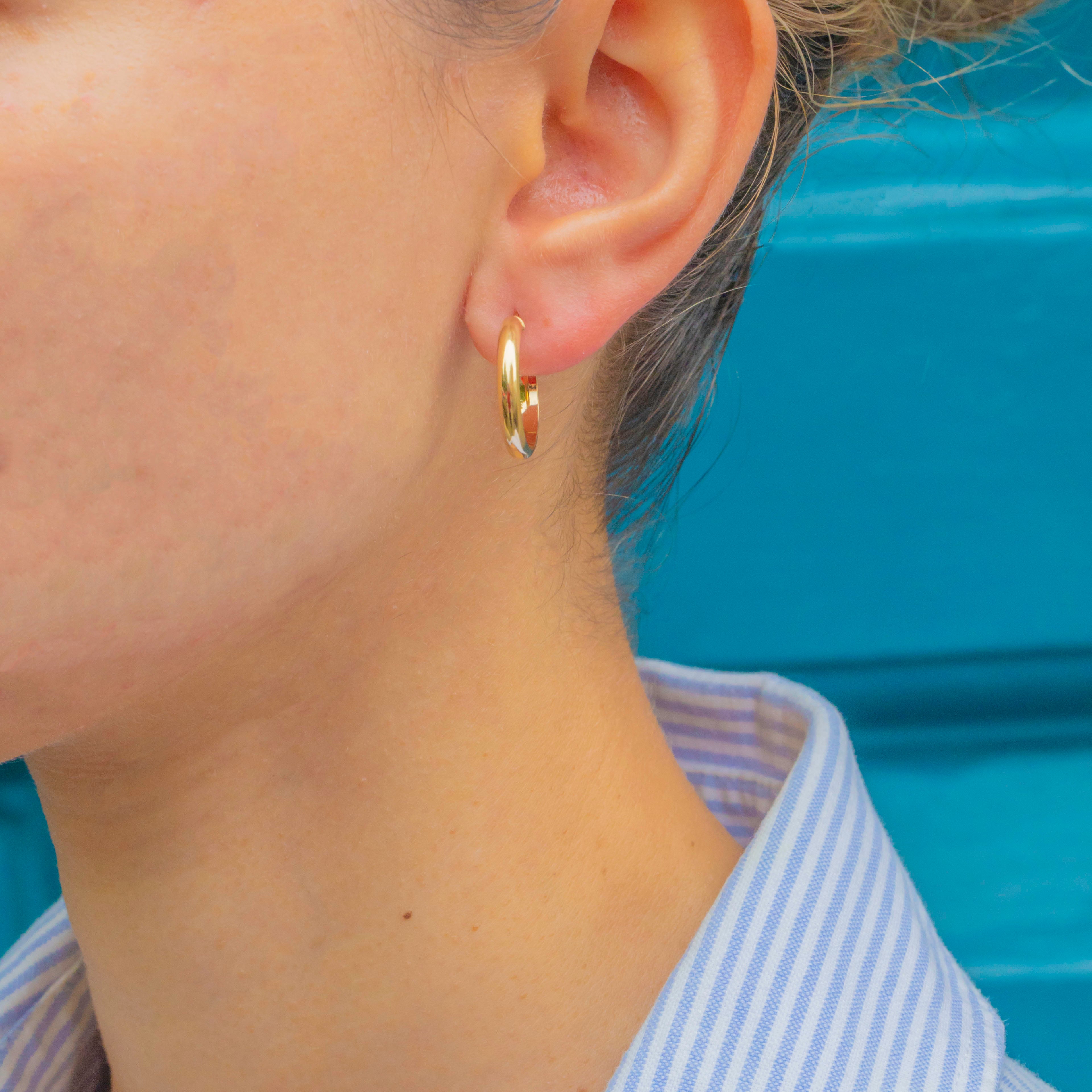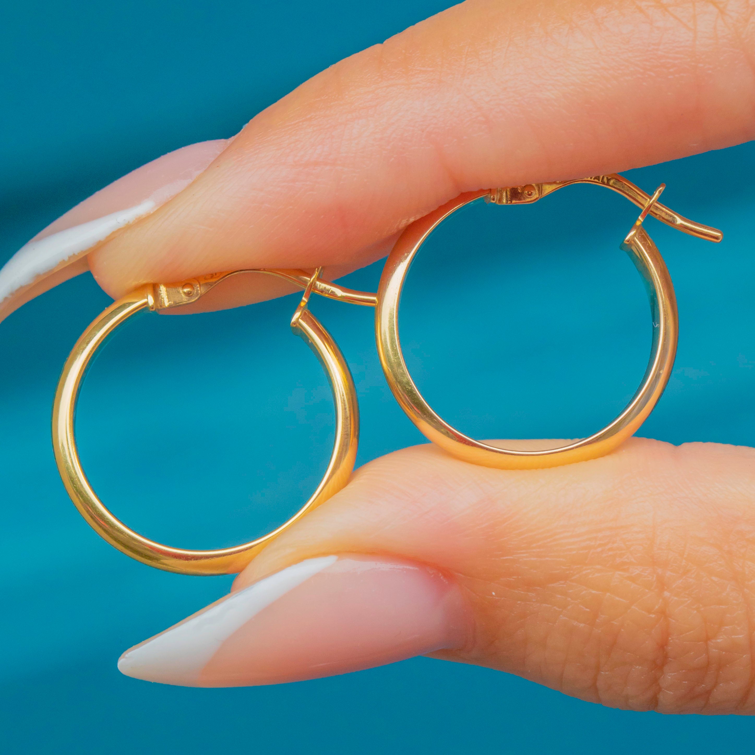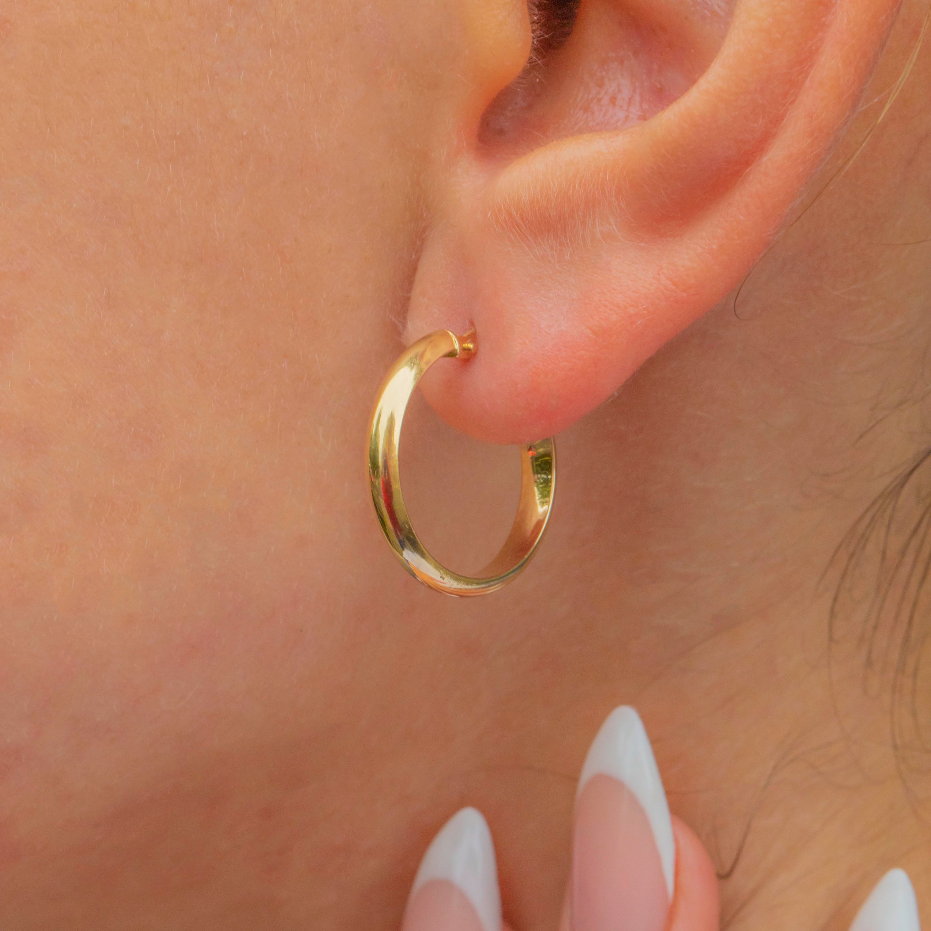 Lightweight and comfortable at just 1.0g for the pair, these earrings measure 19mm in diameter and 3mm wide — the perfect size for a classic hoop.