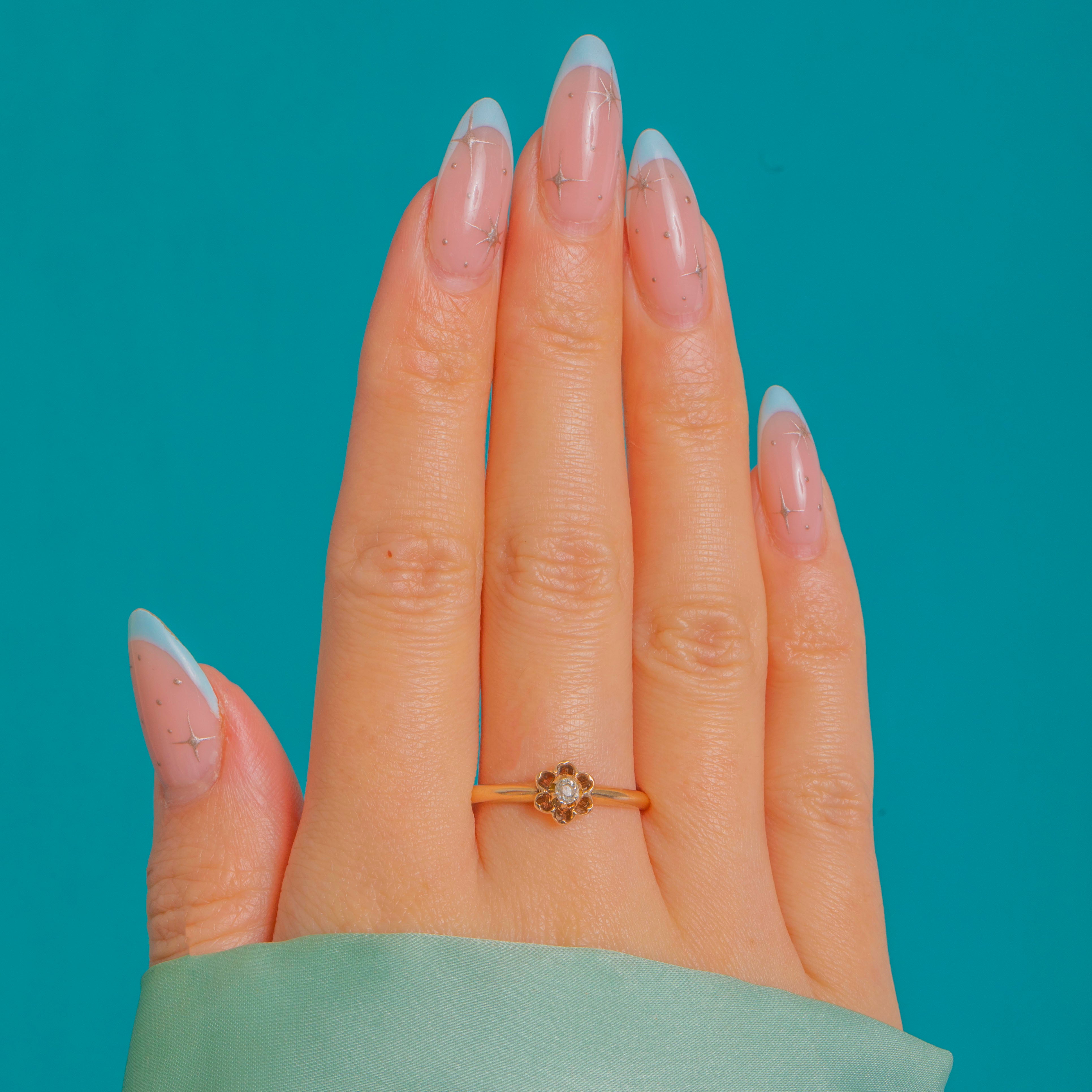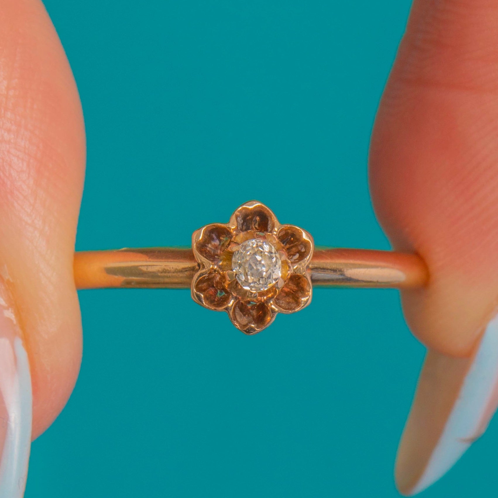 Dainty 14ct Gold Old Mine Cut Diamond Flower Ring