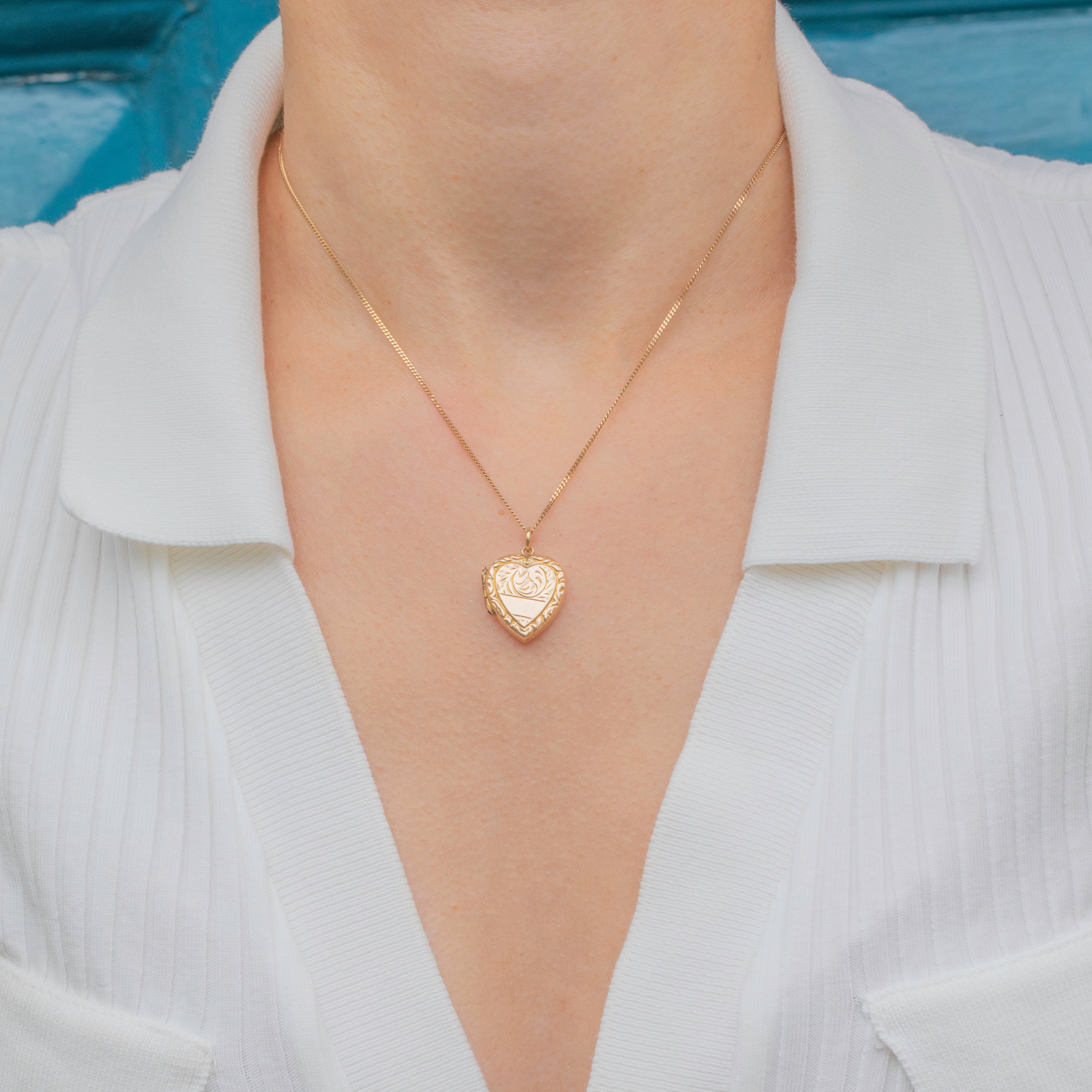 Dainty 9ct Gold Engraved Heart Locket, Repousse Border