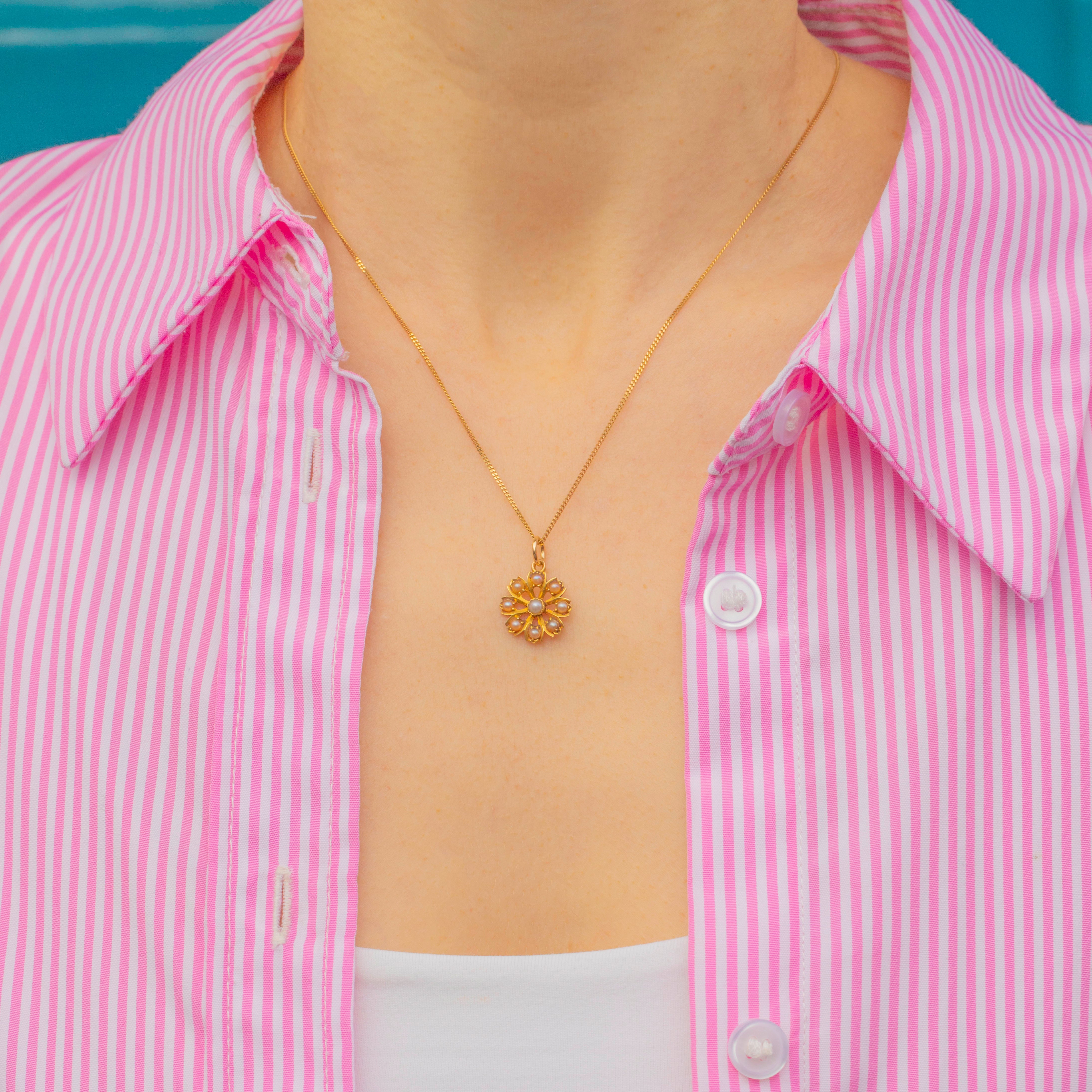 Add a touch of whimsical elegance to your collection with this dainty antique 18ct Gold Pearl flower pendant!