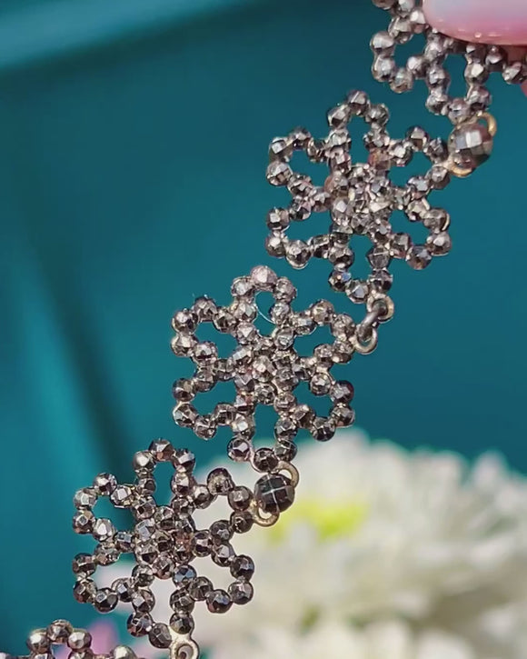 This exquisite early 19th century Georgian Cut Steel flower riviere necklace is a lovely 16" long, and will rest delicately above the collarbone!