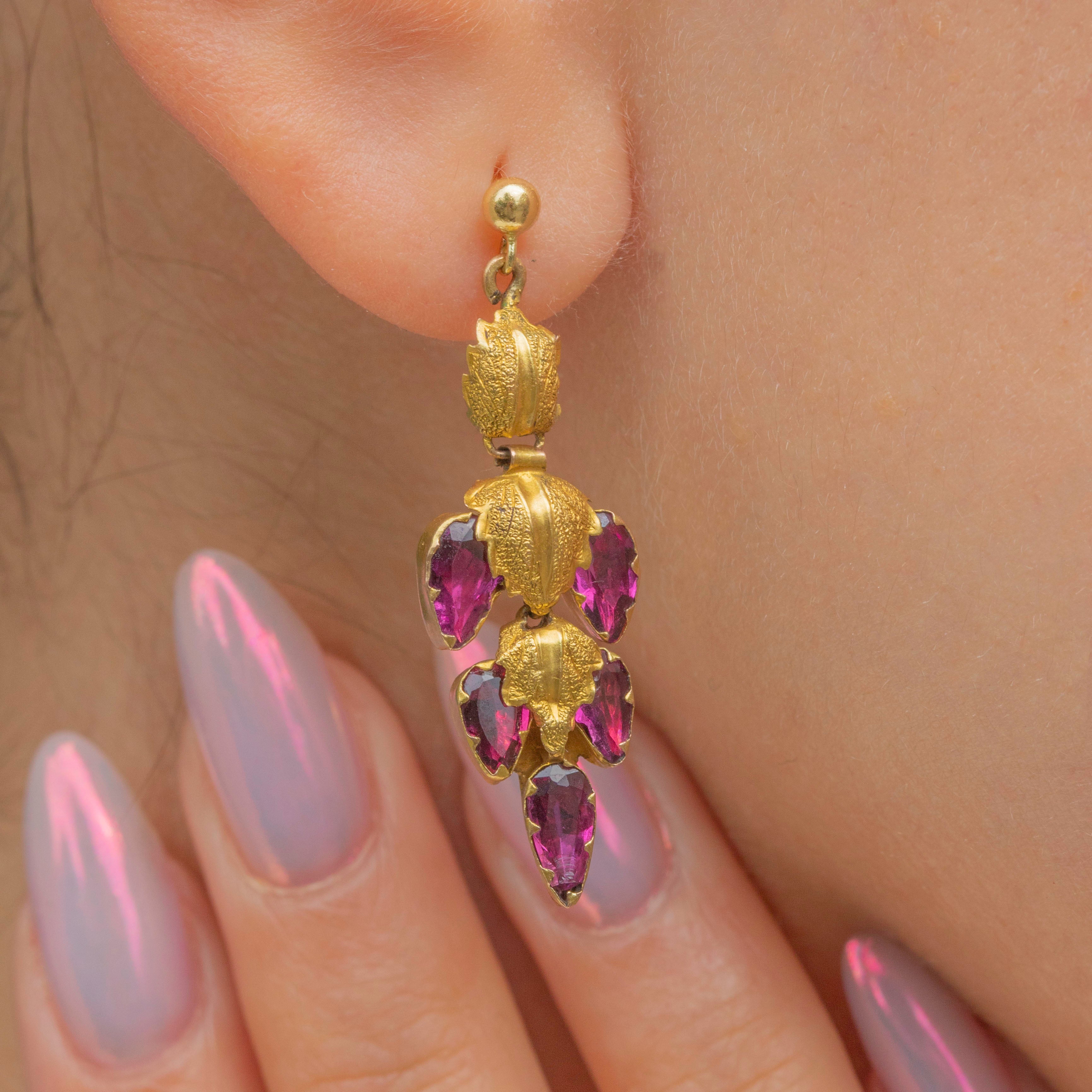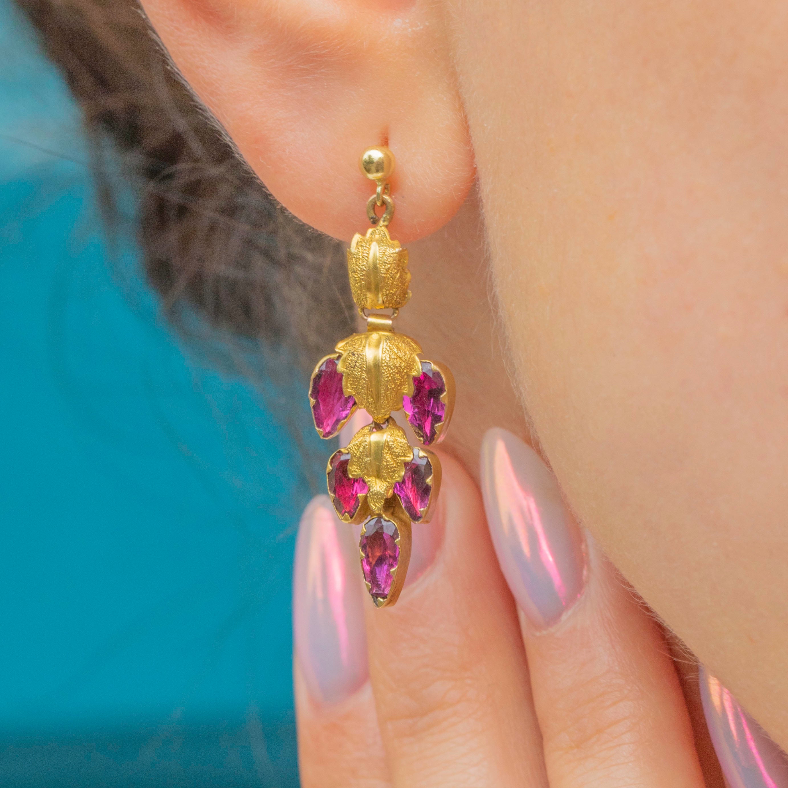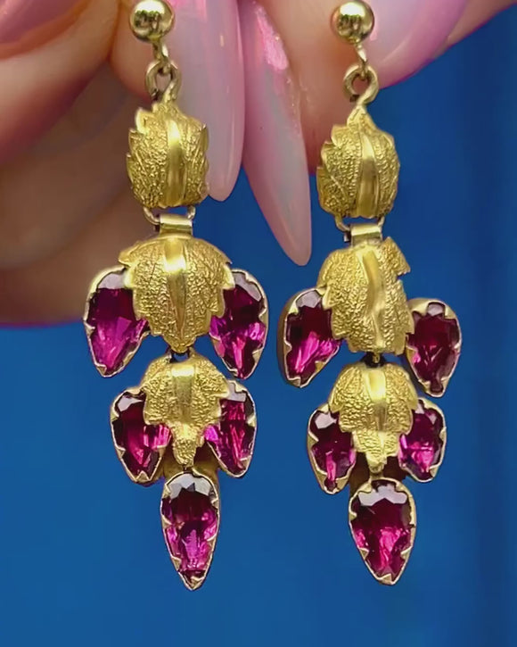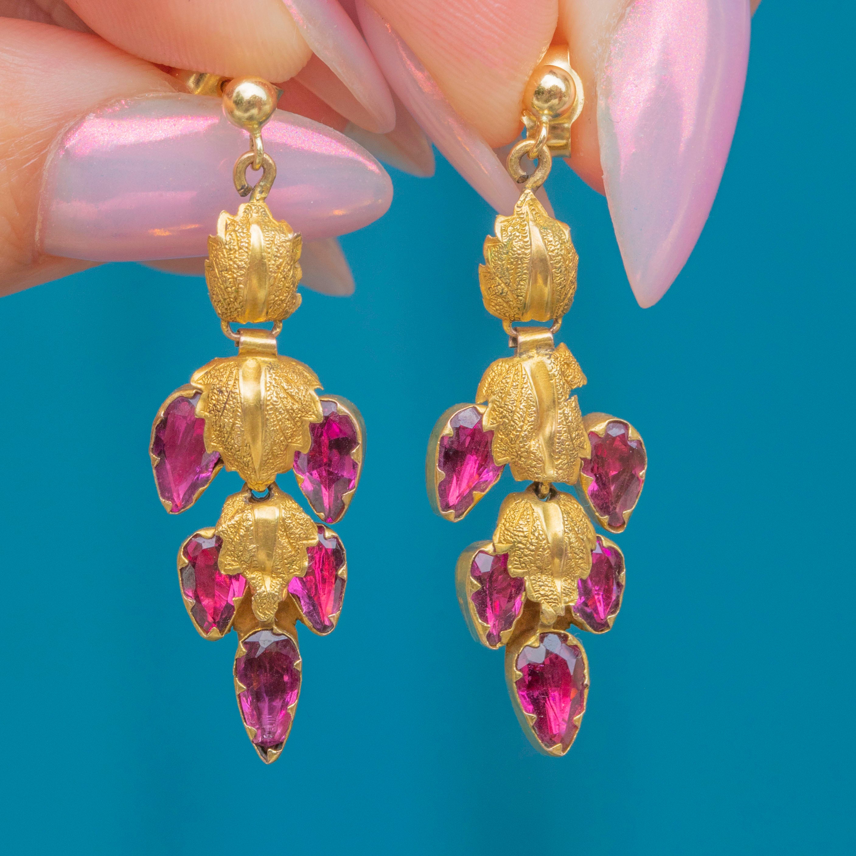 These early Victorian 18ct Gold Garnet bunch of grapes earrings are a dream!