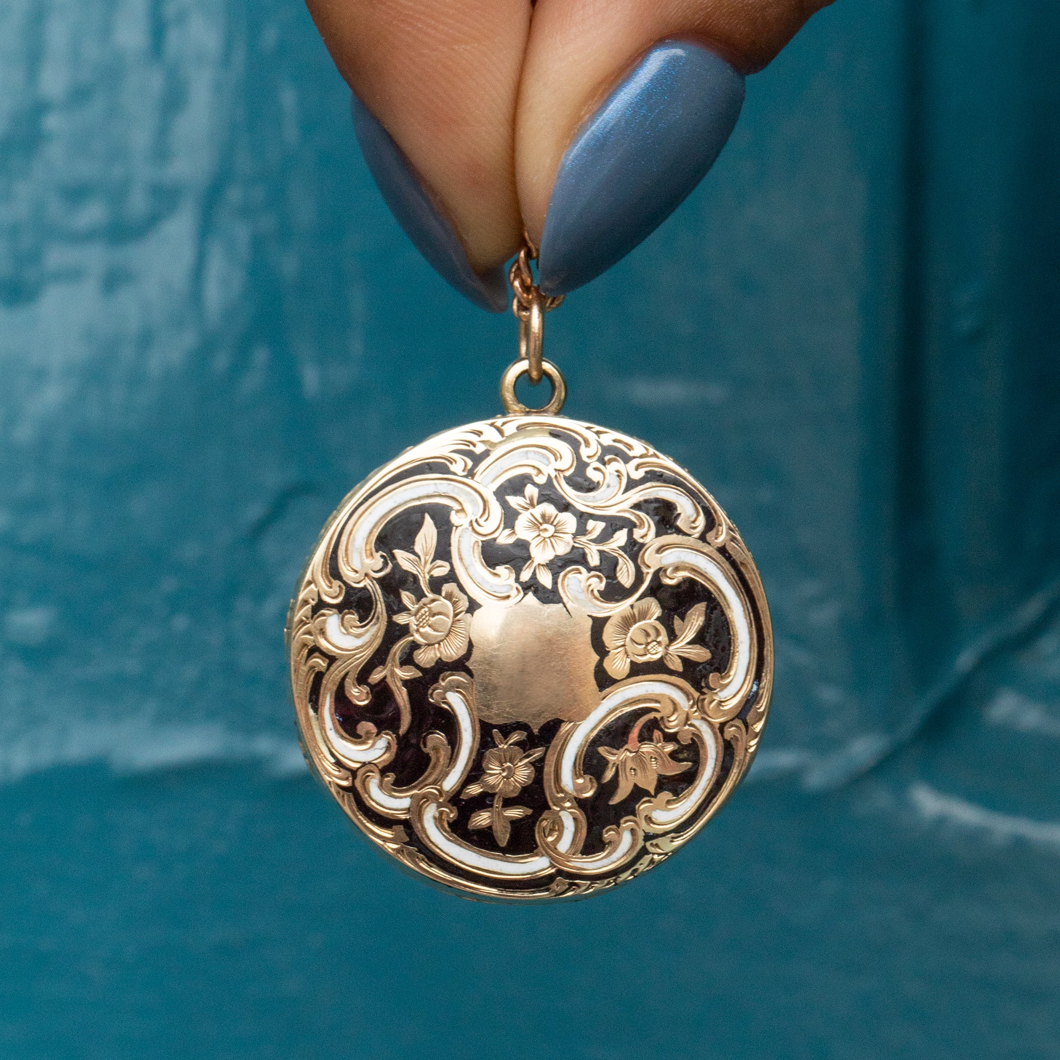 This beautiful early Victorian 9ct Gold black & white Enamel locket will make a superb addition to your collection! This exquisite antique locket is made from 9ct Gold and features floral Enamel work that perfectly captures the exquisite craftsmanship of the Victorian era.