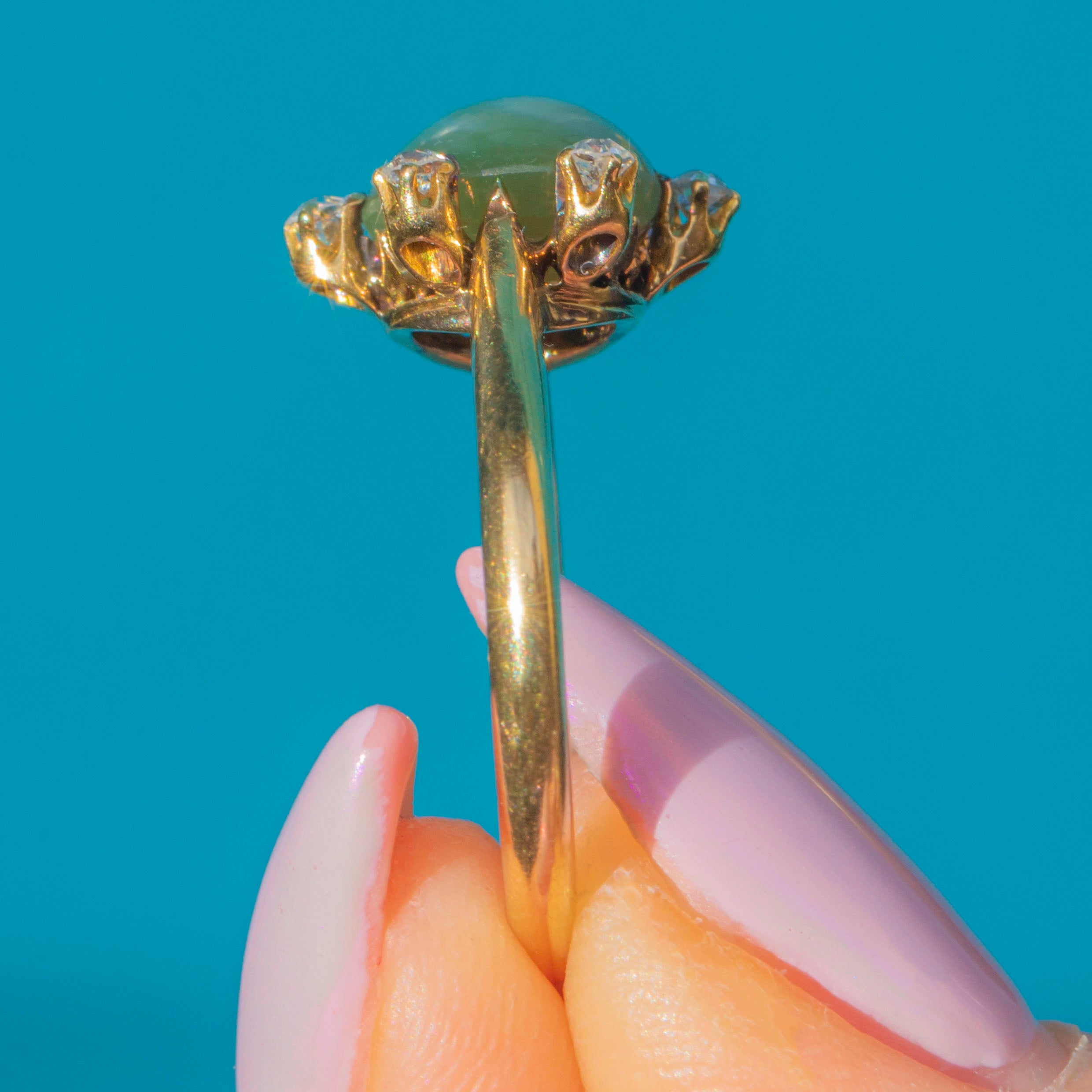 Dating to around 1915, this ring exemplifies the refined craftsmanship of the Edwardian era. Elegant, tactile, and full of natural beauty, it’s a rare and timeless treasure that perfectly blends simplicity with sophistication.