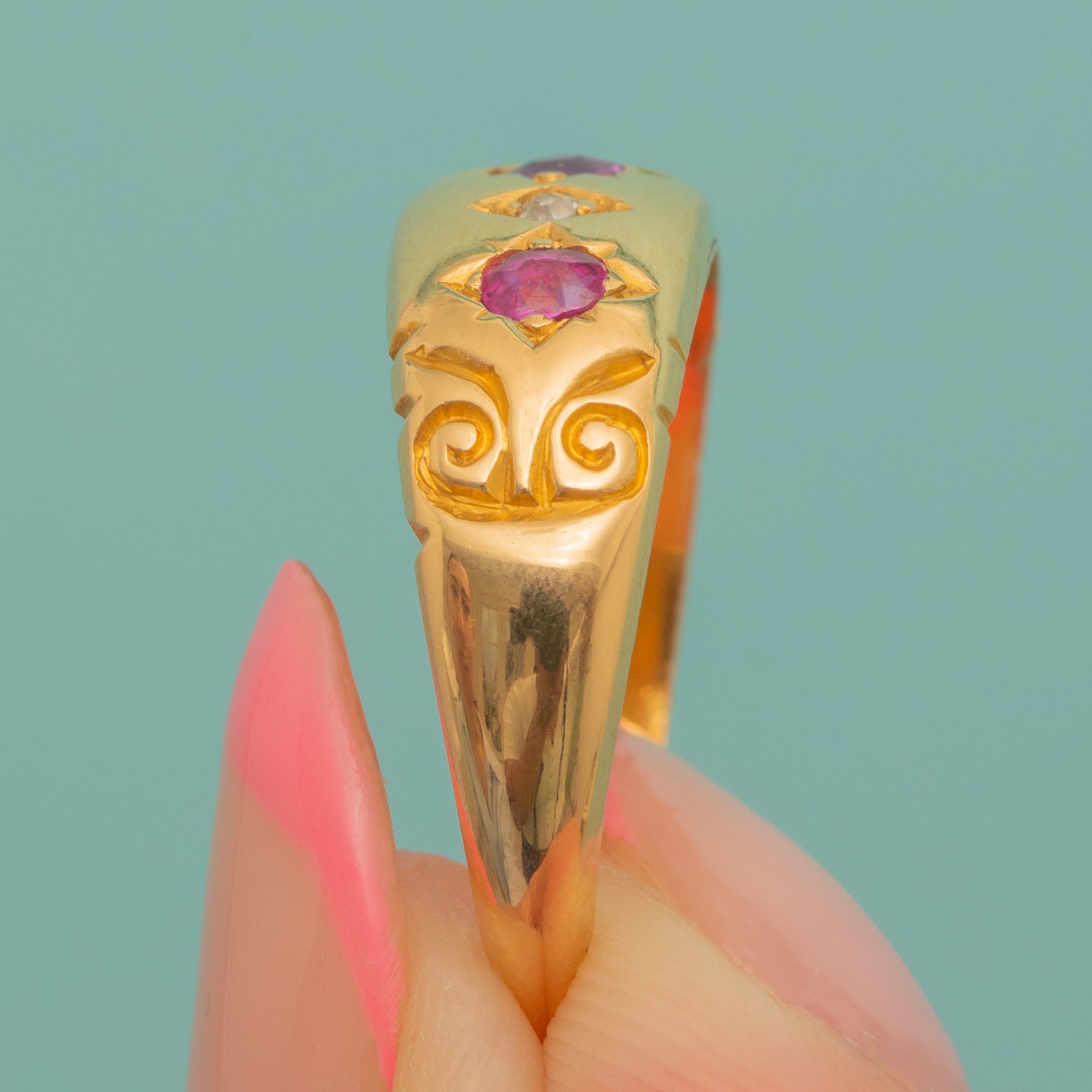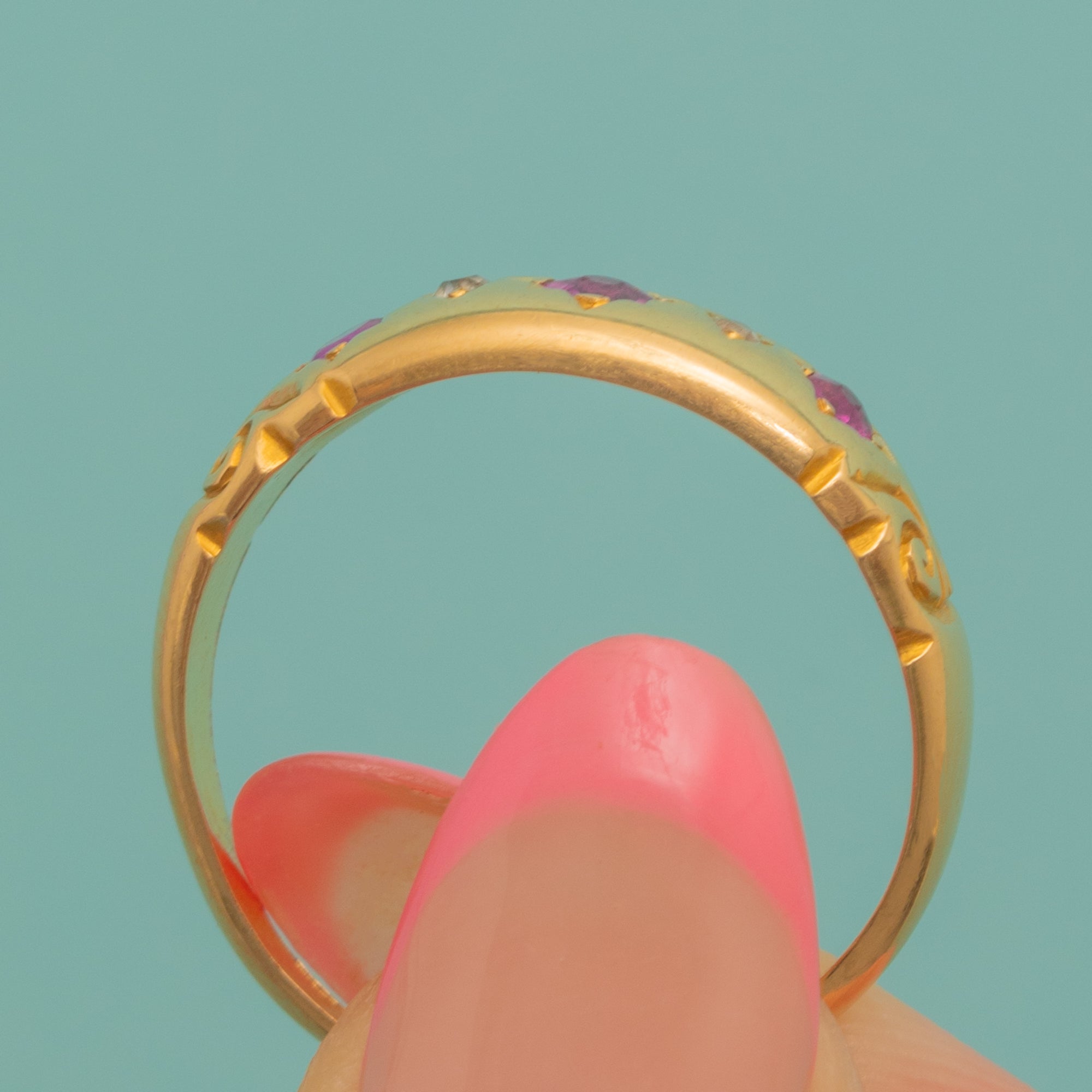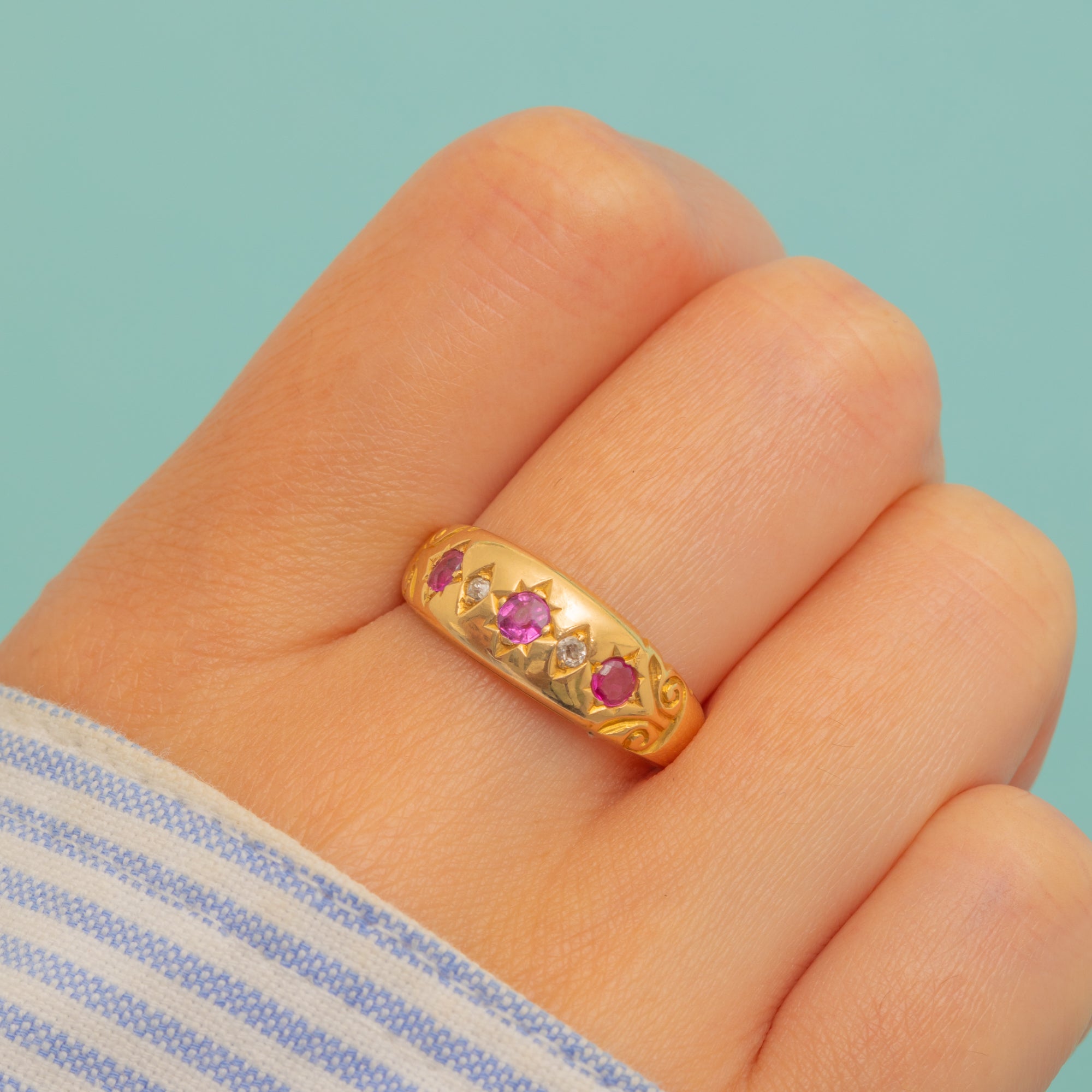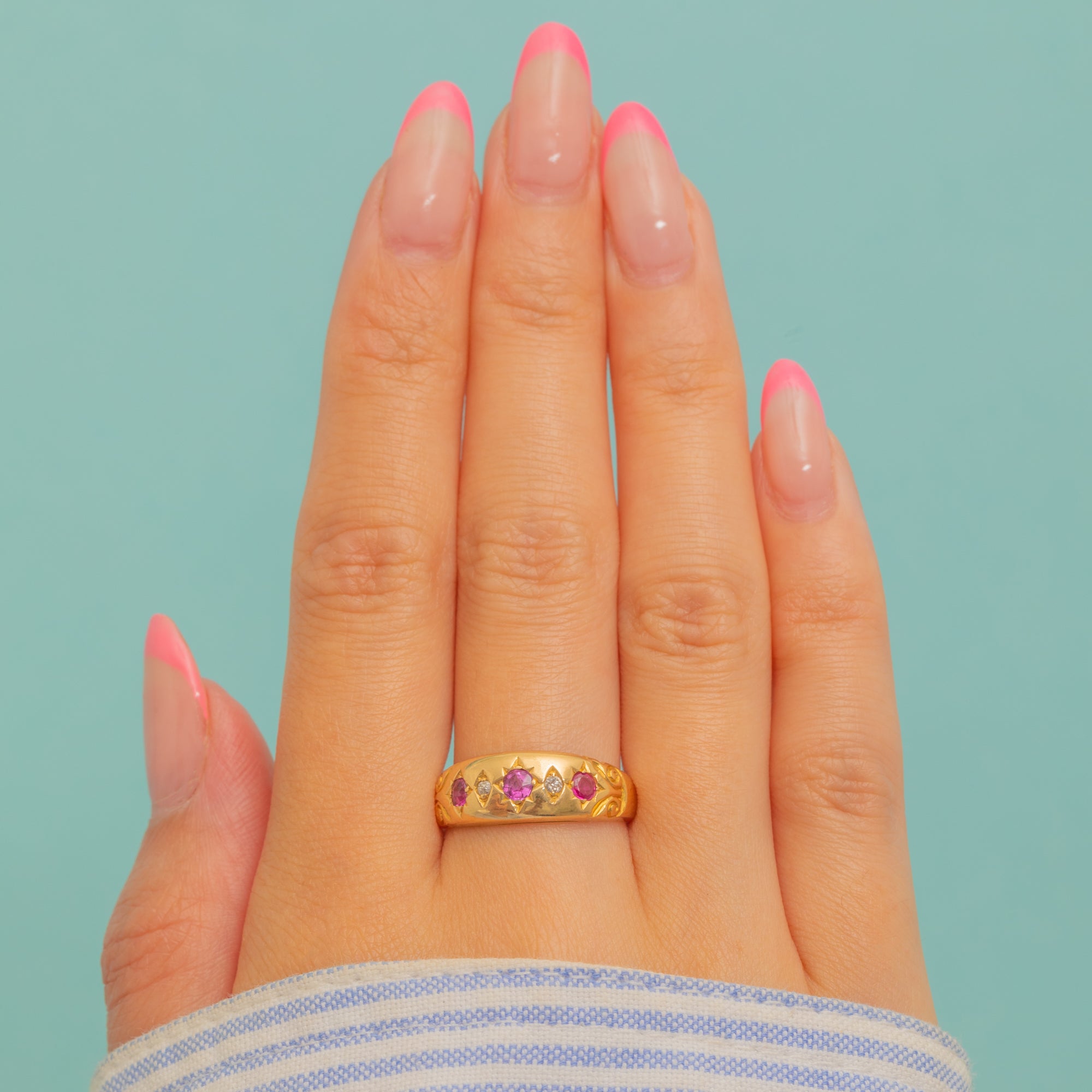 Edwardian 18ct Gold Ruby Diamond Five Stone Gypsy Ring, 1905