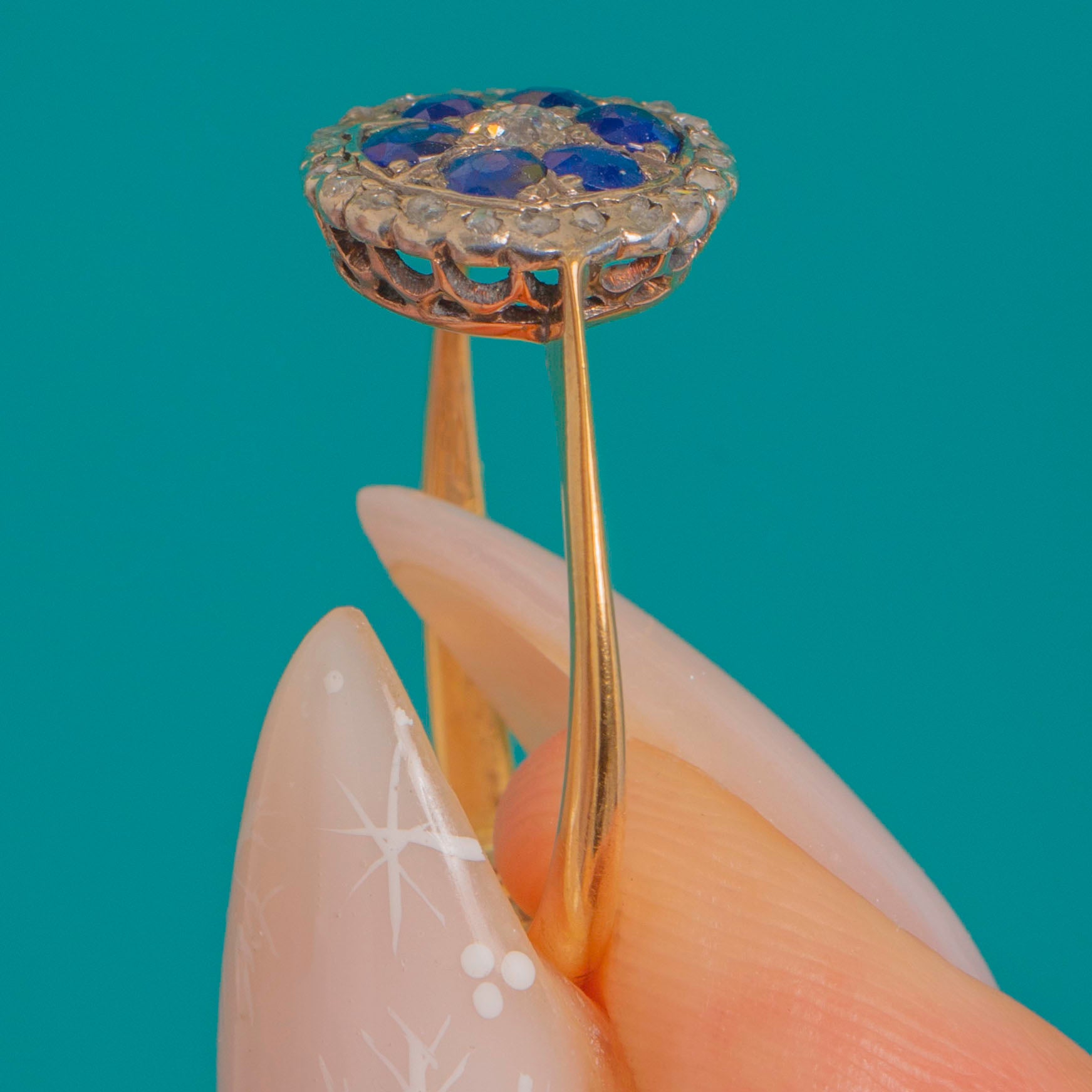 Edwardian 18ct Gold Sapphire Diamond Flower Cluster Ring, c.1900