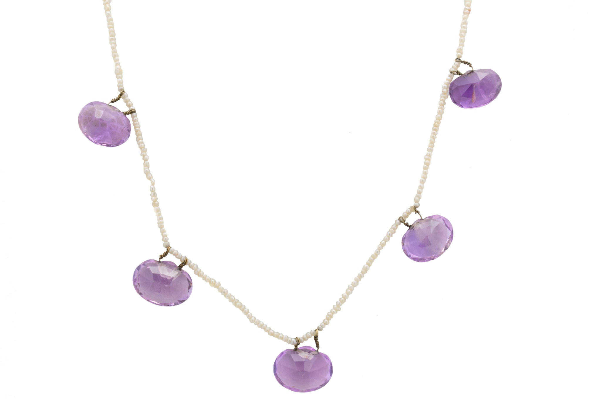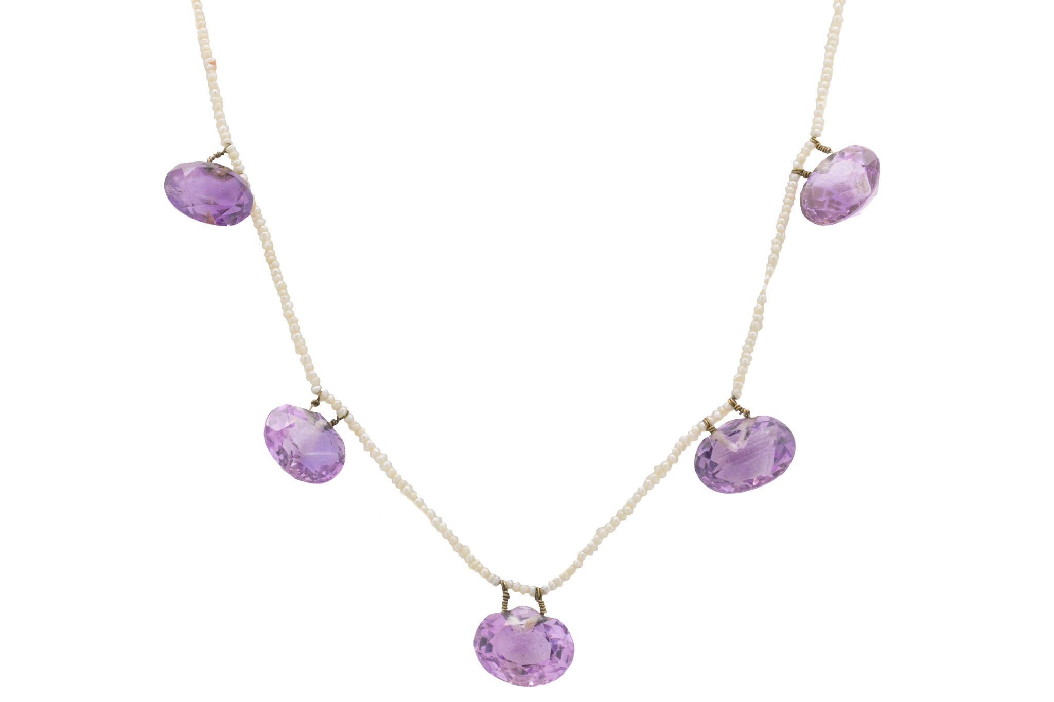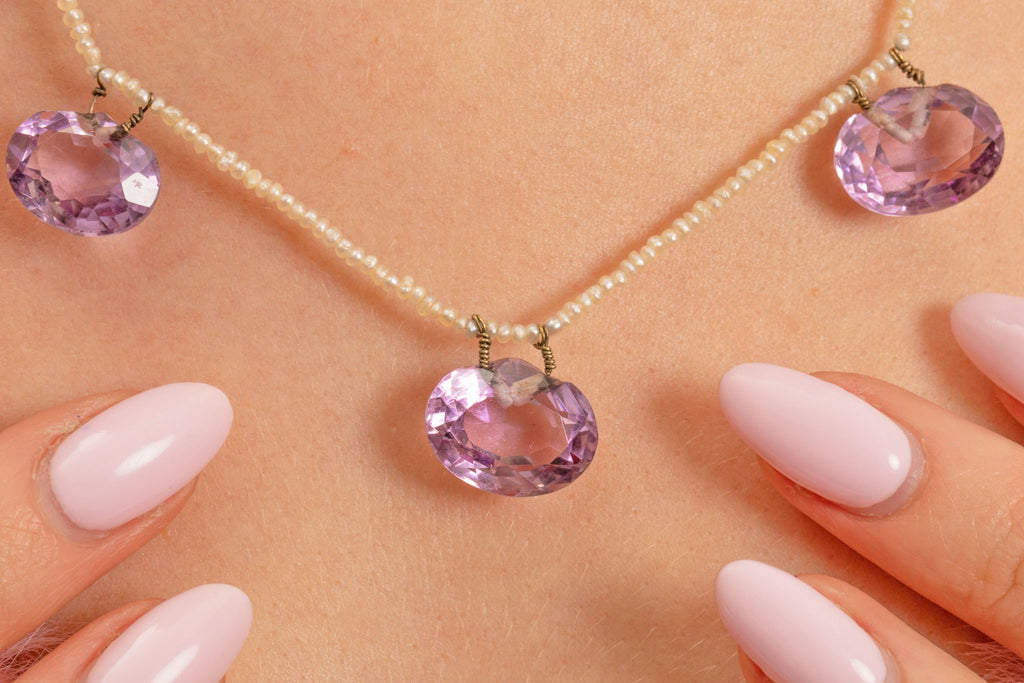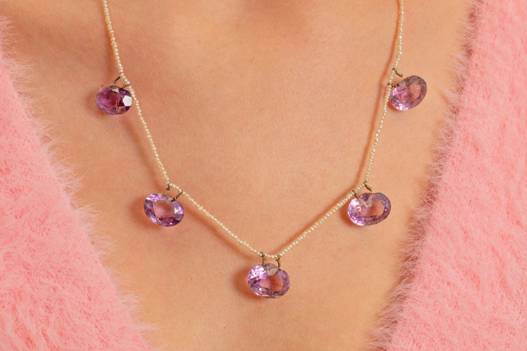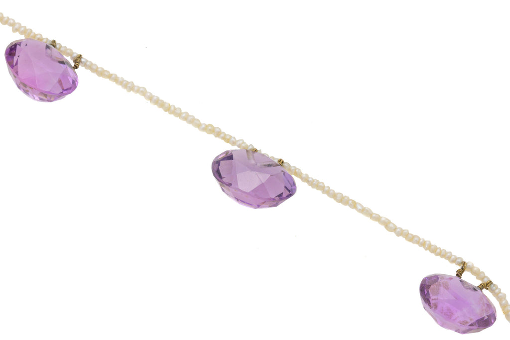 Edwardian 9ct Gold Amethyst & Seed Pearl Necklace, 25.55ct