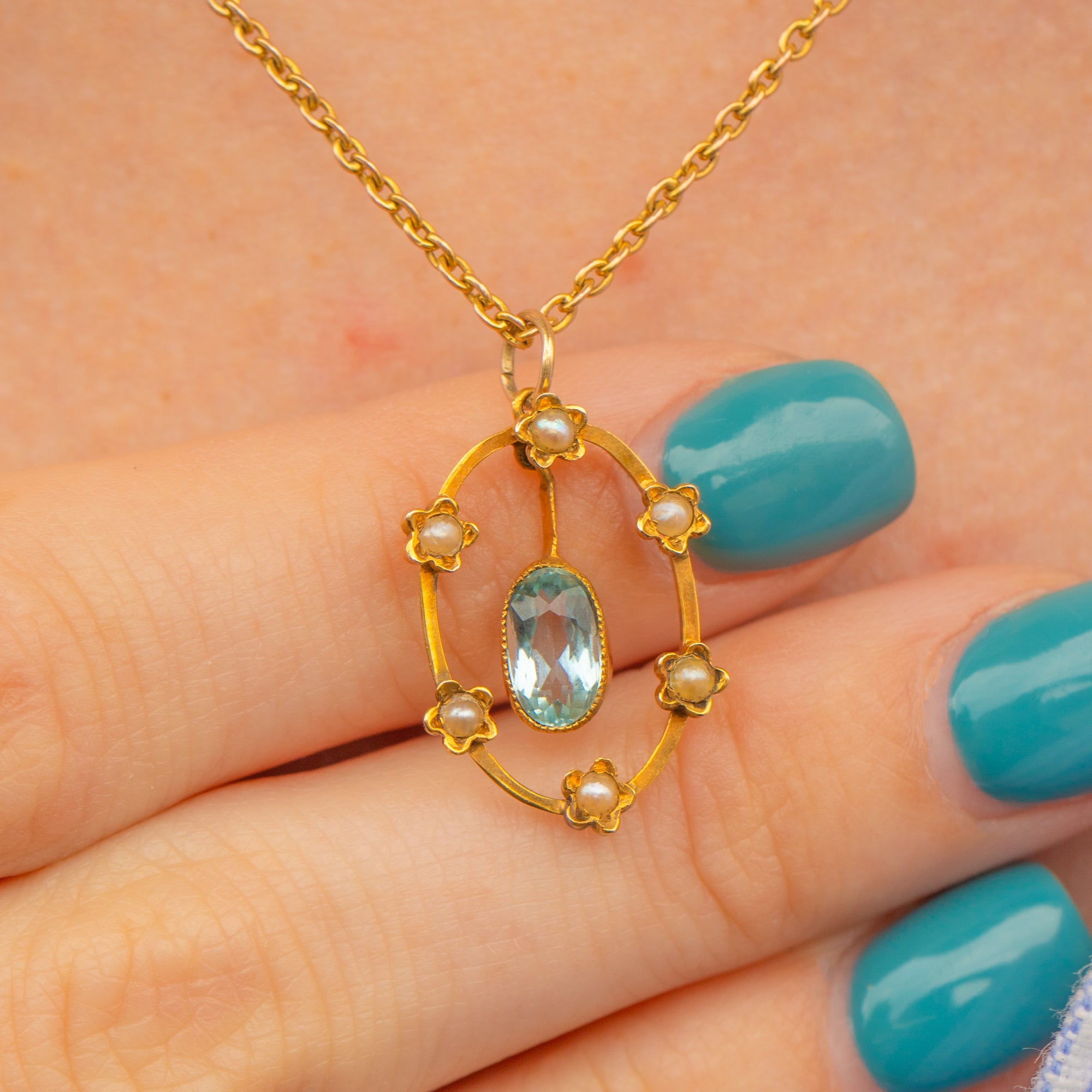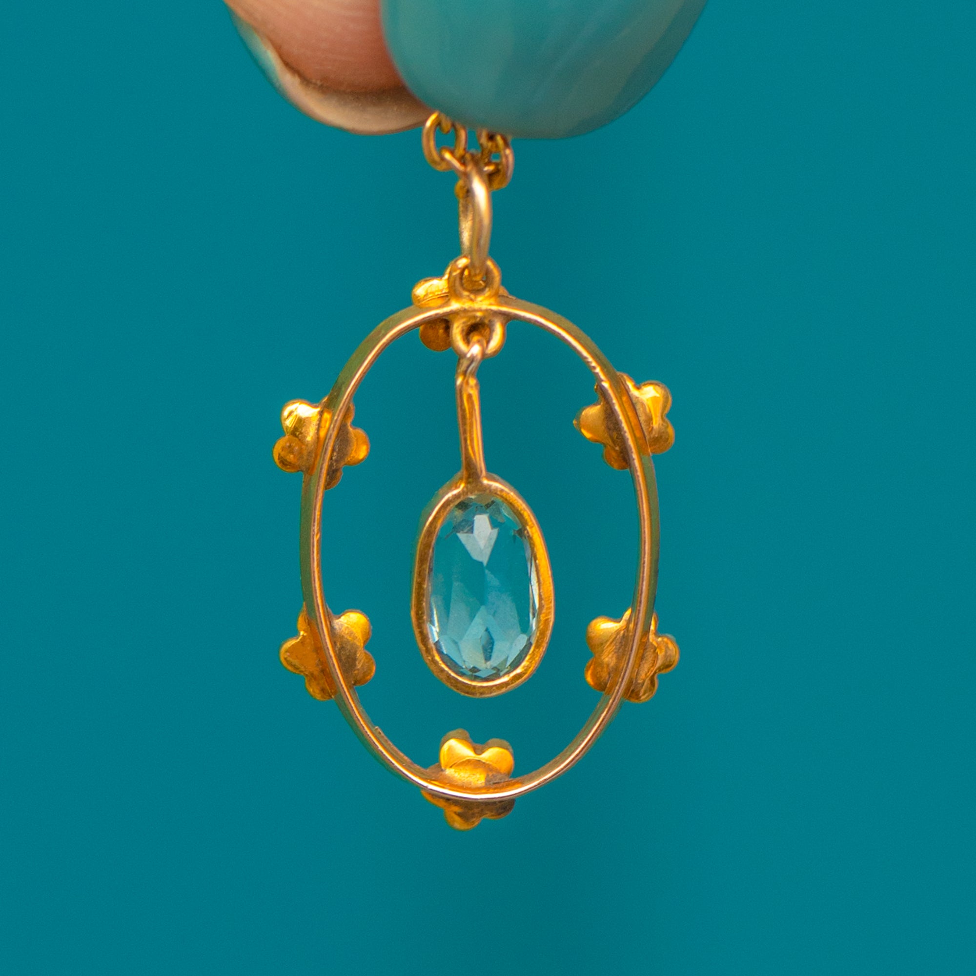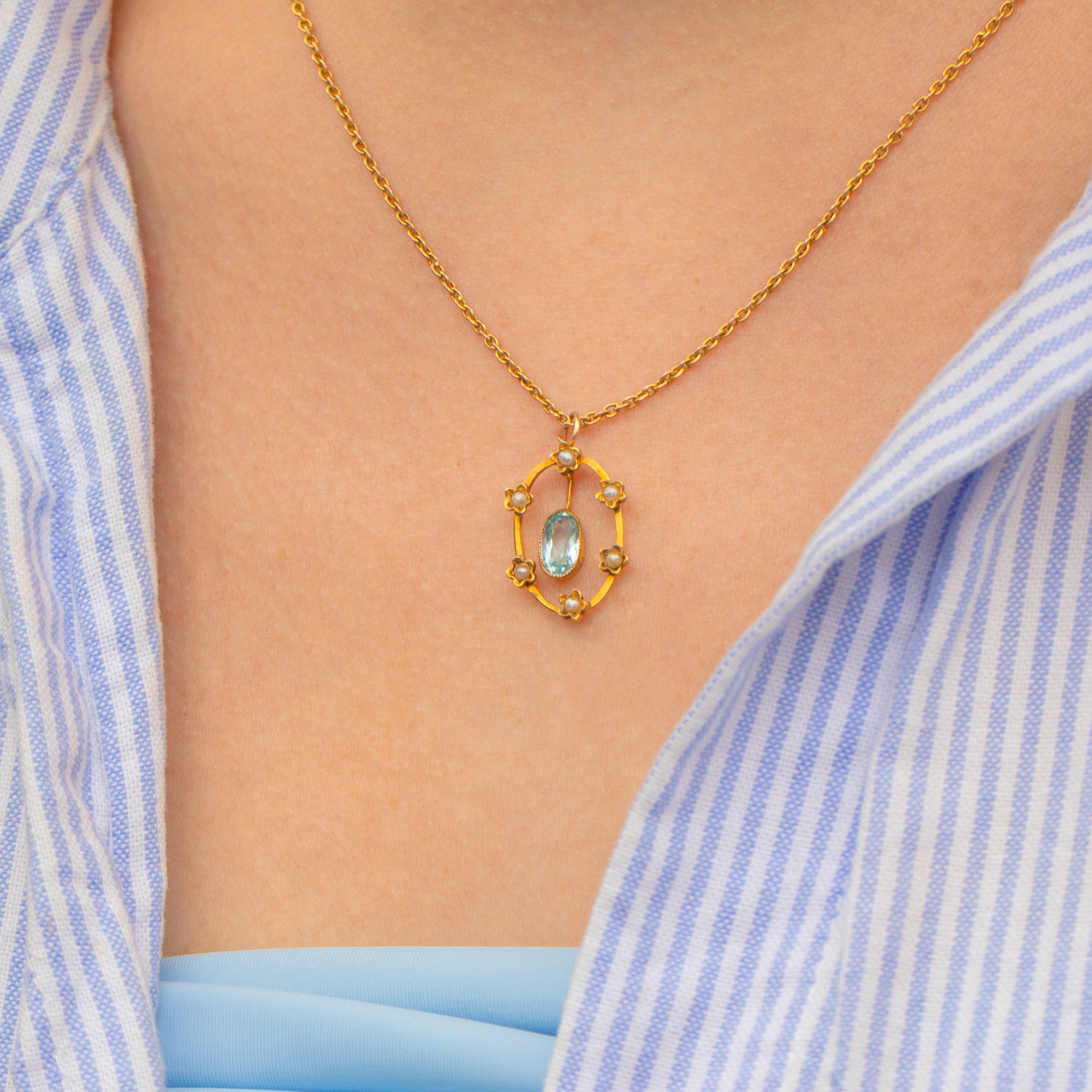 Bound together by buttery 9ct Gold, this antique Aquamarine pendant is bursting with splendour. The perfect summer wardrobe staple, we can just imagine her thriving in the light across your décolletage!