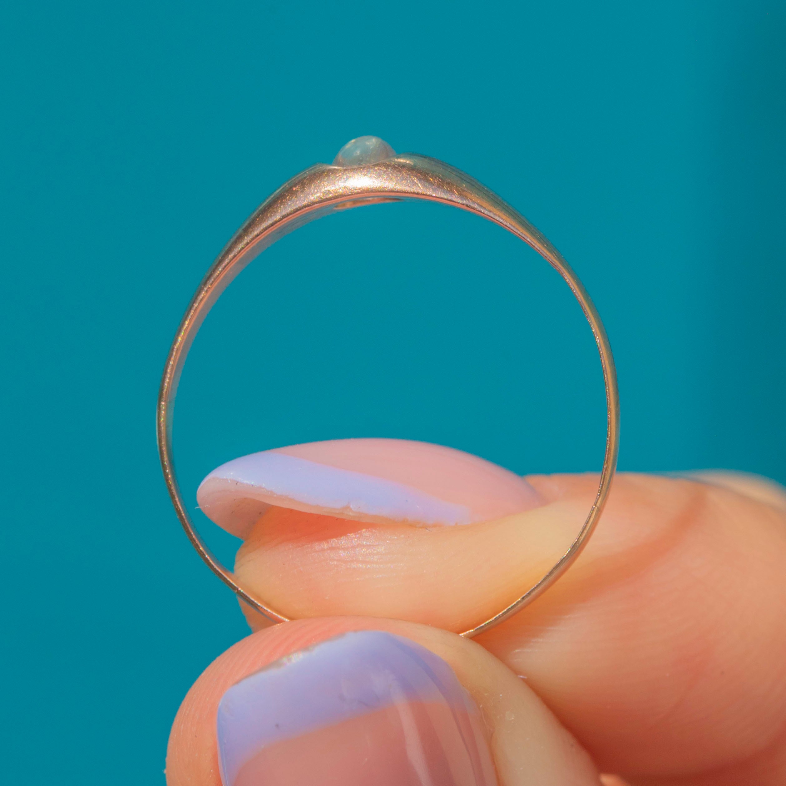 A mystical Edwardian 9ct Gold Ceylon Moonstone solitaire ring for your repertoire! You will become transfixed by the blue schiller that billows across the 0.28ct Moonstone cabochon; this Edwardian ring is one to be admired.