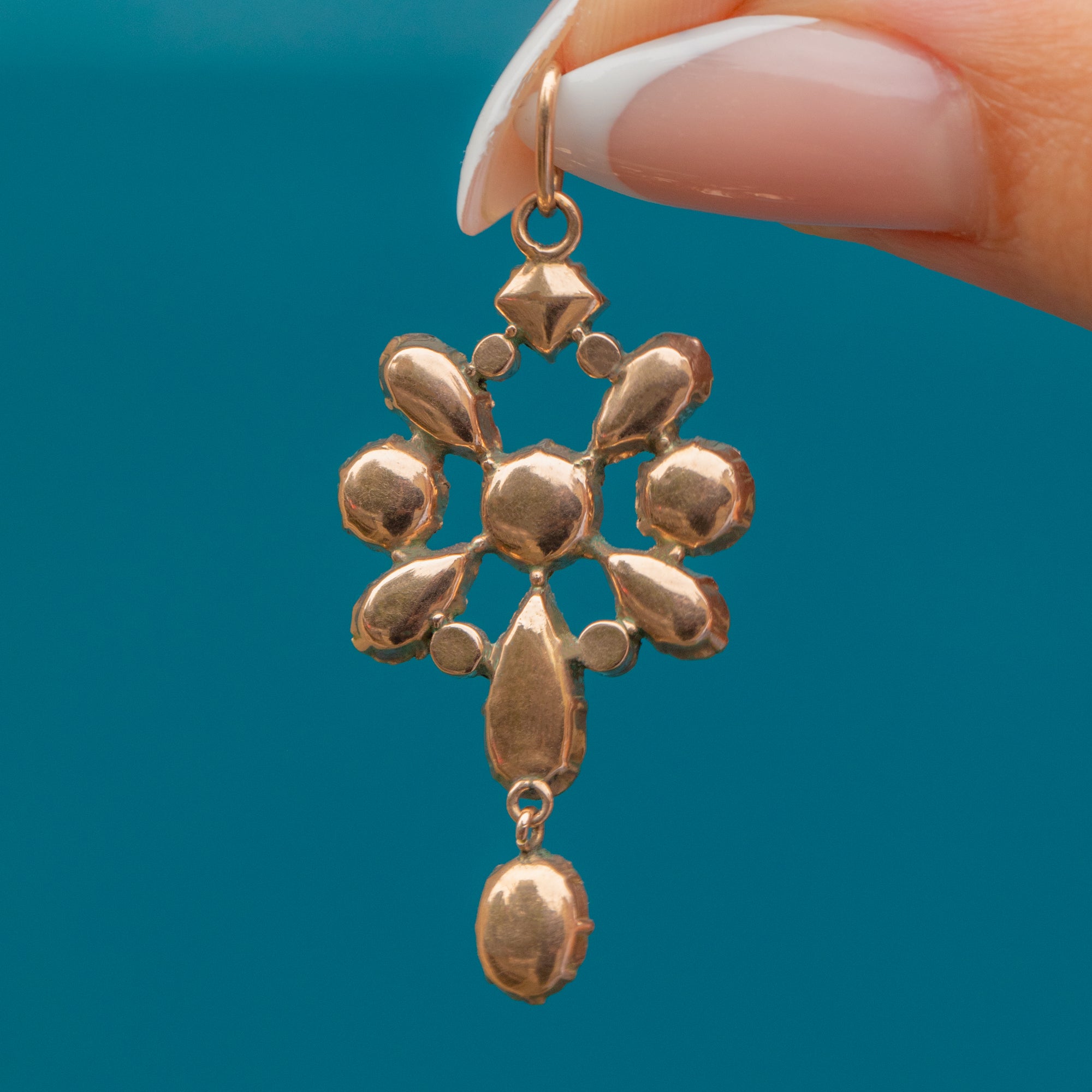 Lightweight and graceful, this pendant is a perfect statement jewel for day or evening wear, whether suspended from a fine Gold chain or a ribbon for a more authentic antique look.