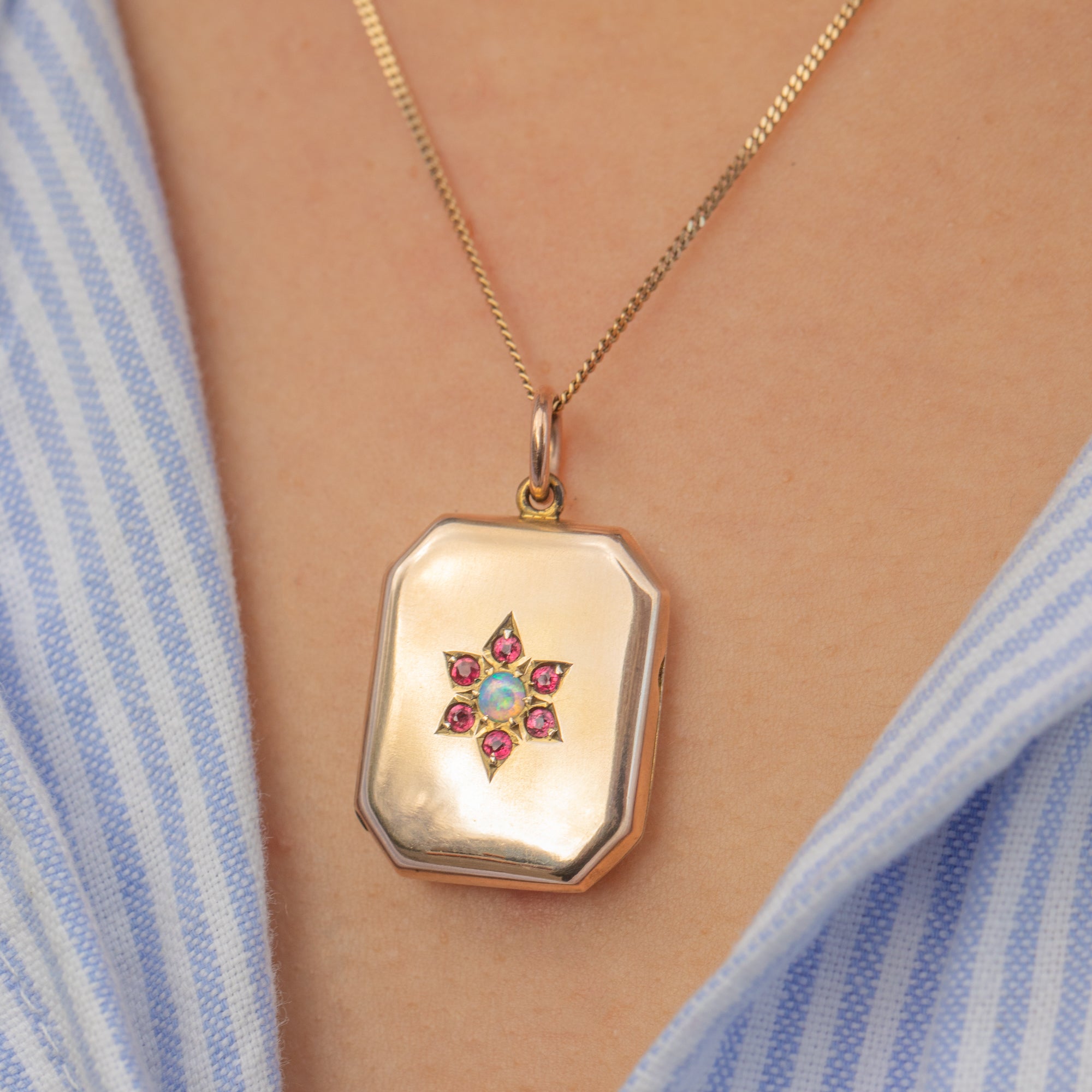 Edwardian 9ct Gold Garnet & Opal Flower Locket