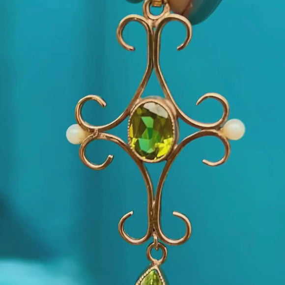 Edwardian 9ct Gold Peridot Pearl Pendant