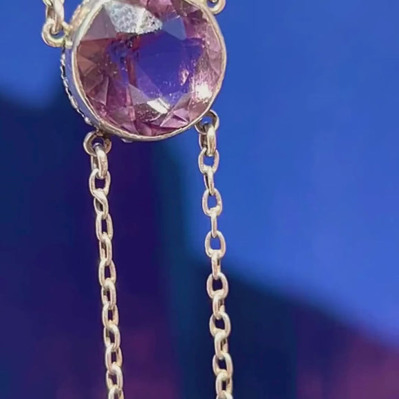 A true delight, this Edwardian Silver Amethyst negligee necklace is majestic! Her lavender hued Amethysts, with a combined carat weight of 16.85ct, are perfectly matched and the cool tones of her Silver that run through her chain and settings compleiemt them beautifully.