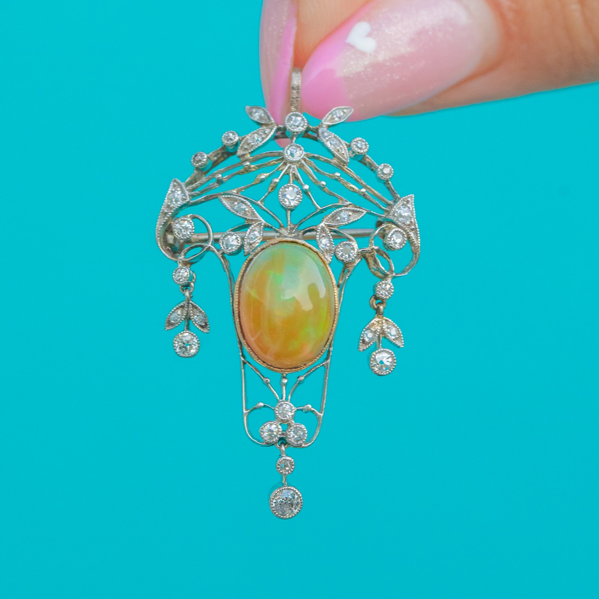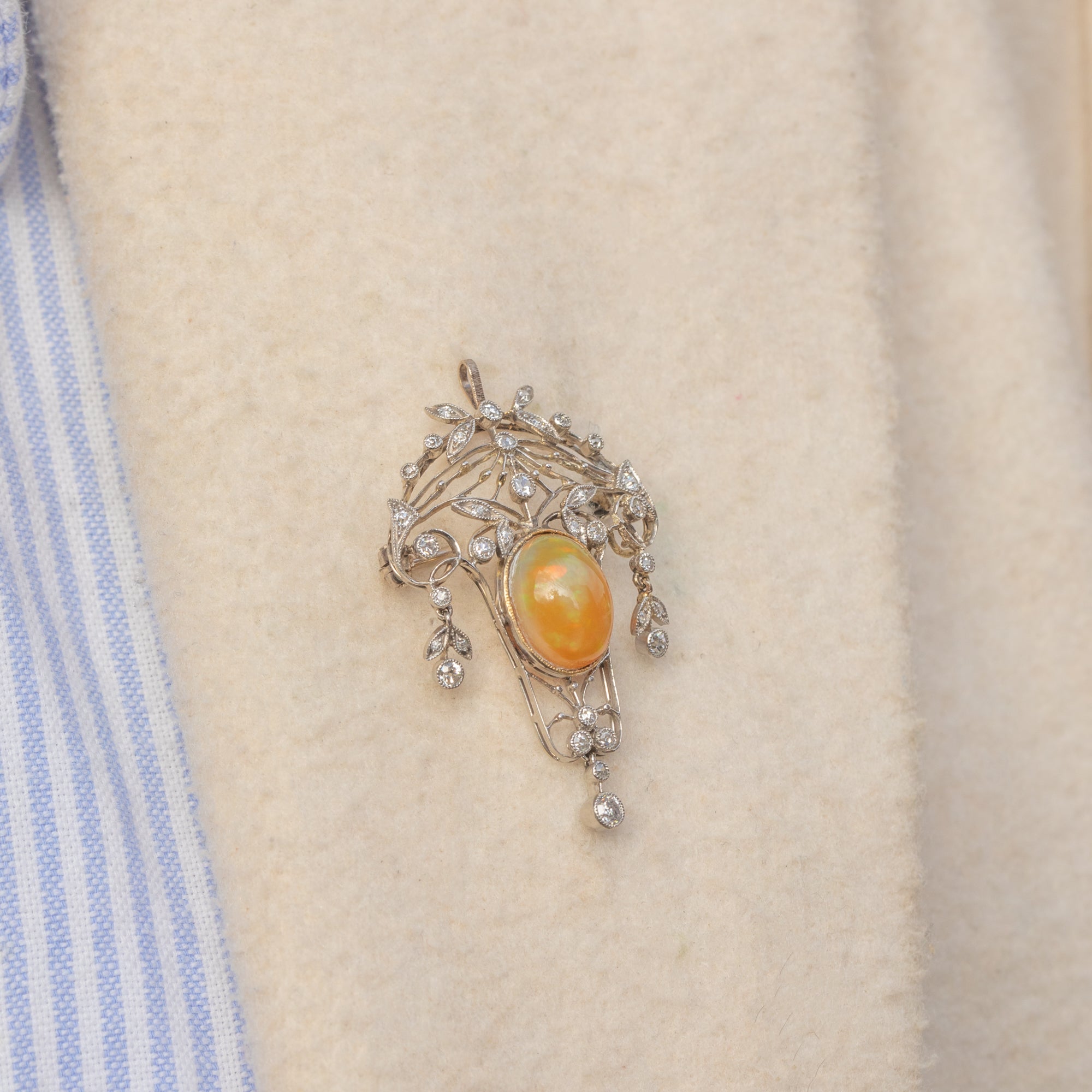 Edwardian Fire Opal Diamond Pendant, Brooch Fittings