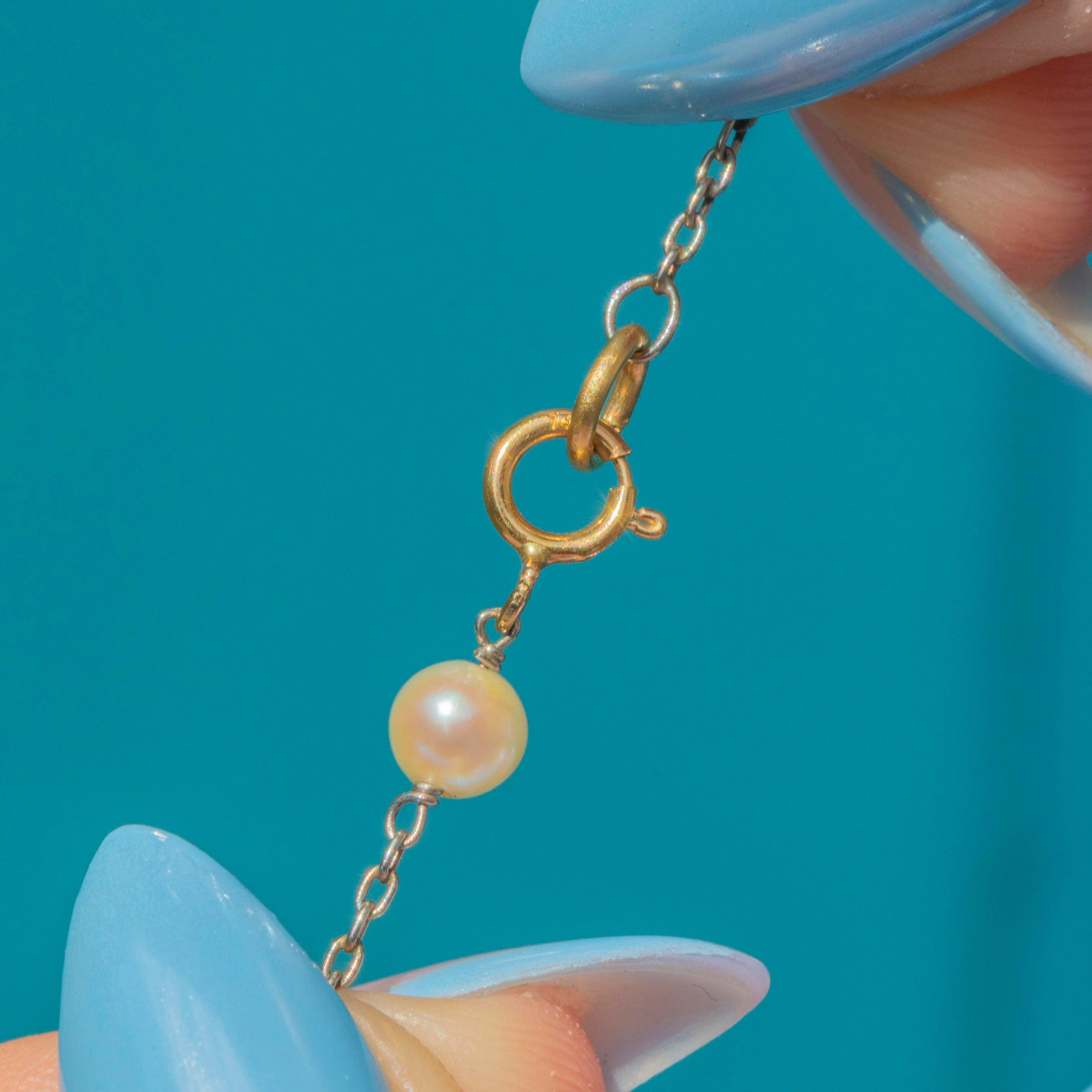 The slender chain highlights the beauty of each Pearl, creating a refined, graceful silhouette. Perfect worn alone or layered, it’s a charming antique piece that adds a subtle, sophisticated touch to any look.