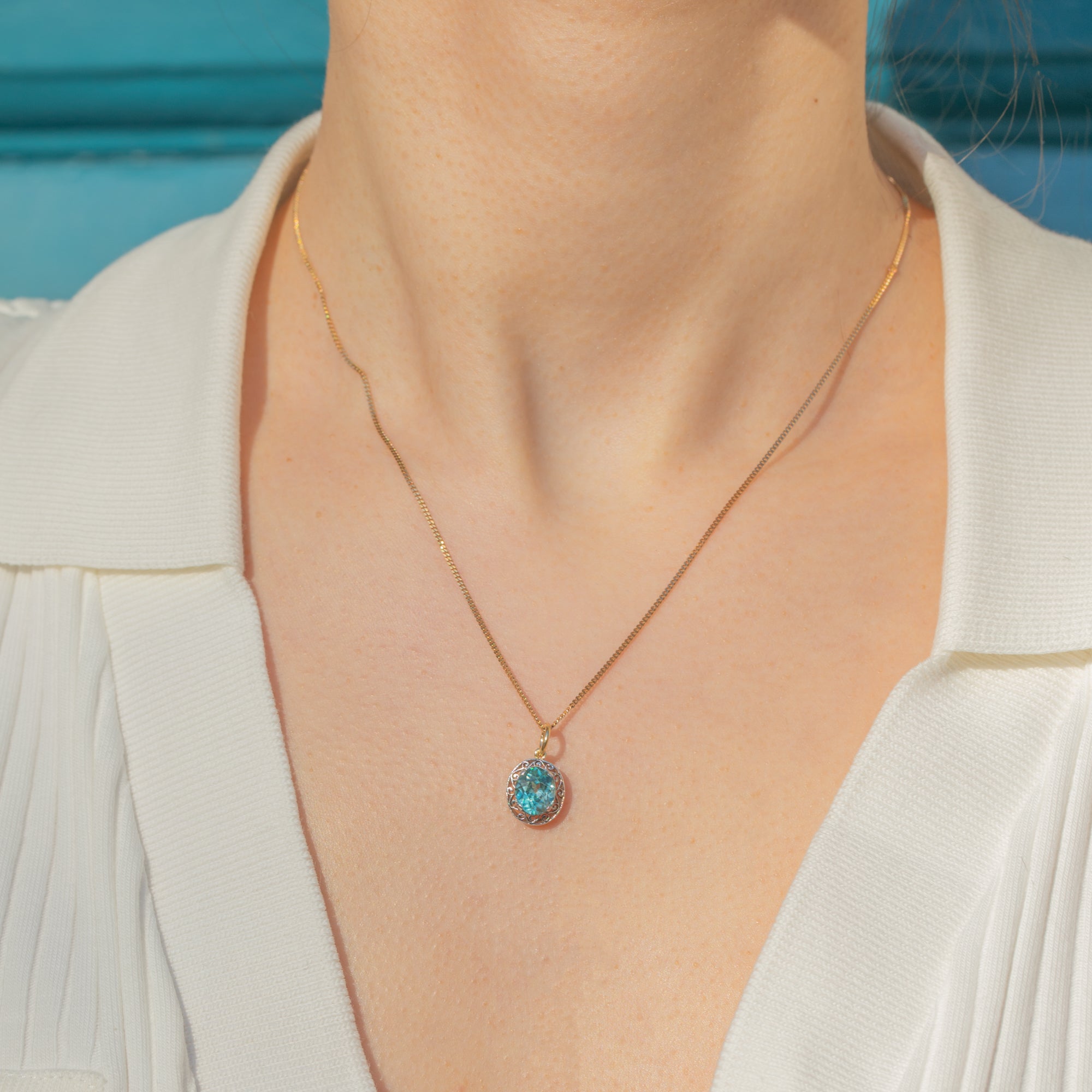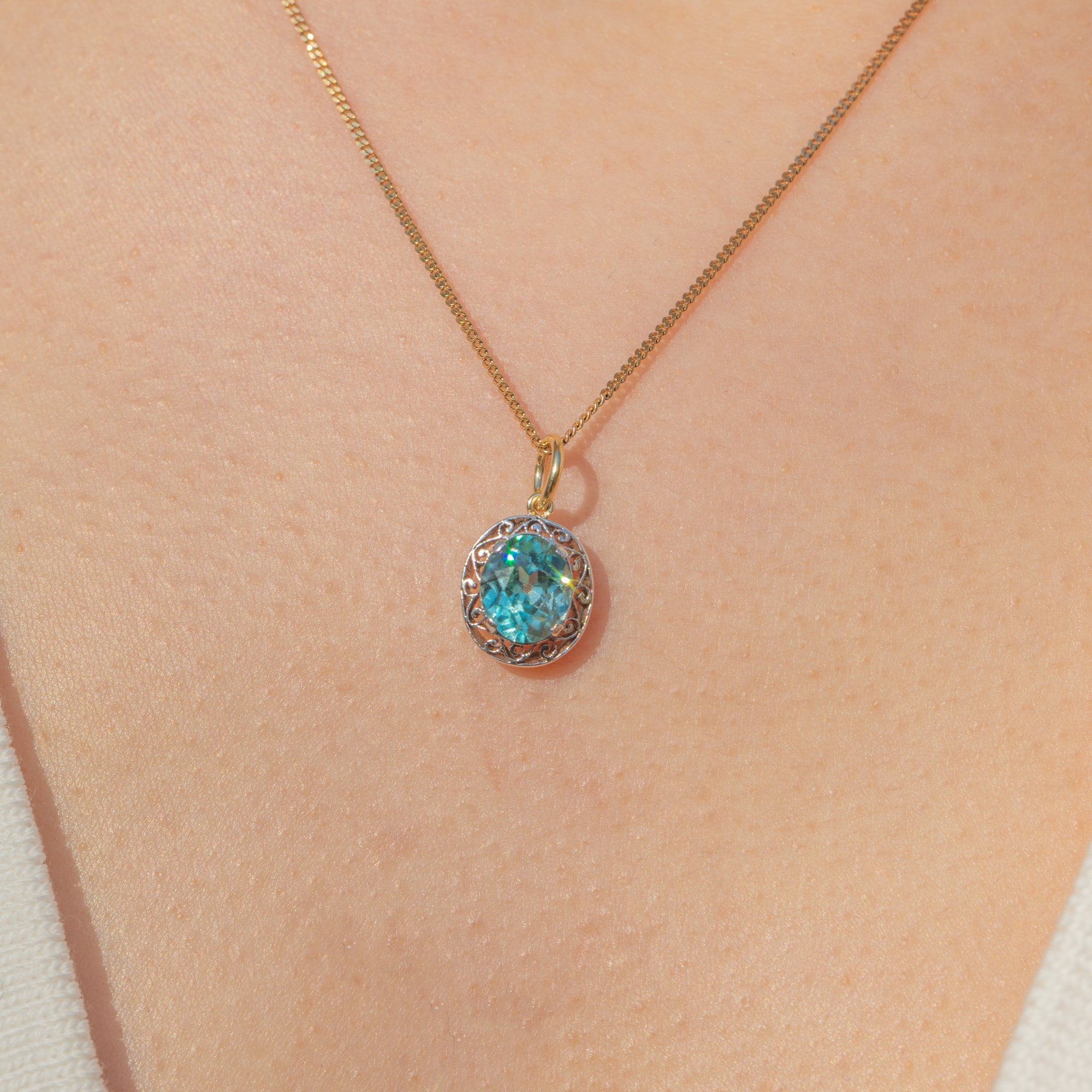 A decorative Silver filigree border wraps elegantly around the Zircon, creating an eye-catching design, with the 9ct Gold jump ring making it easy to style. A dainty delight, this antique Zircon pendant will make a lovely addition to your collection!