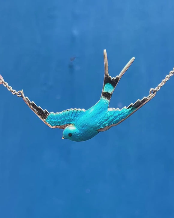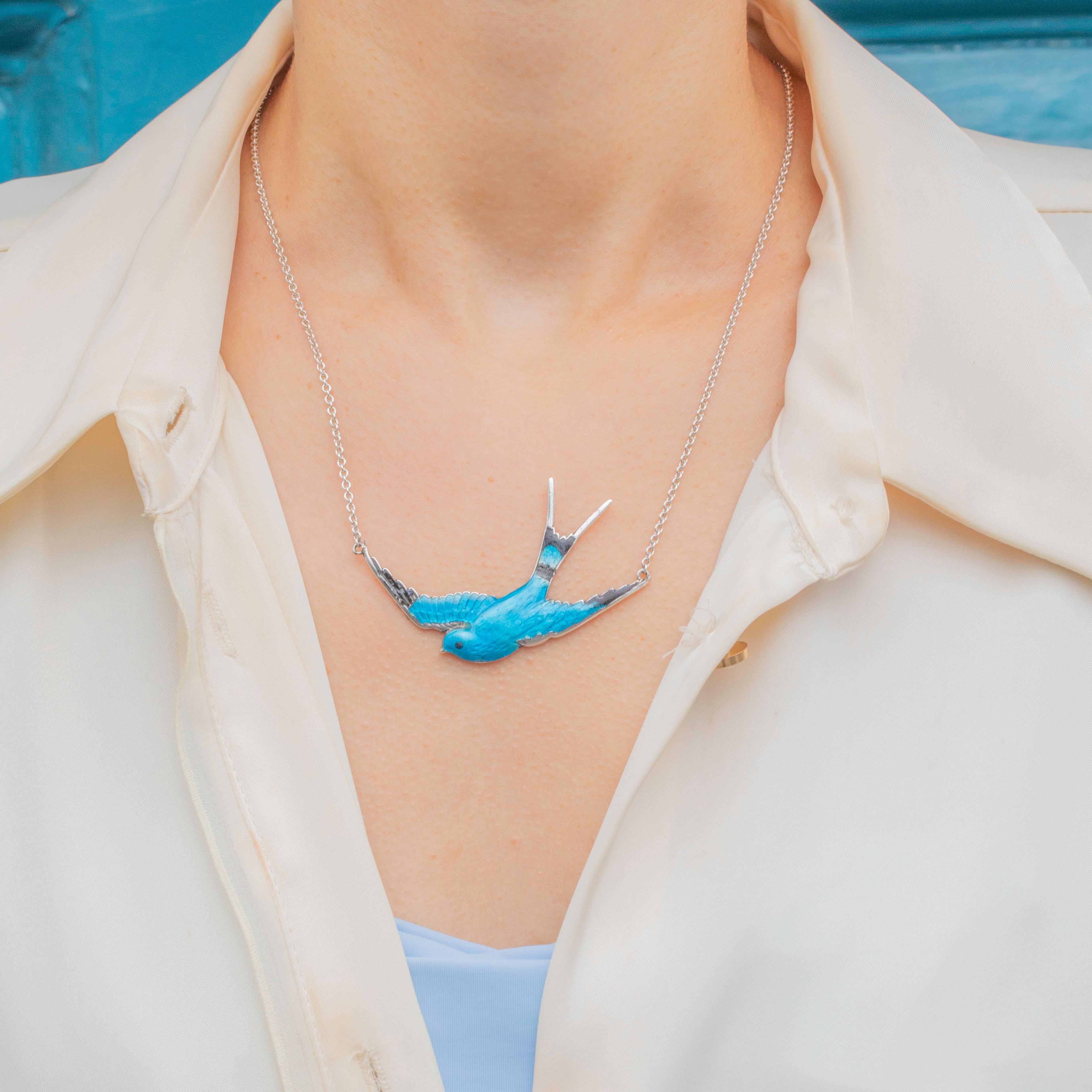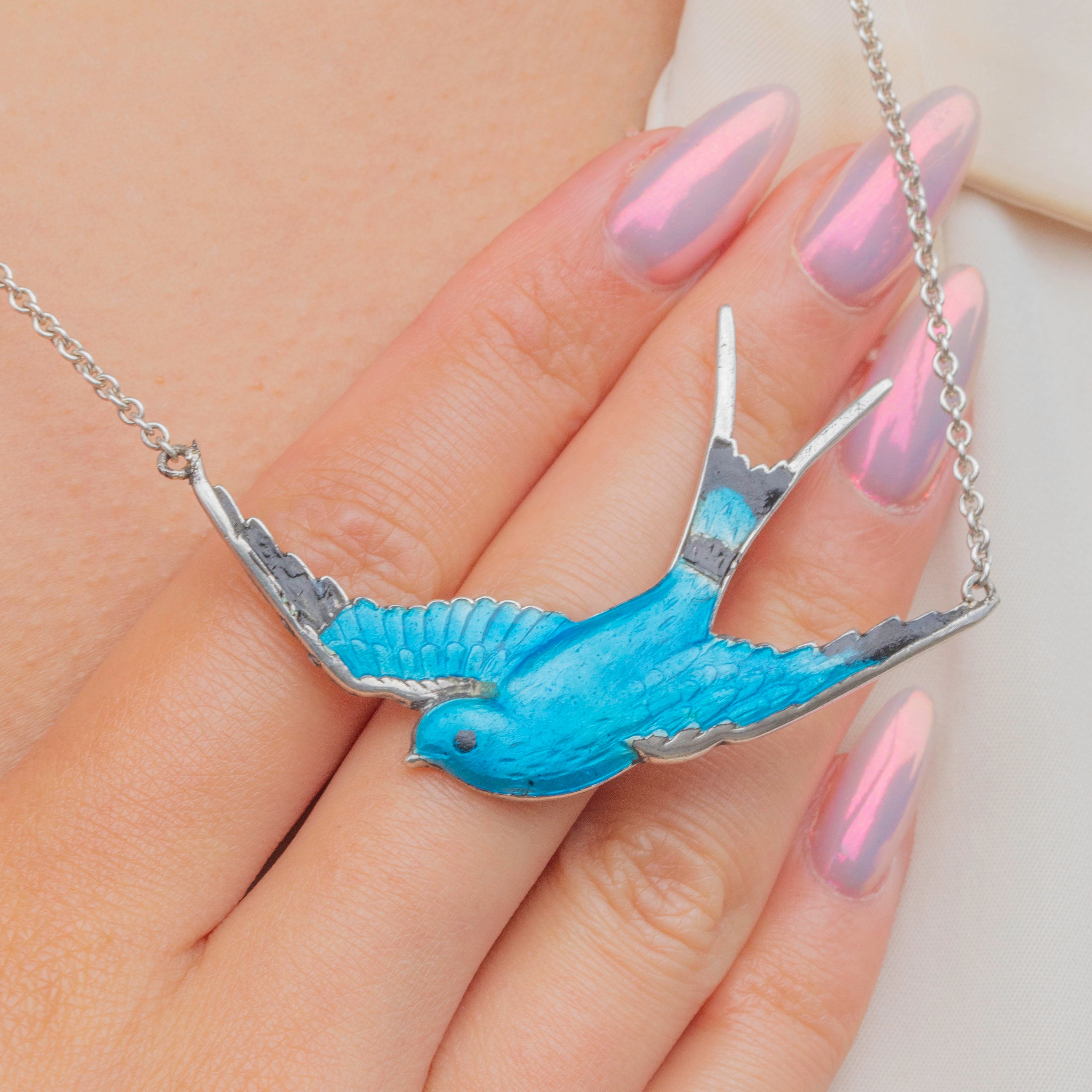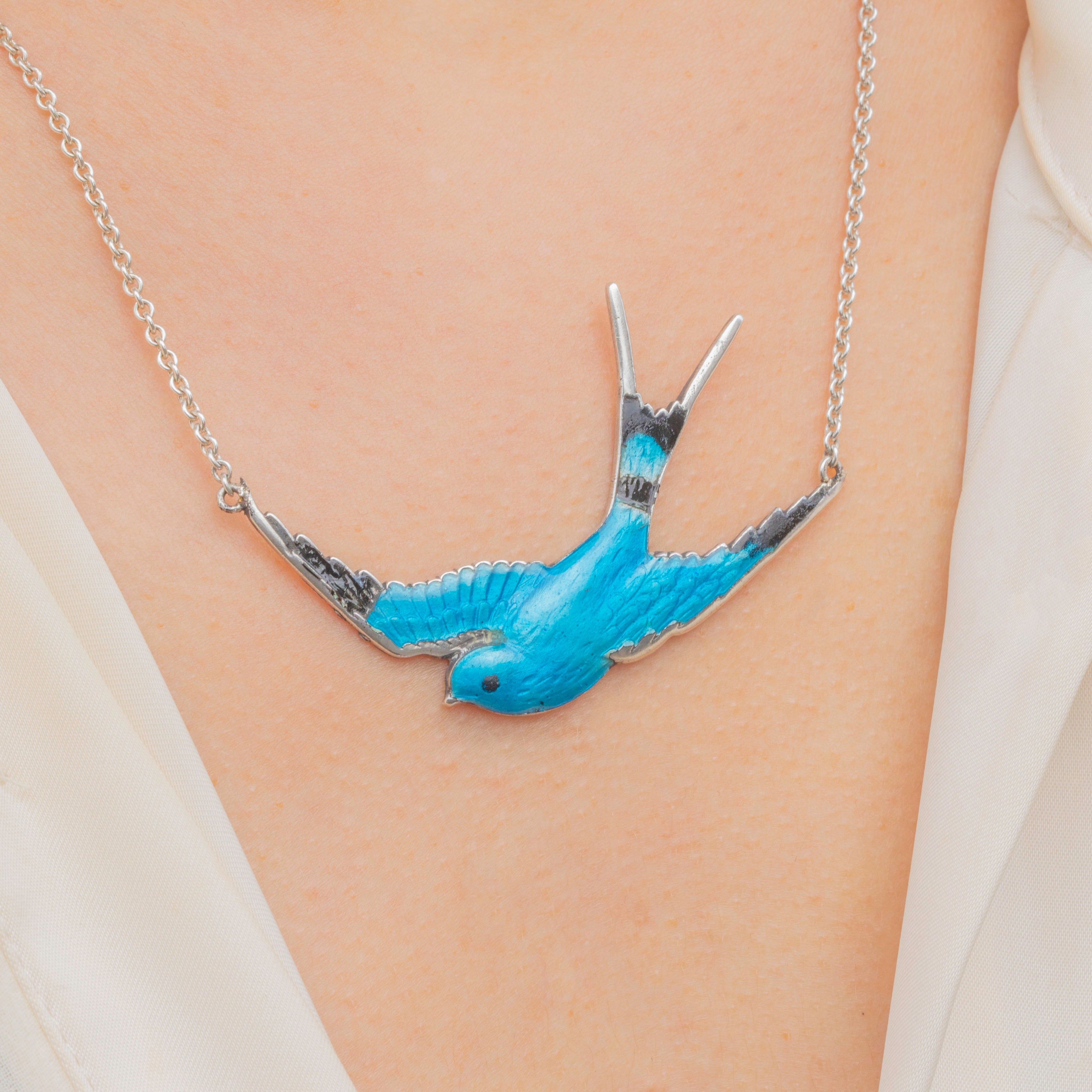 This Silver Enamel swallow bird necklace will bring bundles of antique charm to your décolletage!