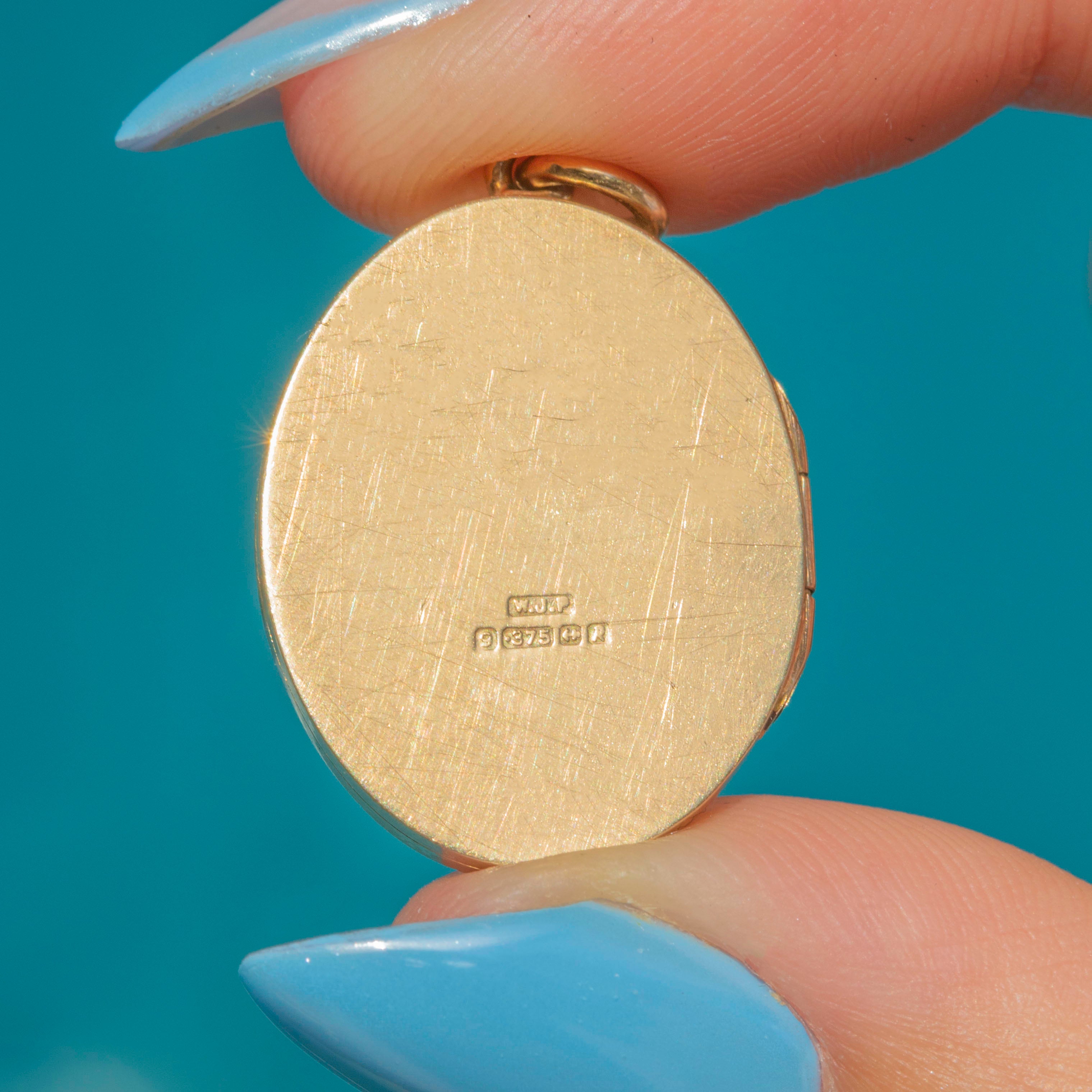 Edwardian Solid 9ct Gold Engraved Oval Locket, c.1907