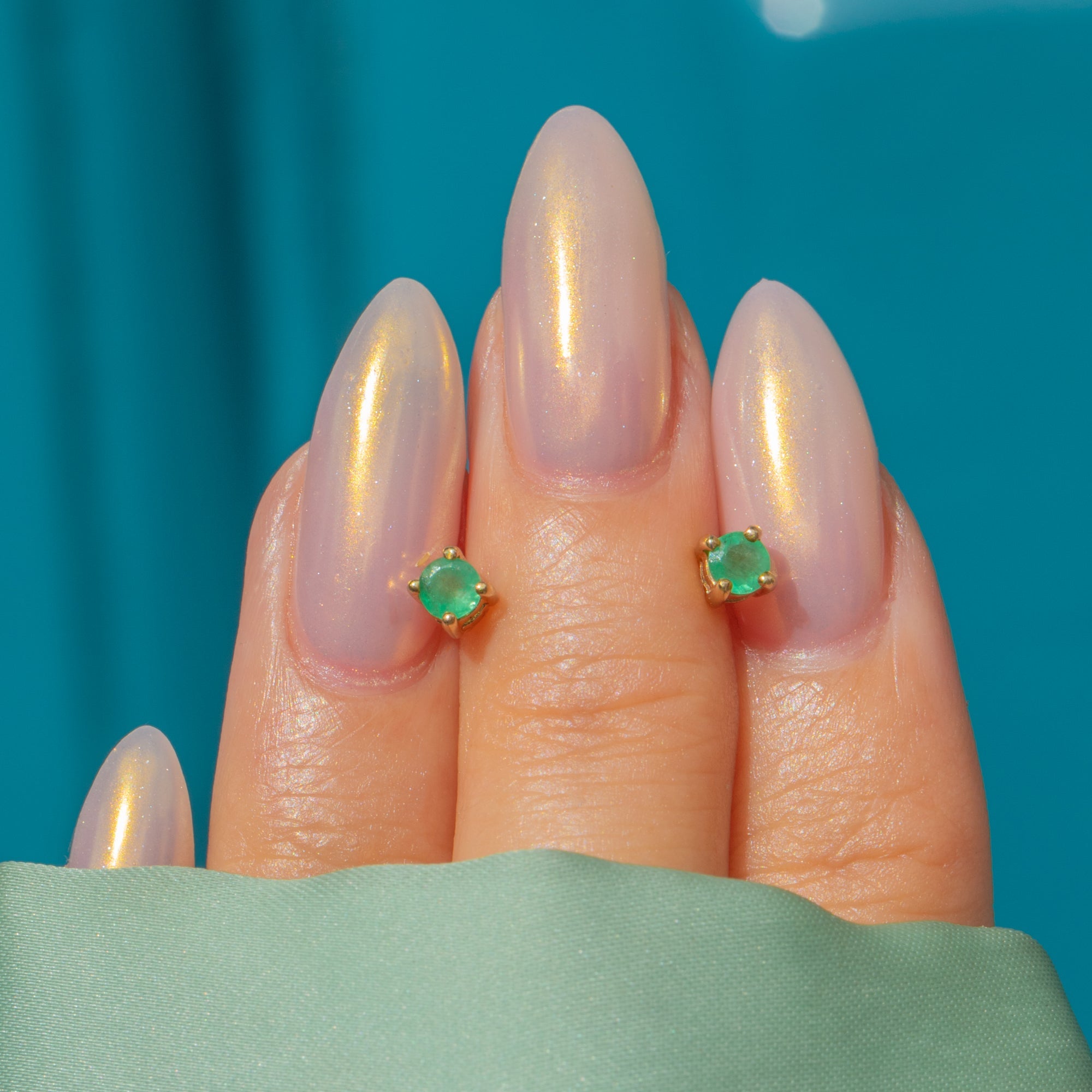 MEASUREMENTS: Emeralds measure 3mm in diameter, weighing approx. 0.20ct combined.