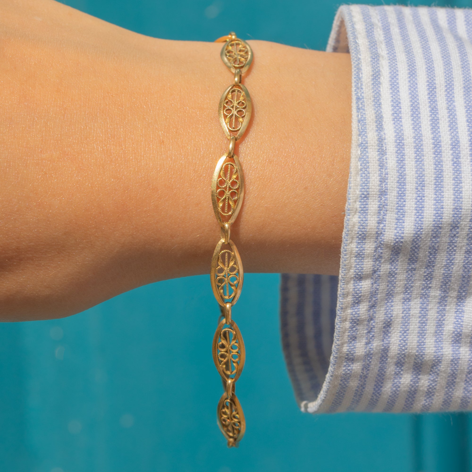 French Antique 18ct Gold Filigree Lozenge Bracelet