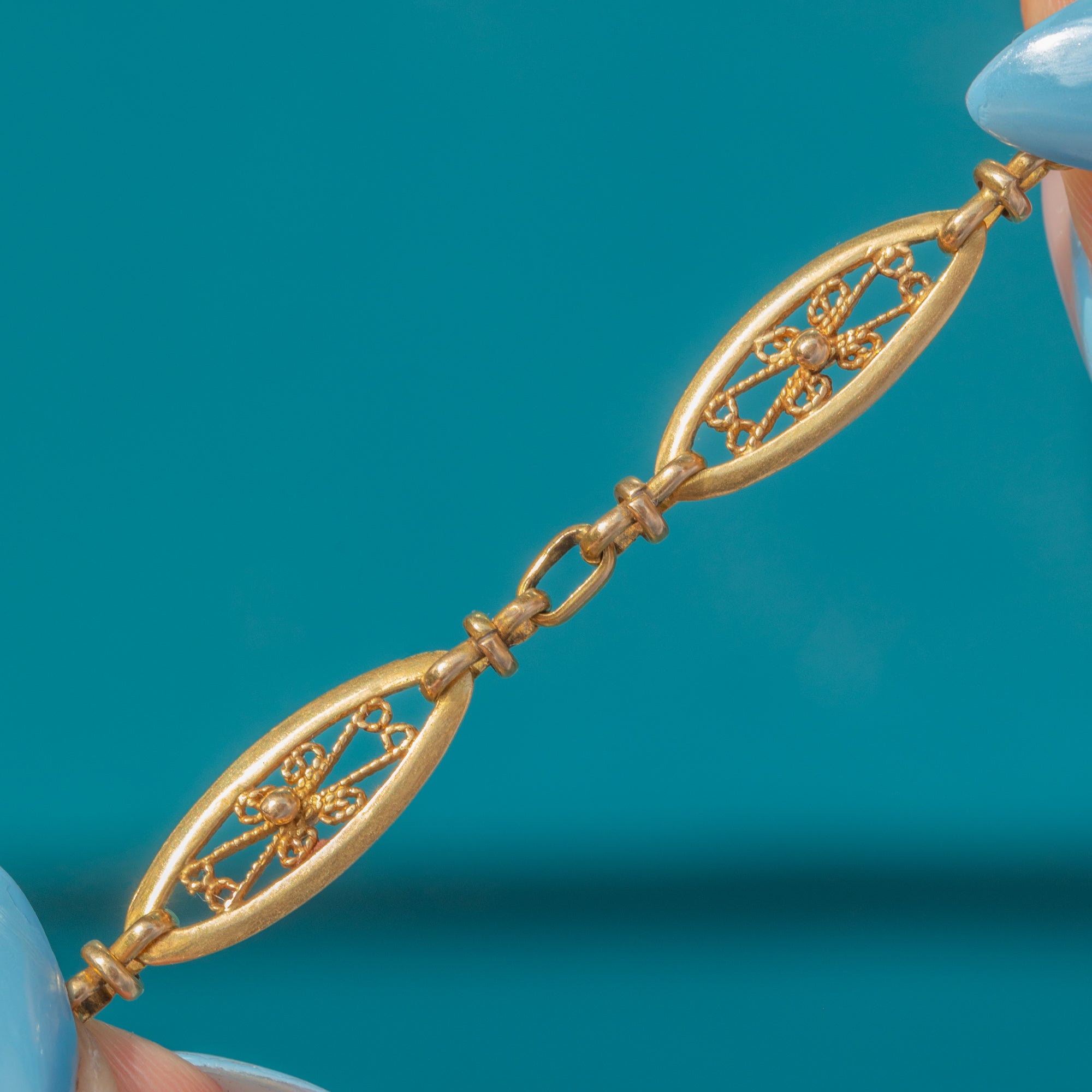 EXCELLENT: The Gold is bright and glossy, with little signs of wear, which is quite incredible when considering its age. Each lozenge link has been wonderfully crafted and has retained its form. With its clasp in perfect working order, this Victorian Gold chain can be worn with utmost confidence.