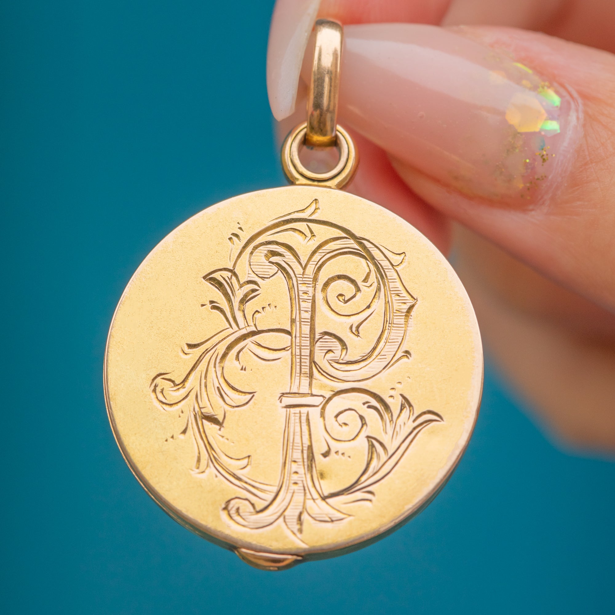 To the reverse it is engraved “EP”, adding a charming personal touch from a bygone era. An elegant, heirloom-worthy locket with both frames present and ready for your photographs.