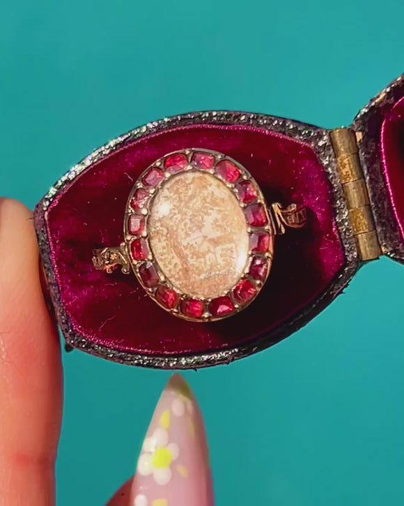 George III Early Georgian 18ct Gold Garnet Mourning Ring c.1762, Fitted Box Item added