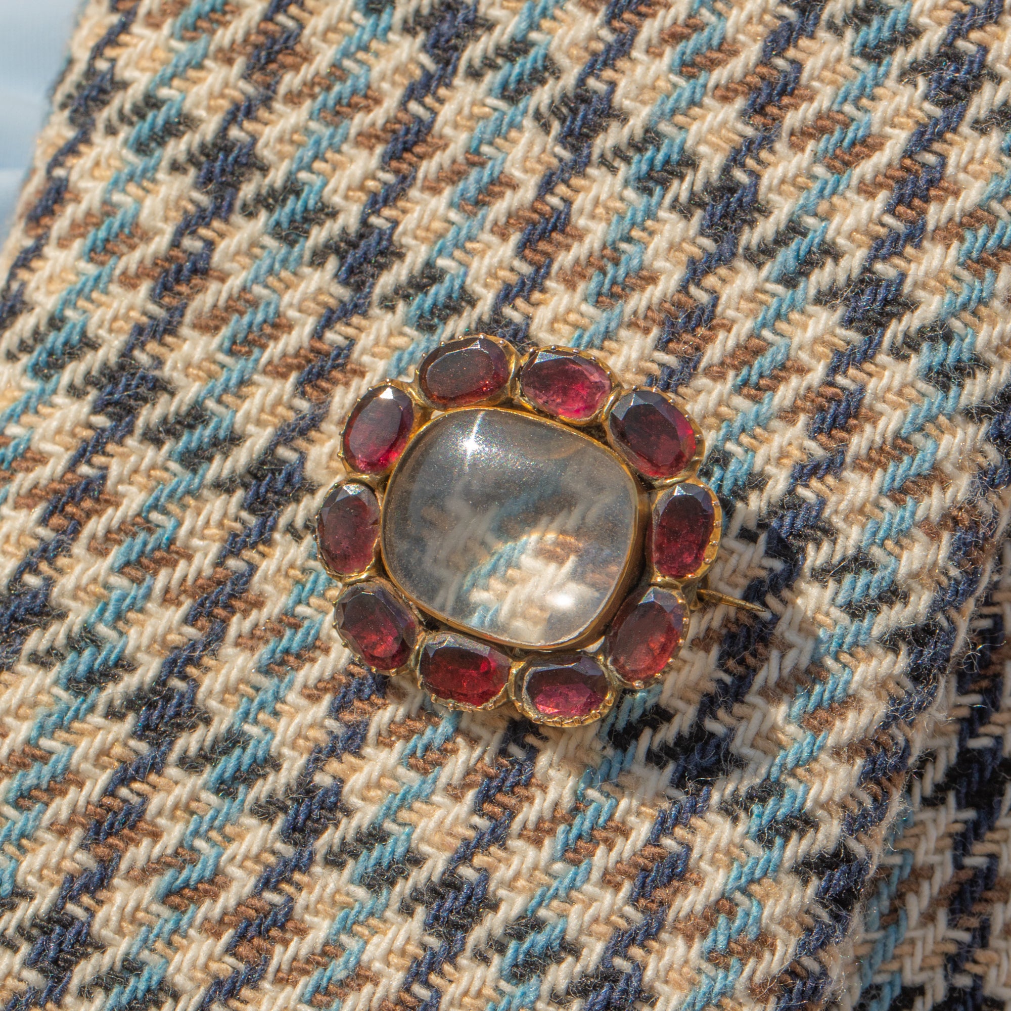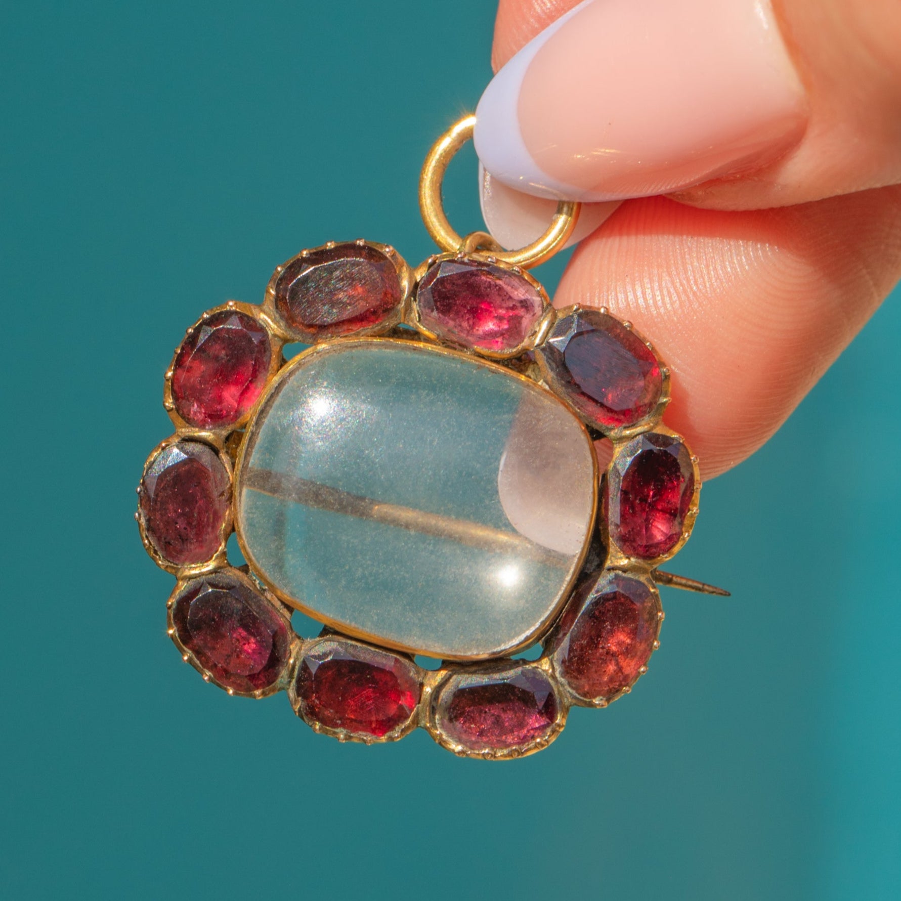 Georgian 15ct Gold Flat-Cut Garnet Shaker Locket, Brooch Fittings