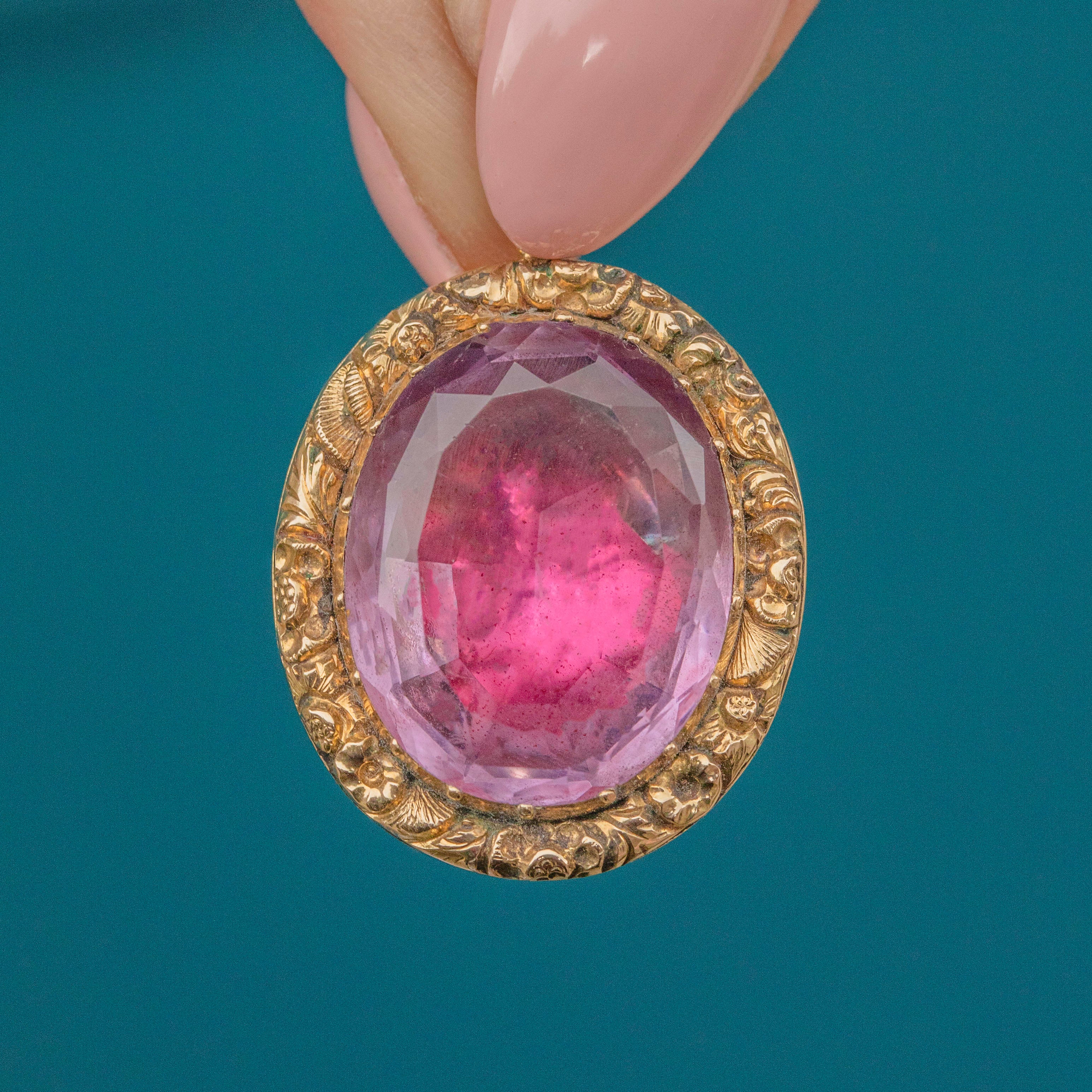Add a pop of colourful charm to your collection with this stunning Georgian foiled Amethyst pendant! Her featured Amethyst is sure to turn heads, enhanced by the foil backing, to give the gemstone a luminous glowing quality, radiating lush fuchsia and lavender hues.