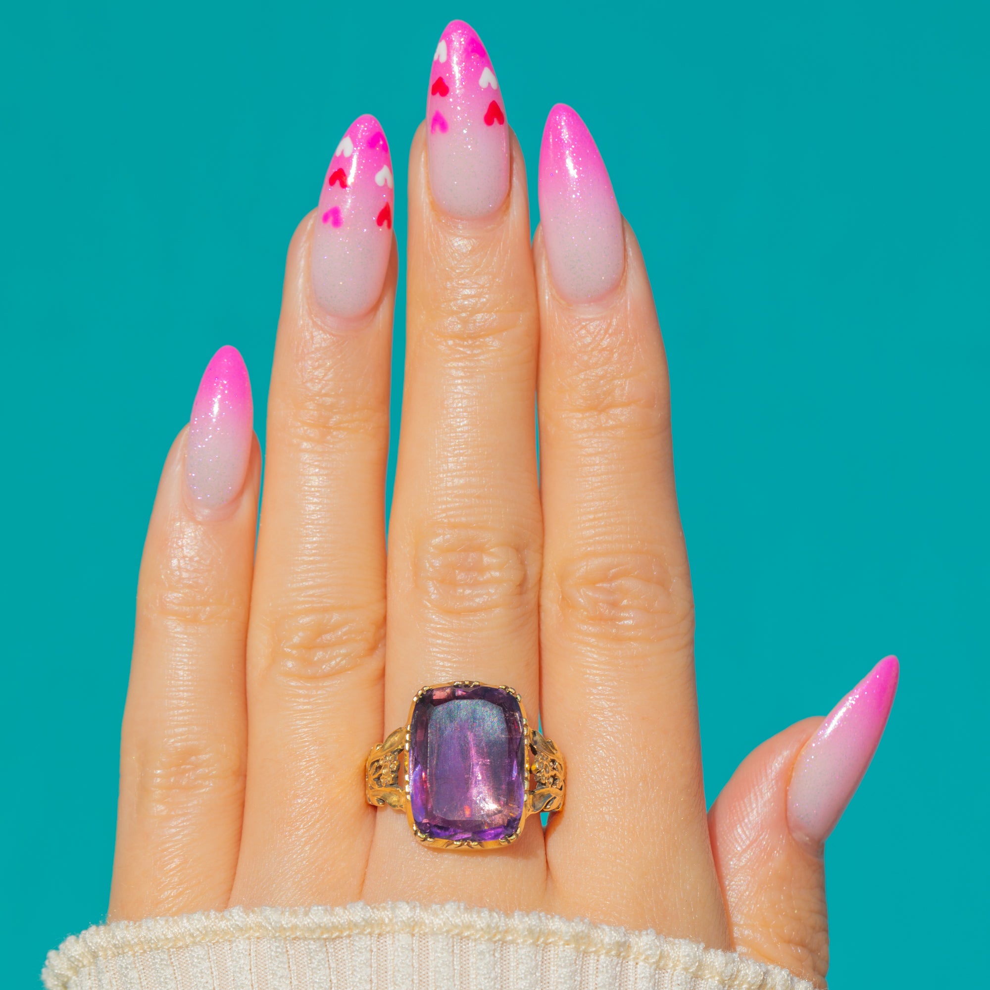 The foiled Amethyst catches the light beautifully, shifting from lilac to plum with captivating inner glow. Luxurious and substantial yet exquisitely detailed, this is a statement cocktail ring that channels the grandeur and elegance of the Georgian era.