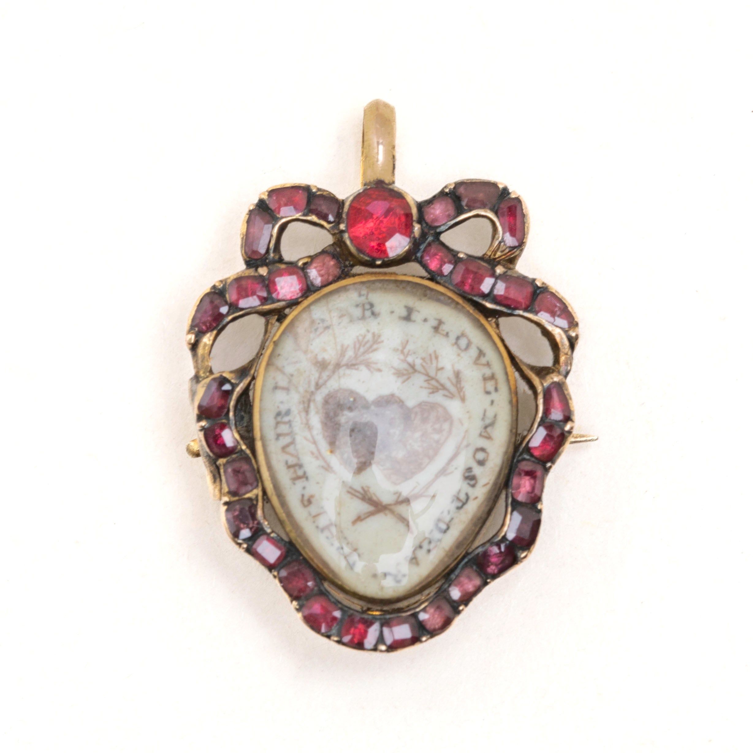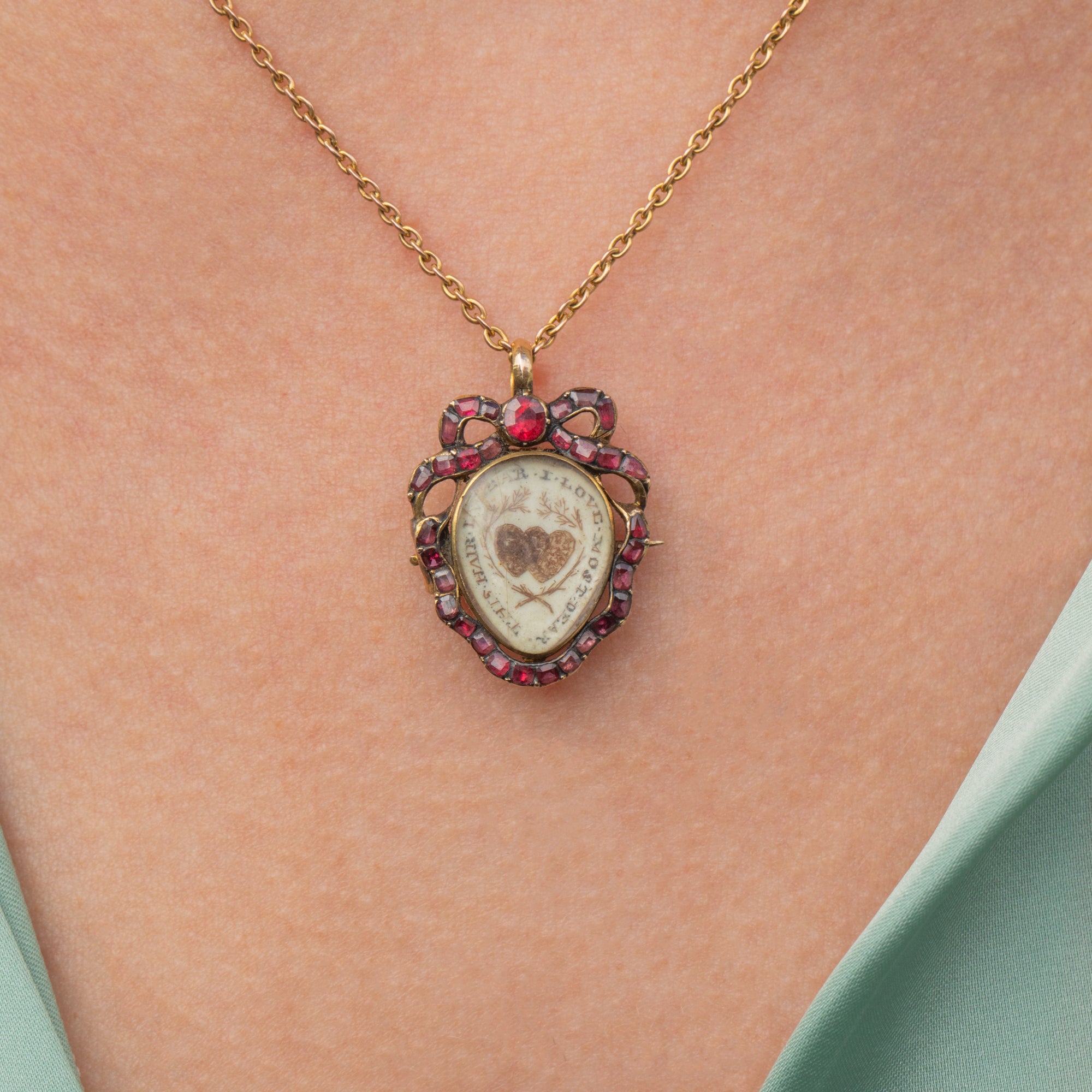 Georgian 15ct Gold Garnet Heart Mourning Pendant, 'This Hair I Wear, I Love Most Dear'