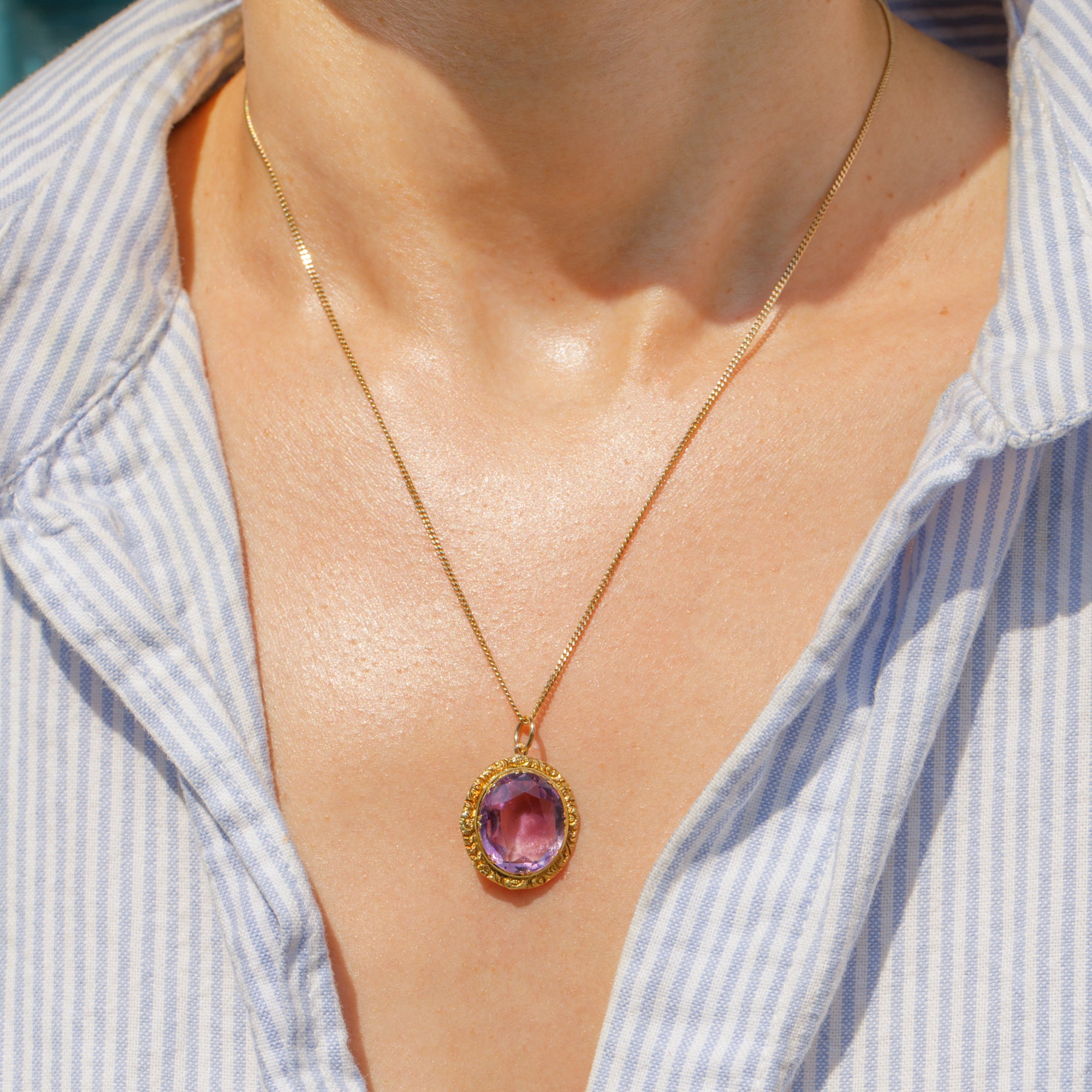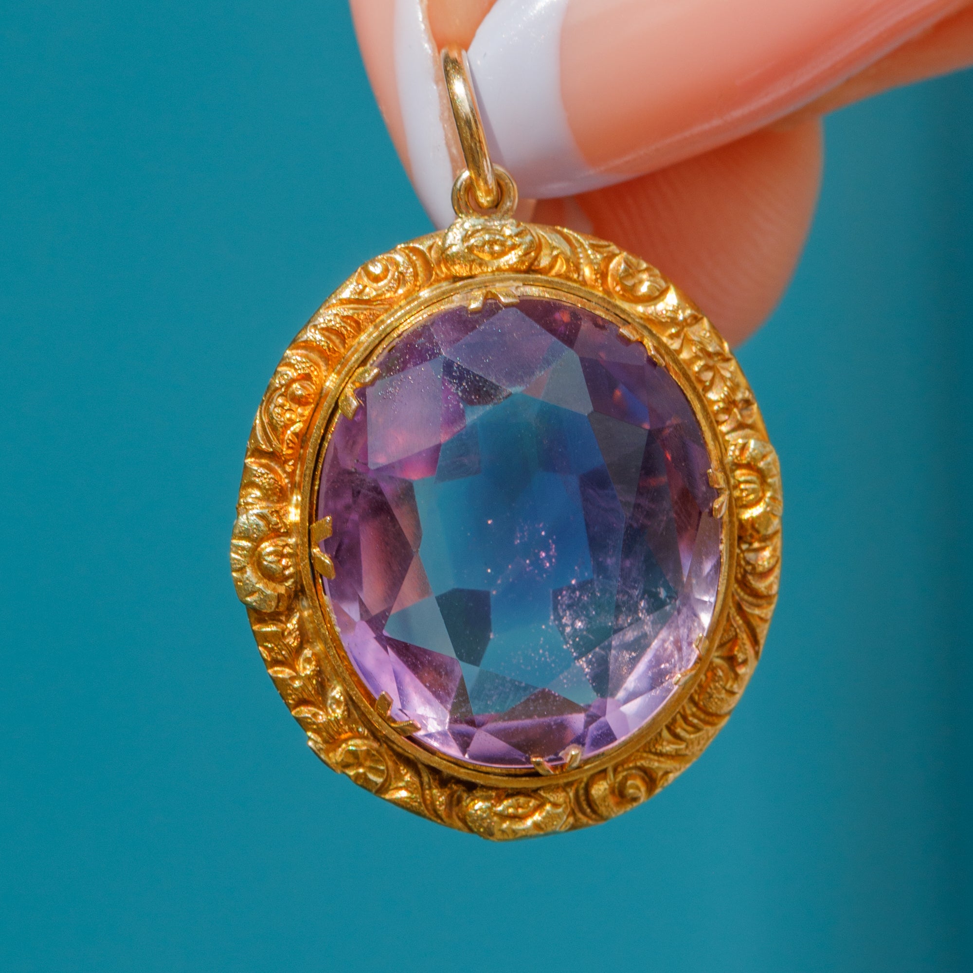 This Georgian 18ct Gold chased Amethyst pendant radiates antique charm!