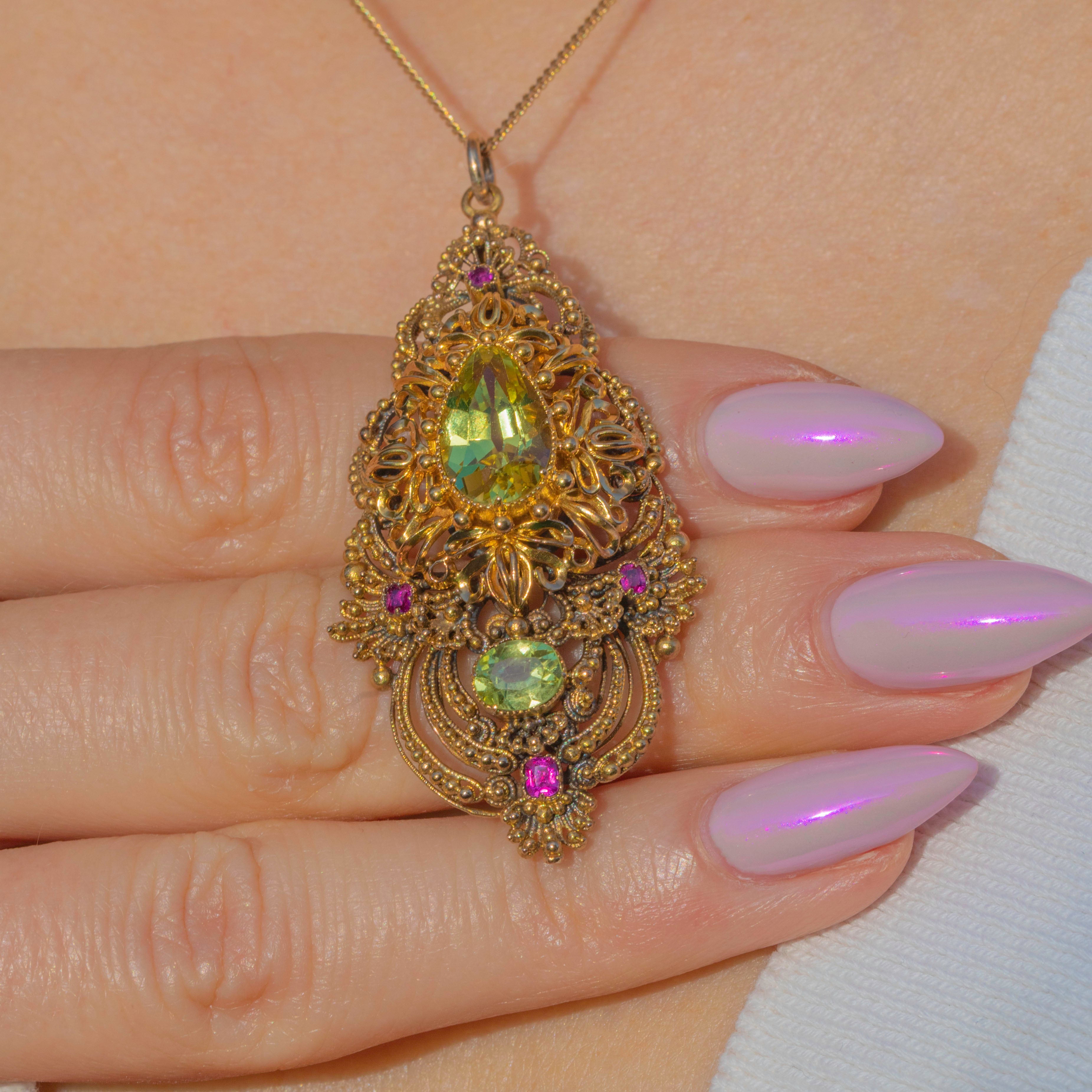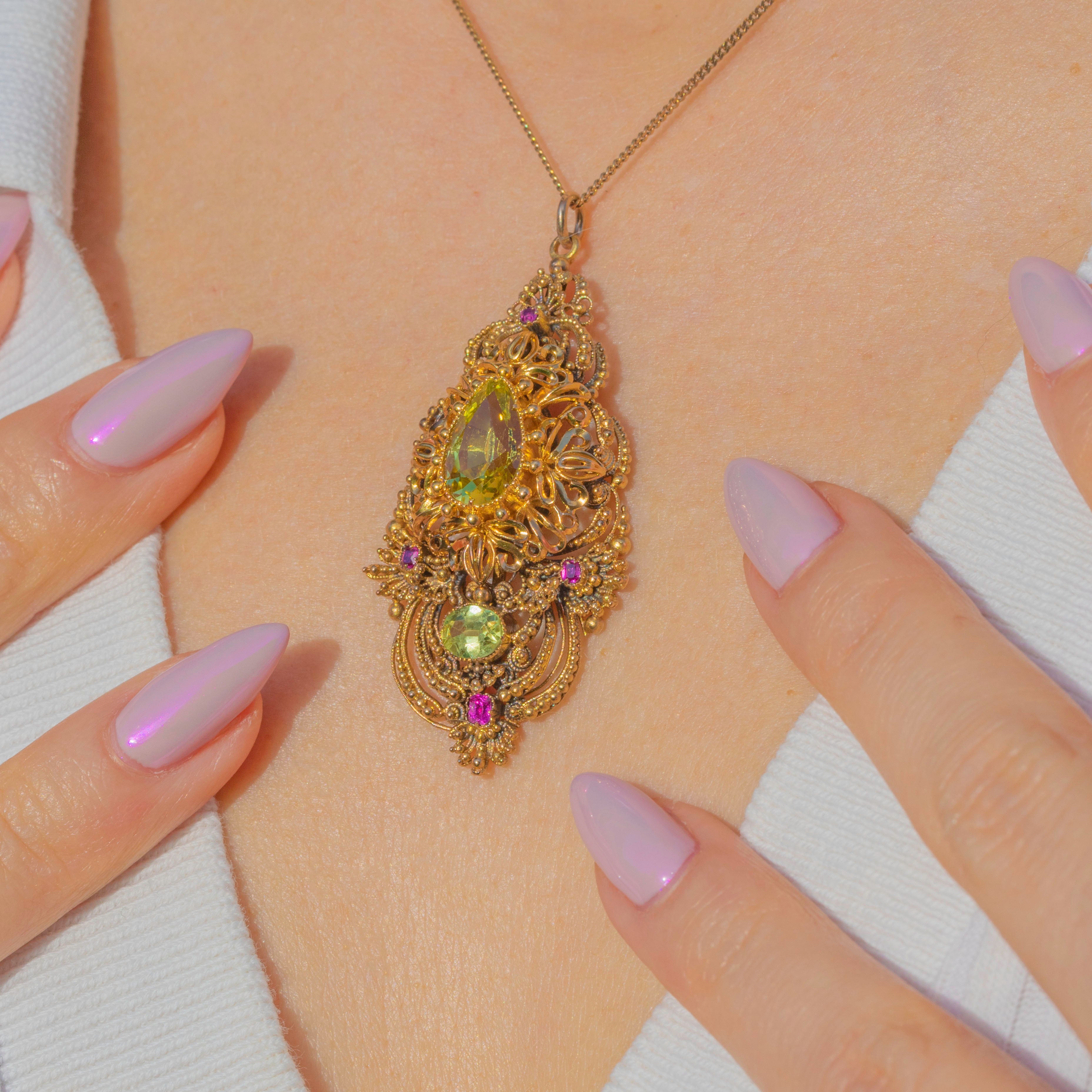 A magnificent Georgian drop pendant crafted in rich 18ct Gold with exquisite cannetille gold-work.