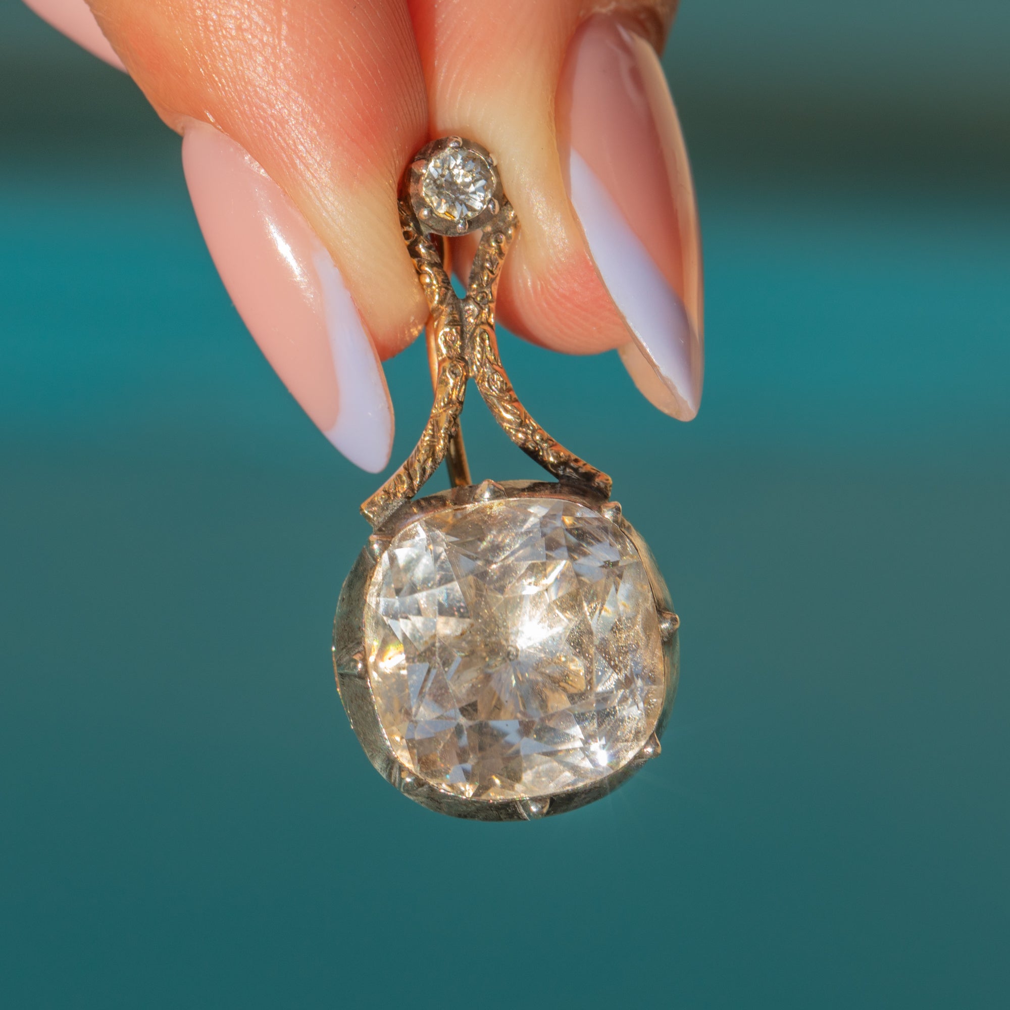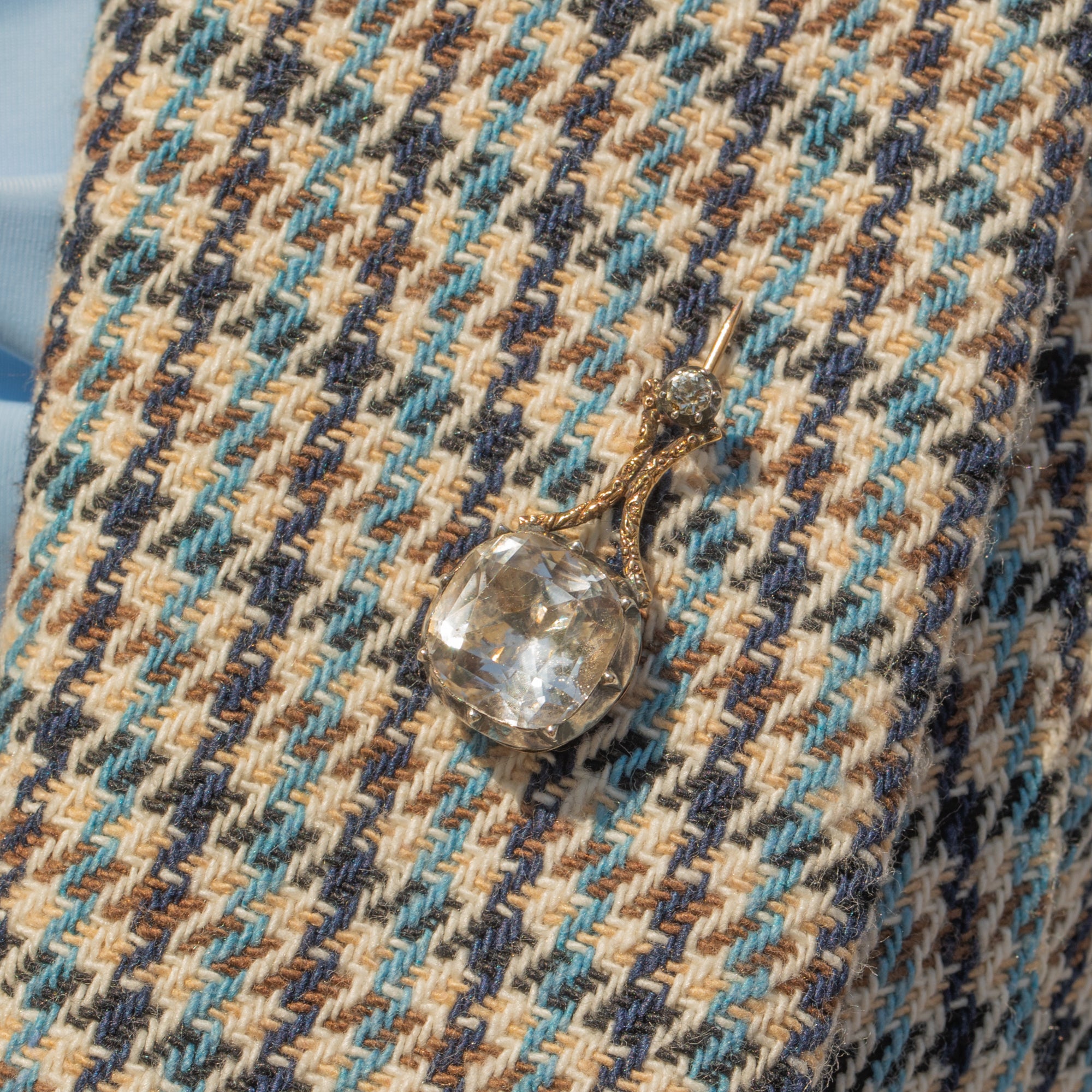 VERY GOOD-EXCELLENT: This Georgian 18ct Gold Rock Crystal Halley's Comet brooch is in wonderful condition, which is no mean feat when considering its impressive age. The Rock Crystals are bright with no signs of wear, and held securely within their collet settings. The Silver has accrued a light patina, enhancing the brilliance of the gems. There are some mild signs of surface wear throughout, but none that detract from the overall impact of the piece. With a robust pin, you can confidently wear this phenomenal Georgian Halley's Comet brooch!