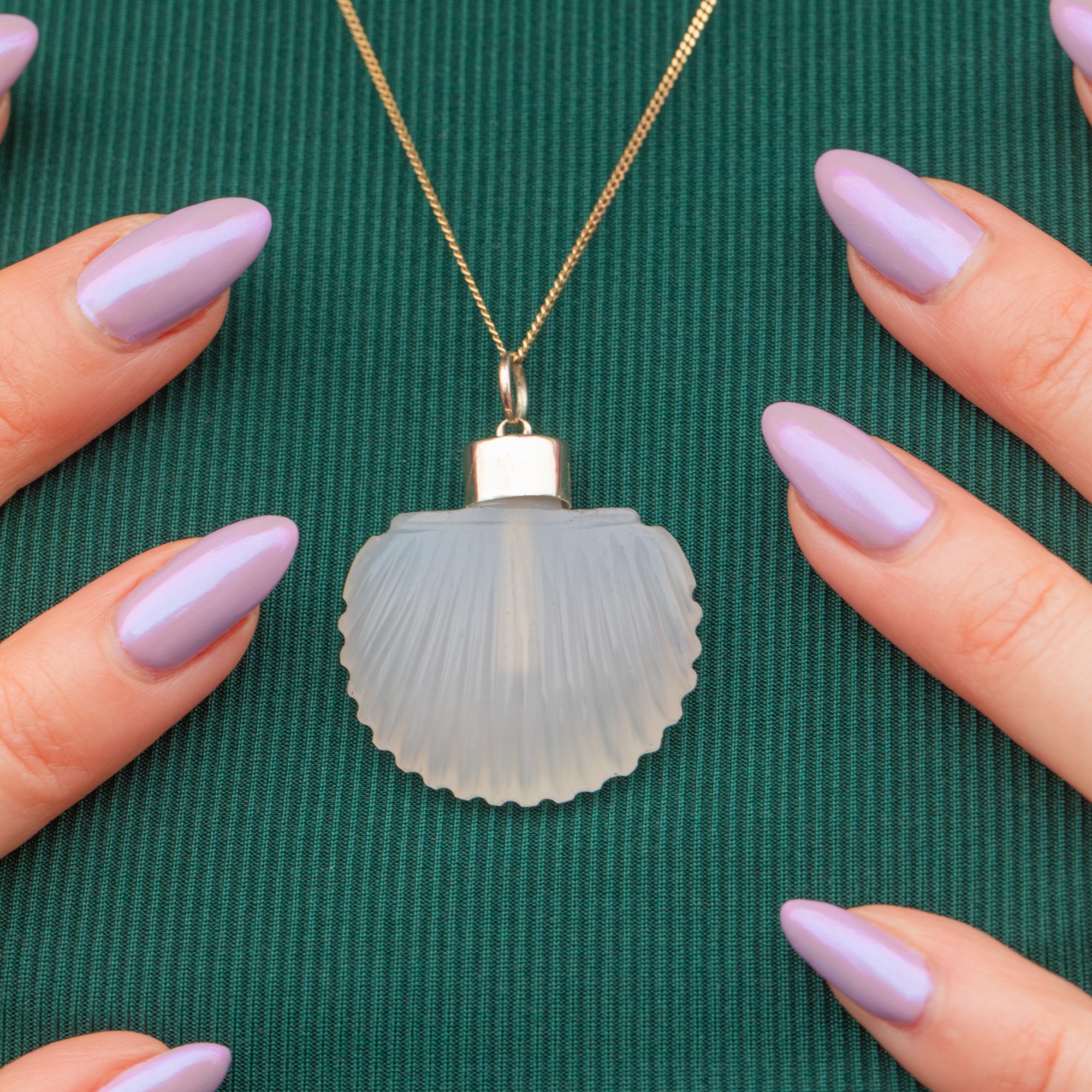 This Georgian 9ct Gold Chalcedony scallop shell scent bottle is adorable! Crafted from a gorgeous opaque Agate stone, this pendant is crafted beautifully with her shell engravings providing a lovely texture and depth.