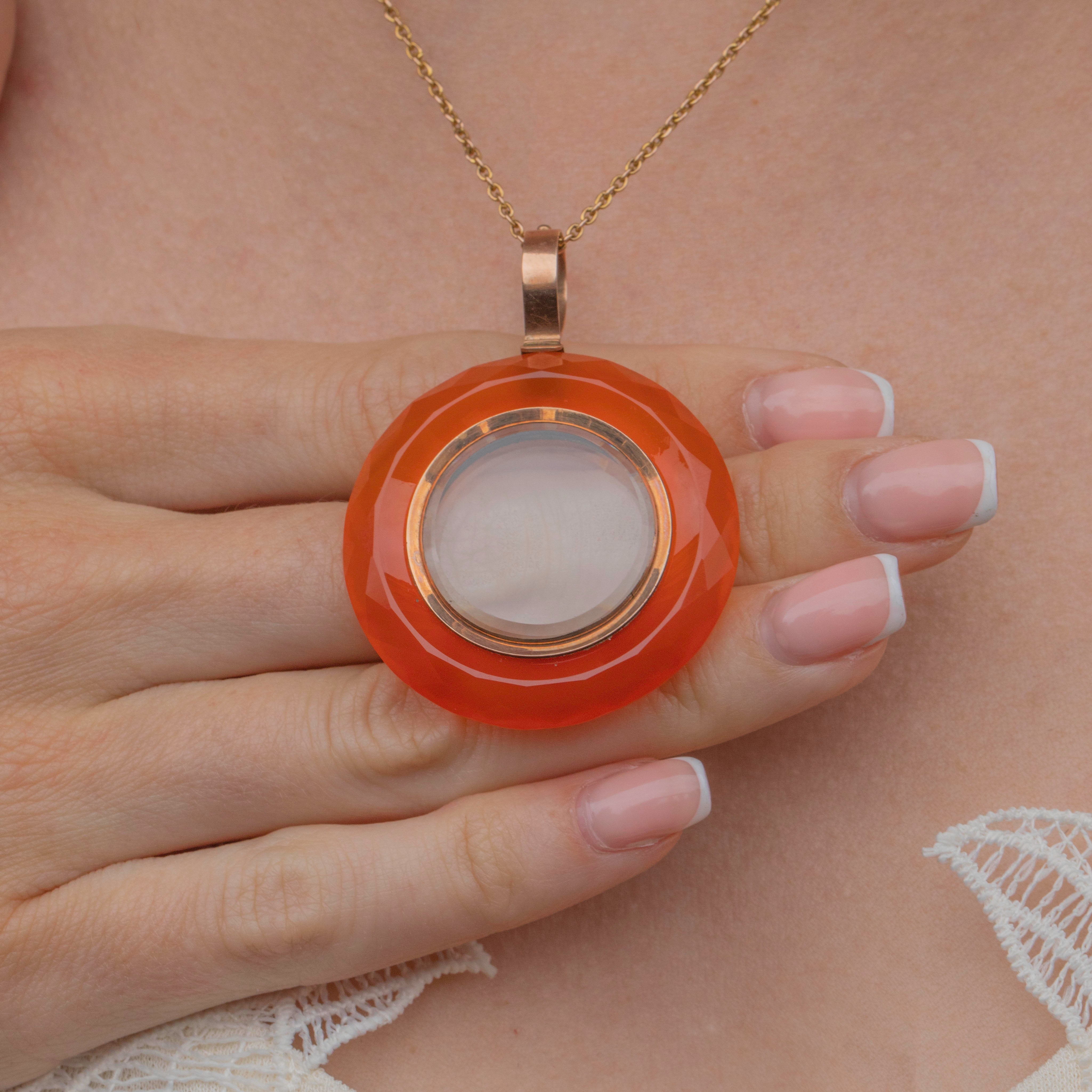 EXCELLENT. This Georgian 9ct Gold faceted Carnelian locket is in excellent condition. The Carnelian has been beautifully faceted and is free from any signs of wear. The locket has retained both glass panels, and the door opens to allow for the lucky owner to place photos, flowers, or gems inside! The bale has some minor discolouration but it has remained sturdy and will securely suspend from a chain of choice. This unique Georgian locket will make a coveted addition to your collection!