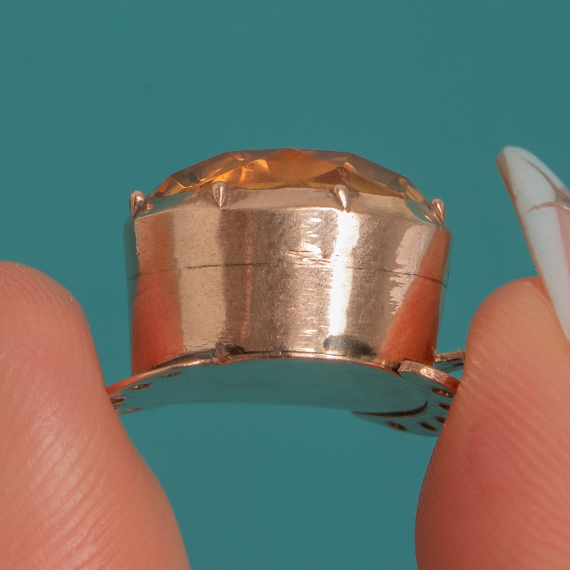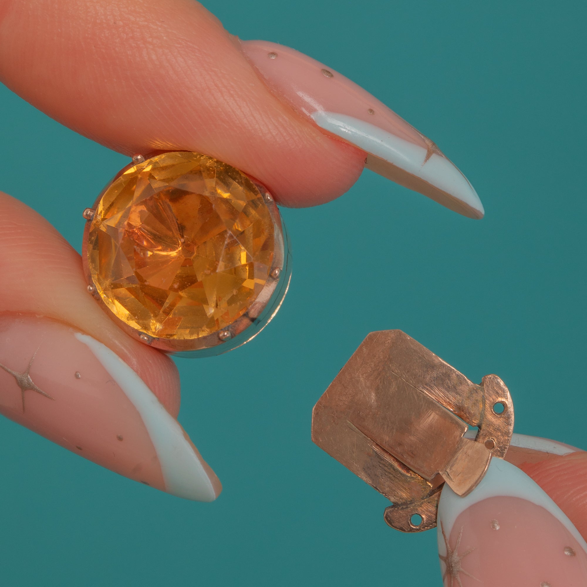 A luminous Georgian clasp in 9ct Gold, crowned with a vibrant foiled Yellow Paste that radiates rich, sunlit warmth. The foiled backing amplifies the colour and sparkle beautifully, while the clean, single-stone silhouette embodies the understated elegance of the period.
