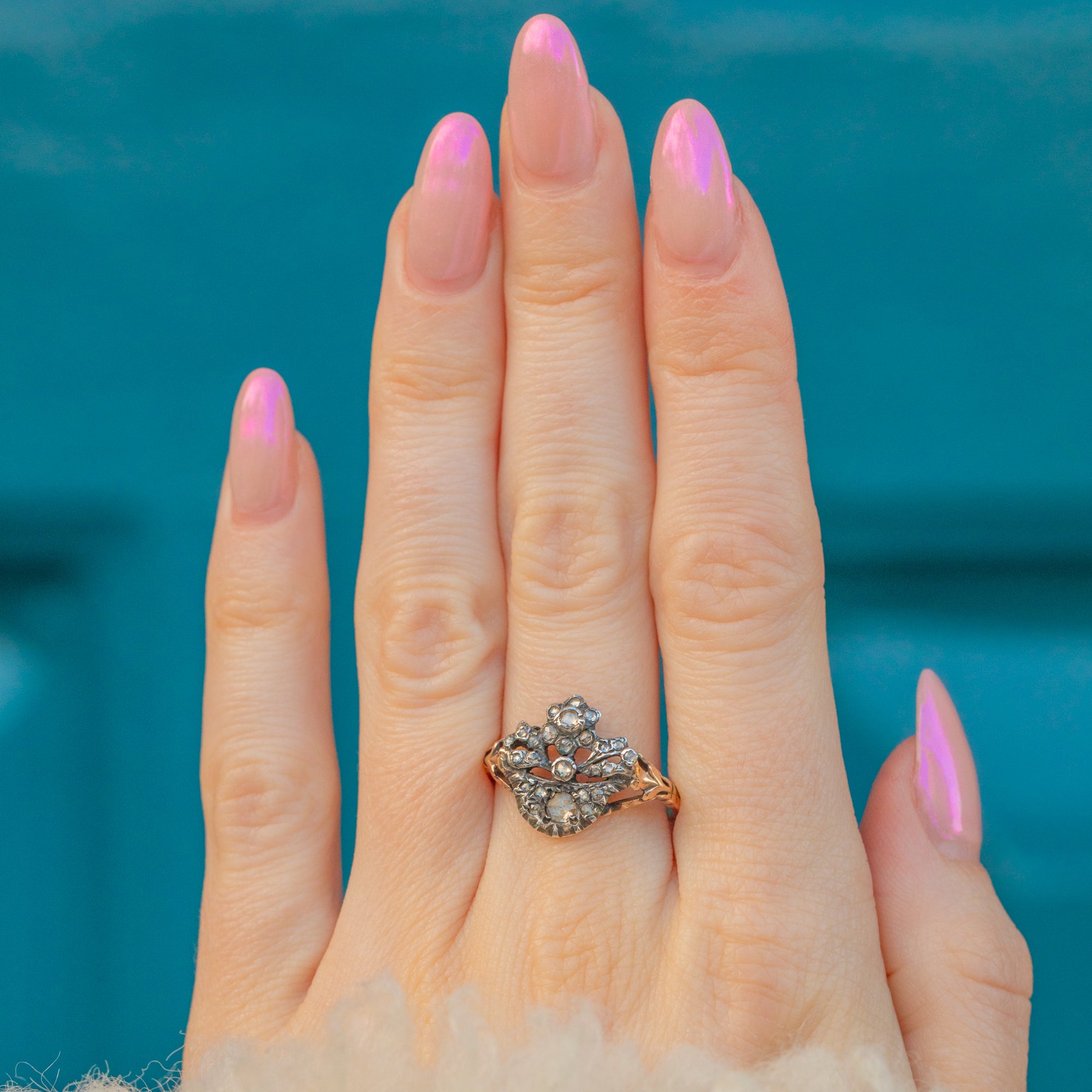 Georgian 15ct Gold & Silver Rose-Cut Diamond Giardinetti Ring