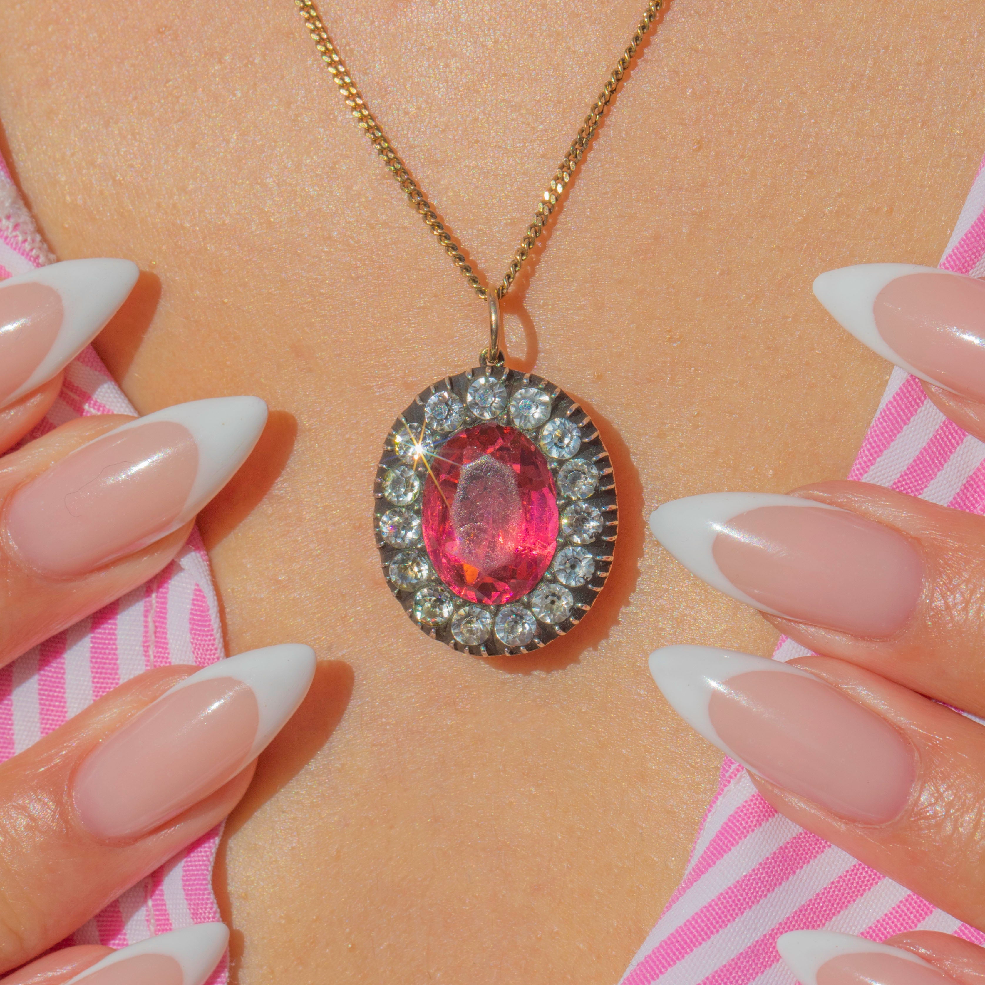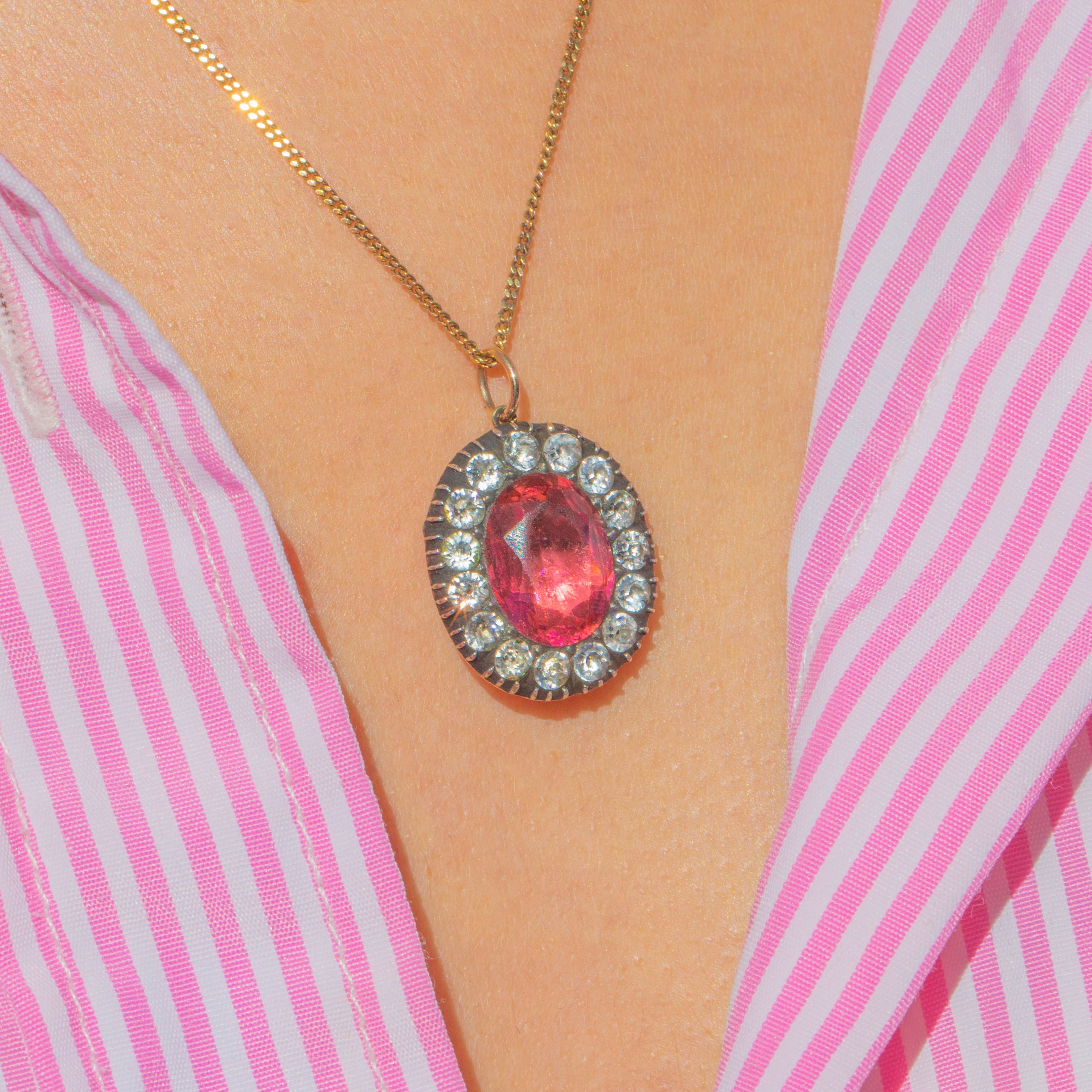 Georgian 9ct Gold & Silver Pink Paste Pendant, c.1820
