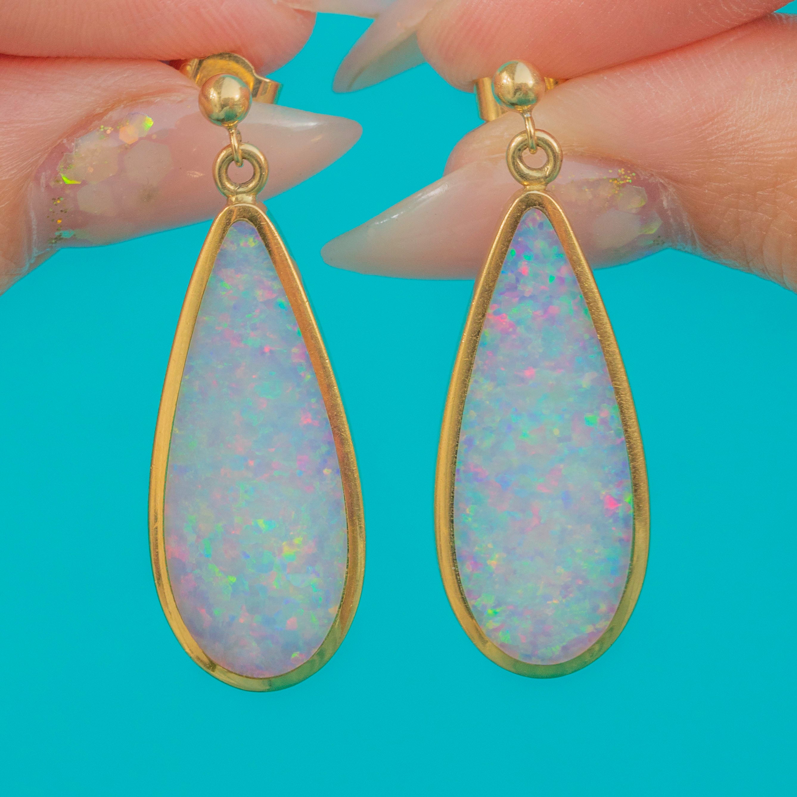 Impressive 18ct Gold Natural Opal Teardrop Earrings- 10.00ct Opal
